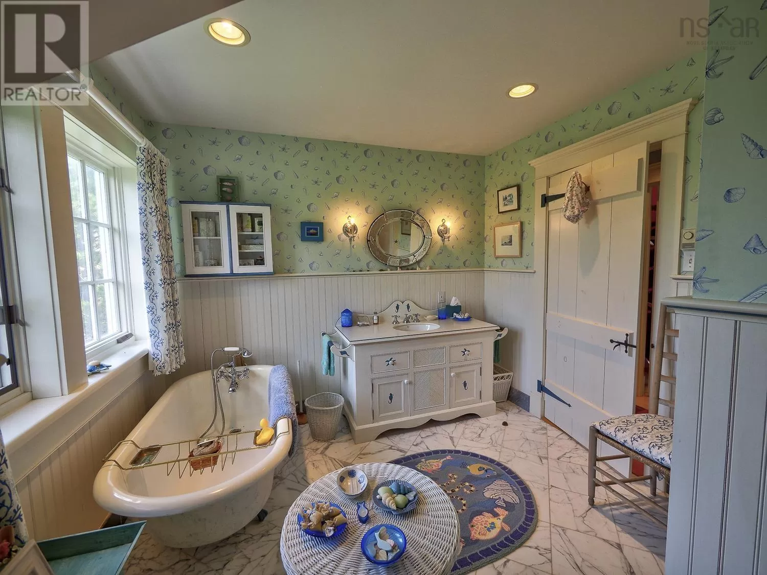Compass reading SSE off Blandford Peninsula. Off the Aspotogan Peninsula, on Nova Scotia's treasured South Shore, East Ironbound Island over looks the bold Atlantic Ocean, with the Tancook Islands and Peggy's Cove as distant neighbours. The island has a cluster of private homes, along with a wharf and a road leading to one of the province's oldest lighthouses. The island is shared with other quiet seasonal residents. The setting for this property is simply magical. From the wharf, the stroll along the grassy pathway past the fish stores, outbuildings boat slips, continuing on by the barn towards the house, everything is reminiscent of a simpler time .... Ironbound was once a small fishing community, and at one time this property was a small cattle farm. The property includes several parcels, totaling approx. 24 acres, a winch building, a garage, a fish store, a hay barn, a cattle barn, a newer equipment building, and a well appointed home, sheltered by mature trees, overlooks the ever changing bold Atlantic Ocean. The post and beam home has a spacious covered wrap-around deck and an open concept dining / kitchen / living room, with a welcoming wood burning fireplace. A laundry, 3 piece bath and a surprise prep kitchen are just down the hall. All 3 bedrooms on the second floor face the ocean and open to the upper veranda. The primary includes a fireplace and built-ins. The bathroom has a claw foot tub and a custom shower. The property is accessed from a private wharf, which is included in this sale, in New Harbour, near the seaside community of Blandford, on the Aspotogan Peninsula. Where else can one find an island with this much history, fascination, and comfort rolled into one package on Nova Scotia's treasured South Shore, an hour from Halifax's Stanfield International Airport. (id:27476)