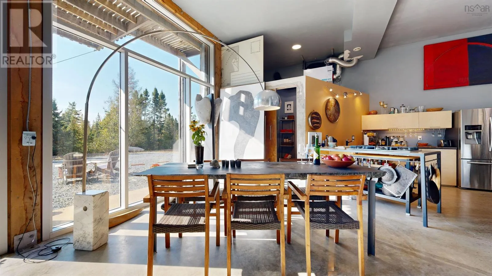 From Bridgewater or Lunenburg take Highway 332 to Indian Path Road and look for 520. A world of its Own. Are you looking for a place away from the Chaos, but still close enough to an International airport so that you can get business done? Picture yourself in a truly contemporary, low maintenance home with a tidal waterfront on a beautiful inlet that connects you to the waters of the mouth of the LaHave river. At high tide you can launch your kayak and head out towards the ocean. This home is a converted artists studio with large custom-made aluminum framed, Thermopane windows that reduce the heat of the sunlight and are facing East. The compact house is flooded with light and features an open floor plan with high ceilings and in floor heating on the main floor. This home is truly made for entertaining and privacy for everyday living. A chef's kitchen with high-end appliances is the corner-stone on the main floor, allowing for lively conversation around a custom designed granite table. A stylish contemporary bathroom with a walk-in shower and a sliding pocket door is part of the loft-like feeling of the open concept. The stylish modern furniture is included in the price of the house. Upstairs you will find beautiful hardwood flooring in an open concept bedroom suite with a large balcony. The window front is a continuation from downstairs, completing the industrial sophisticated look of the minimal engineered building with galvanized steel siding. Everything in this converted structure is carefully considered. The area surrounding the house has minimal landscaping as well as a large natural pond. An osprey's nest sits high in an area of the property. In this low maintenance yard, you are surrounded by serene beauty and sounds of wildlife while enjoying a drink at the crackling fire in the metal fire-pit. A true getaway awaits you, ready to move in and feel like you are in relax mode in the countryside, just an hour away from Metro Halifax. Enjoy the winter storms barefoot with a hot cup of tea, watching the deer move peacefully through your yard. (id:27476)