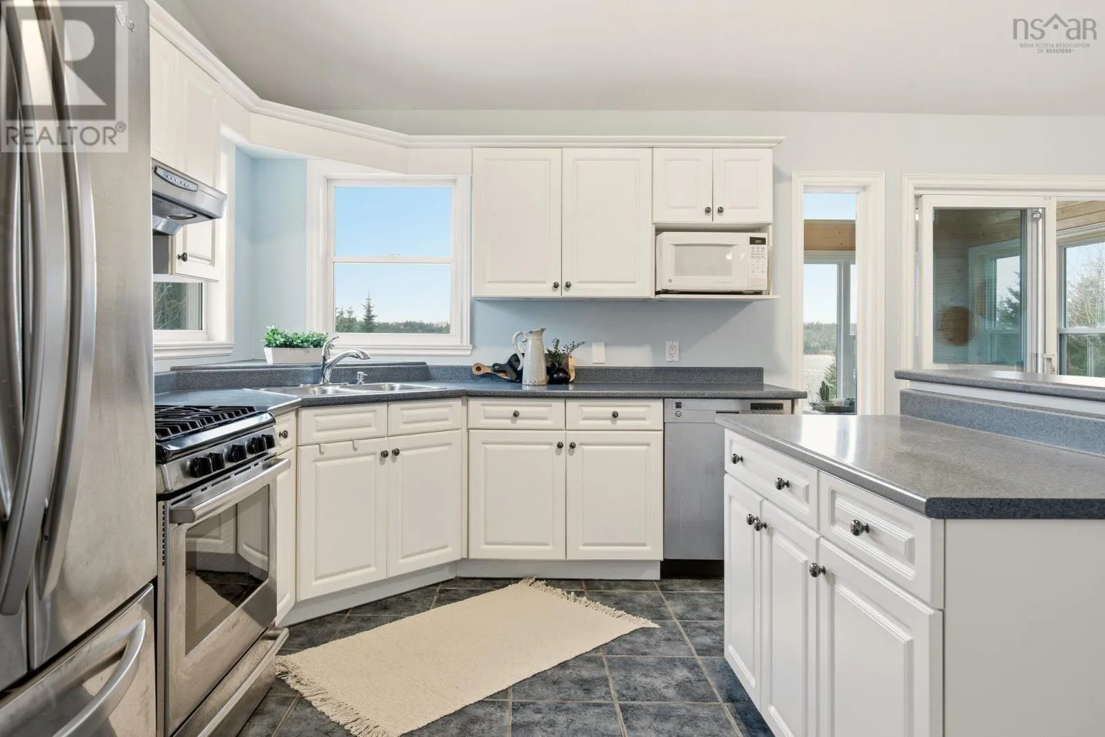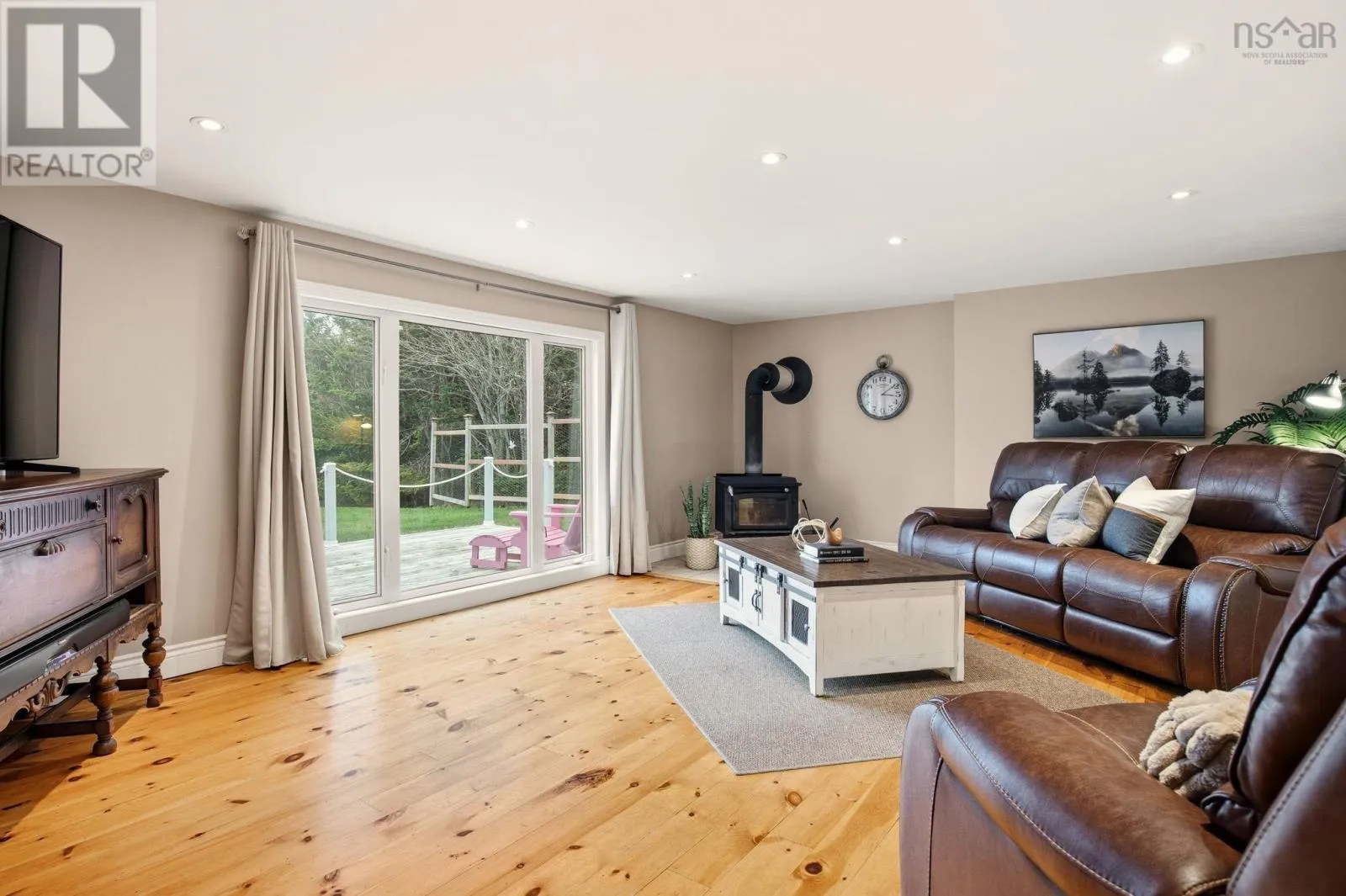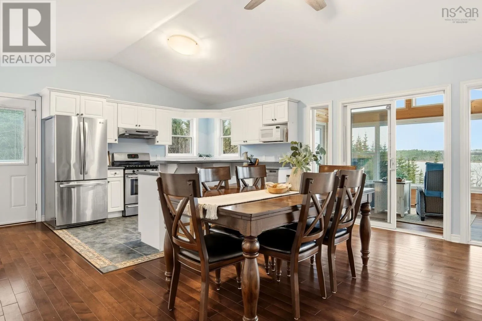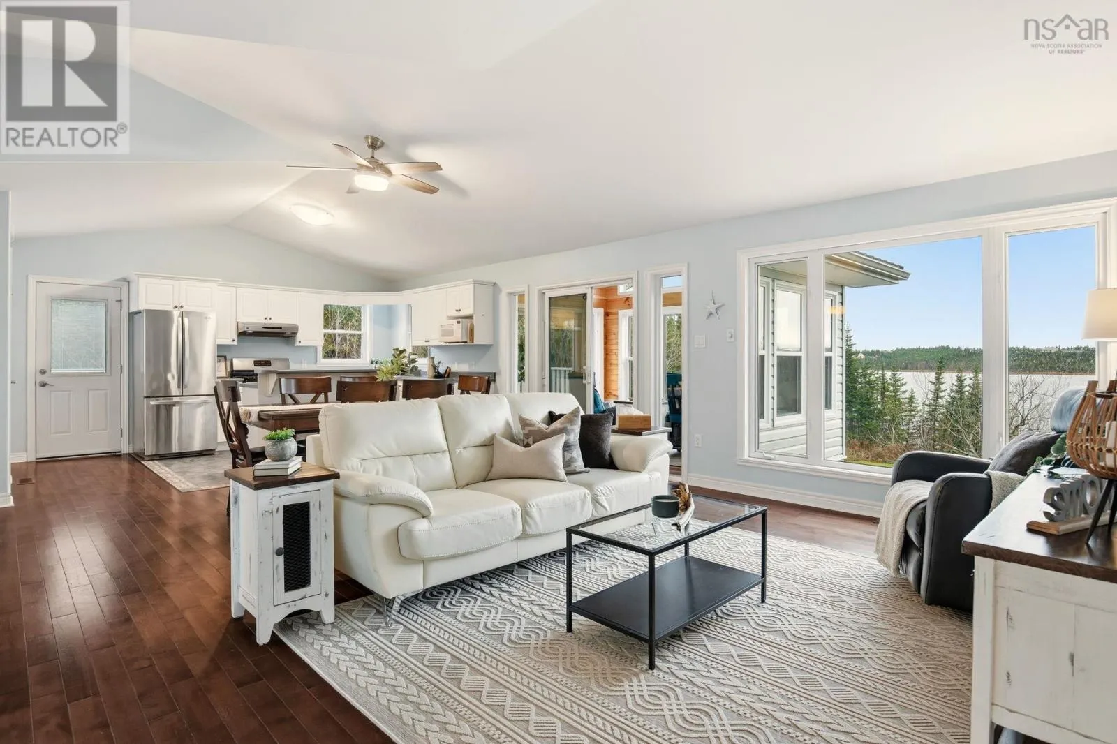 Hwy 207 to Leslie Road to Bastian Point Road. Tucked at the end of a quiet cul-de-sac and just minutes from Lawrencetown Beach and the Atlantic Trail, this private property offers the serenity of 221 feet of lake front living. Step inside to an inviting open concept kitchen, dining, and living area filled with natural light, complemented by a beautiful four season sunroom with tranquil lake views. The upper level features three comfortable bedrooms, including a spacious primary suite with a walk-in closet and direct access to the main bath. The walkout lower level provides exceptional flexibility, offering a large additional bedroom, family room, bathroom, laundry area, and ample storage. Outside, the property is enhanced with thoughtful upgrades, including a durable steel roof, paved driveway, and a drilled-and-epoxied four-season dockperfect for year-round enjoyment. Even the Chicken Mansion has been fortified to handle all weather with ease. This property is the ONLY property on the lake that has the ability to leave your Seadoo or boat in the water thanks to the four-season dock. Whether you're unwinding by the water or heading to the waves, this home delivers the ultimate coastal lifestyle. (id:27476)