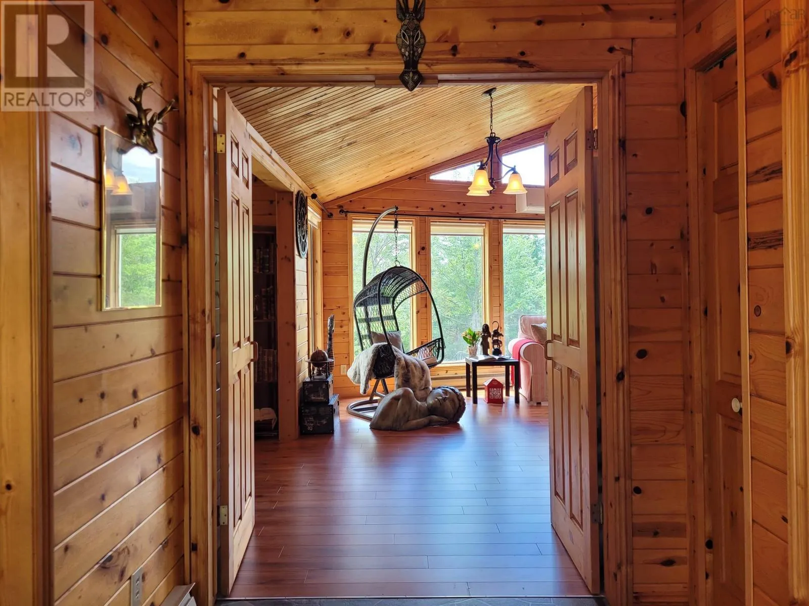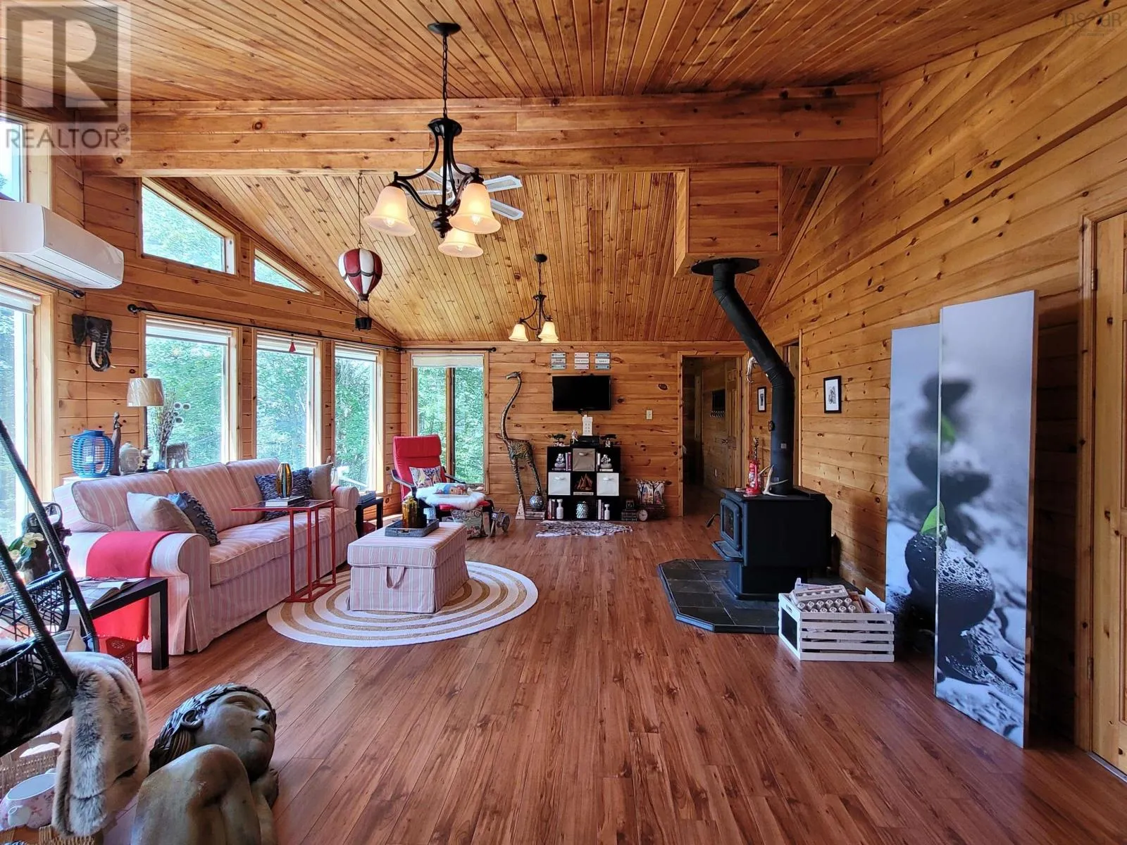 Highway 103 to East Sable Rd, drive 6.8km and turn left onto Somerset Drive, drive 350m and property is on left Charming Bungalow on 7.3 Acres with Deeded River Access. Nestled on a total of 7.3 acres, this property includes a 3.66 acre lot with a well-built bungalow and an adjoining 3.66 acre vacant lot offering space, privacy, and future potential. Built in the 1990s with quality craftsmanship, this 1,241 sq. ft. home features 2 bedrooms and 3 bathrooms, ideal for those seeking comfort in a serene natural setting. Both bedrooms feature their own full en-suite bathroom for convenience. Inside, cathedral ceilings and gable windows flood the main living area with natural light, highlighting the warmth of pine wood accents. This one level living home includes a cozy wood stove, a heat pump for efficient heating and cooling, and electric baseboards throughout. Patio doors lead from the dining room to a sunny deck, perfect for enjoying the spacious, landscaped yard. The spacious shed has plenty of room for storing outdoor essentials. Enjoy peace and privacy, with the added bonus of deeded access to the scenic tidal Sable Rivera tranquil spot for kayaking or launching small boats, with a route that leads directly to the open ocean. Whether you're looking for a quiet retreat, a forever home, or room to expand, this property offers a rare blend of space, comfort, and nature. (id:27476)