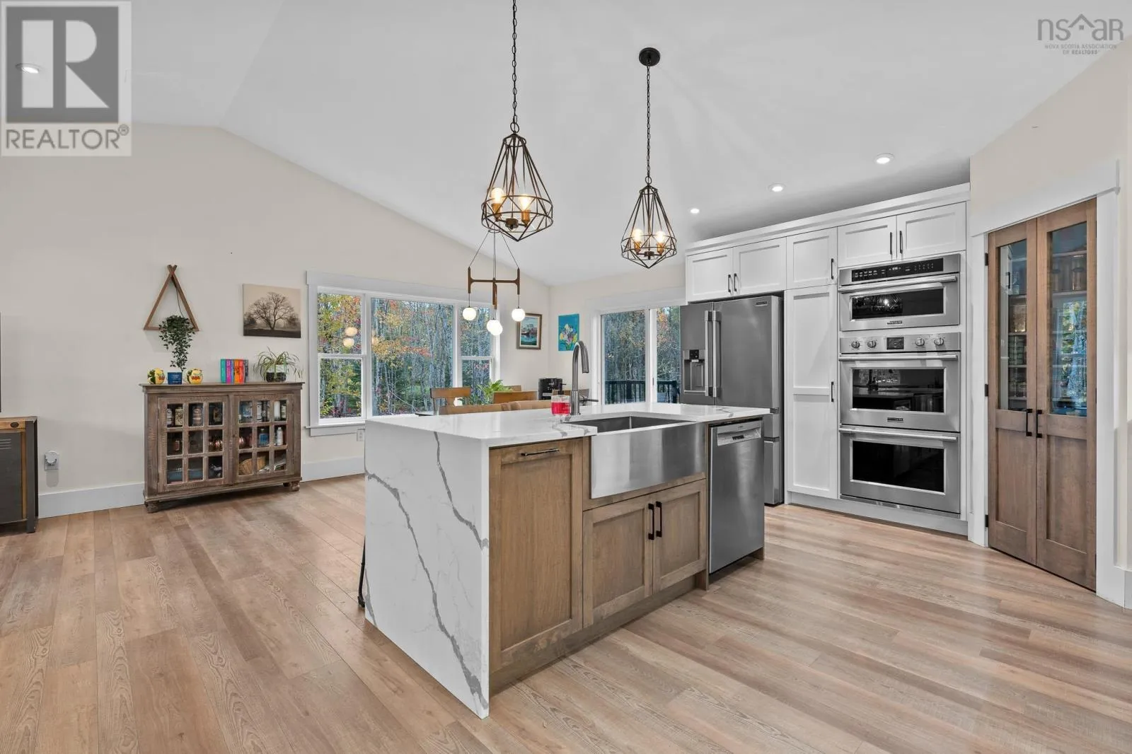 Take Exit 3 off Hwy 101 to Mount Uniacke, turn left on Hwy 1 to Etter Road, then left on East Uniacke Road, right turn on McKenzie Lane. Welcome to 63 McKenzie Lane, East Uniacke. This stylish home is loaded with updates and features that discerning buyers are looking for in their next home. The moment you walk through the door, you will be impressed by the hardwood stairs and custom tile entry that lead to a stylish designer kitchen. The aspiring chef in your family will immediately feel right at home with dual wall ovens, a convection speed cooker oven, and a glass cooktop. The countertops are all solid surfaces, including an impressive quartz waterfall island as the focal point of the main living area. Other features in this area include a functional walk-in pantry and easy access to a multi-level rear deck. The main level also boasts the primary bedroom with a well-appointed ensuite bathroom, plus an oversized second bedroom with a large walk-in closet. The lower level is fully finished with three bedrooms, a media room, a third full bathroom, a home office, and a large laundry room. Outside, there is a 24 x 24 garage that was recently built in the last couple of years with its own heat pump, plus a storage shed for more storage options. Recent improvements include a new ducted heat pump in 2020 and roof shingles in 2022. All this and more located on a quiet 40,000 sqft lot. Book a showing today and come see this stunning home for yourself; you won't be disappointed. (id:27476)