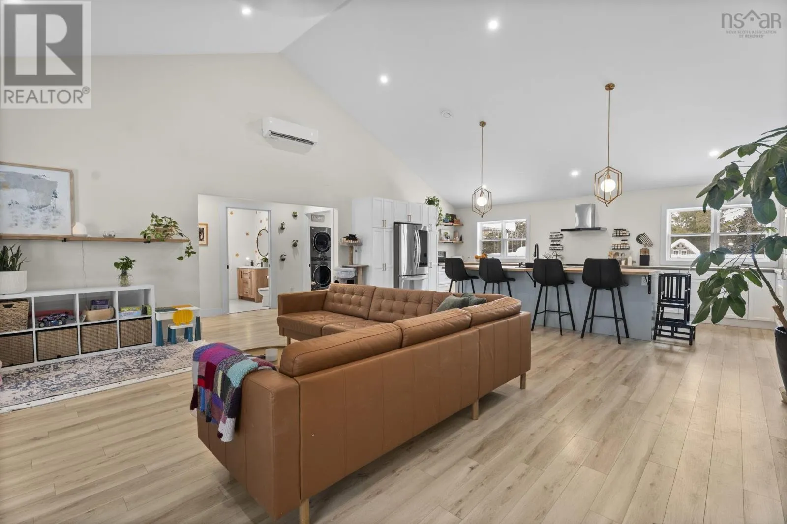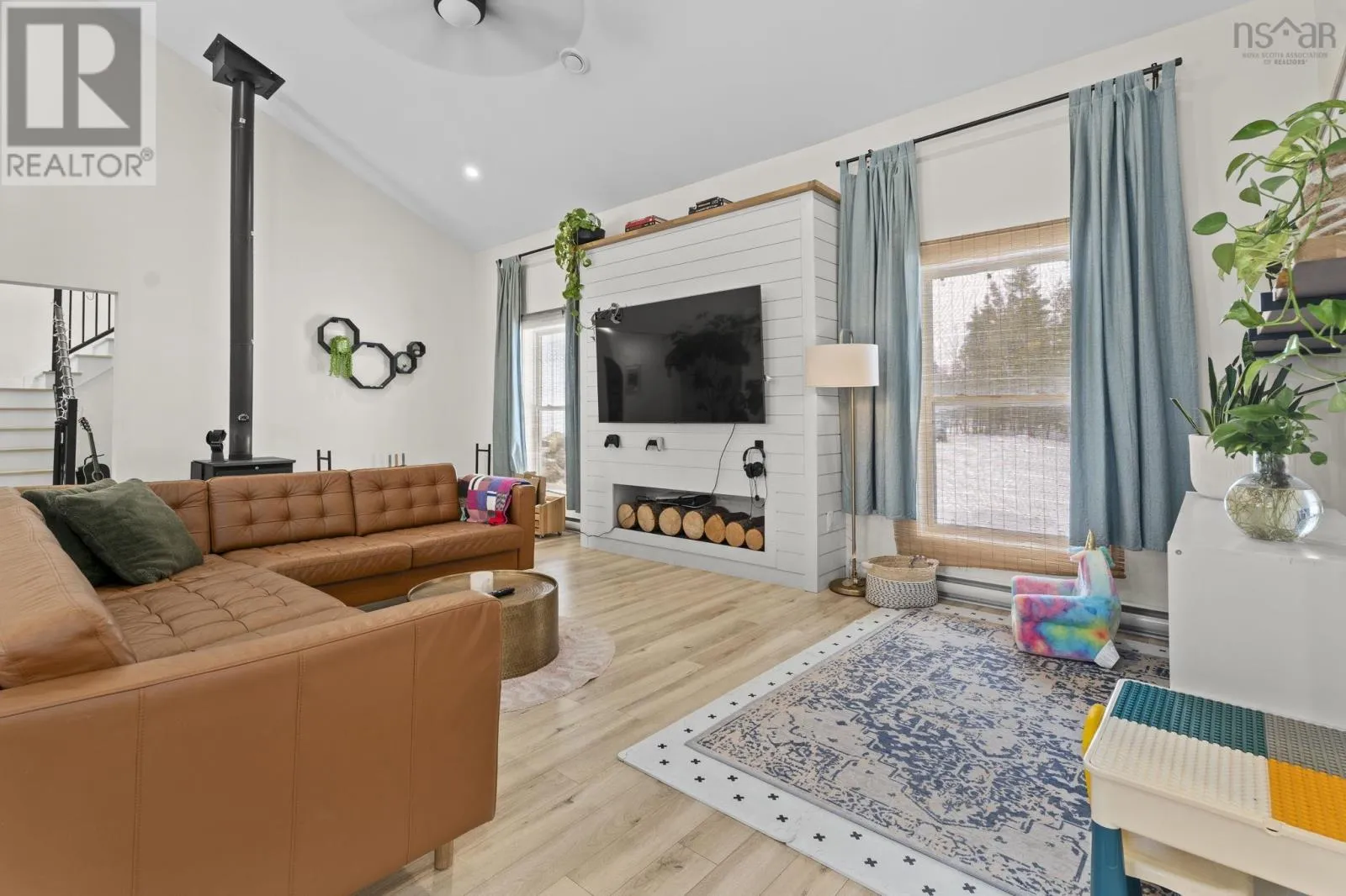 Exit 3 from Hwy 101 to Etter Road. Right onto E Uniacke Dr. Left onto Nature Drive. Nature Drive turns into Meek Arm Trail. Right onto Sage Brush Drive. Right onto Sunview Cres. Property on the right. Welcome to this spacious 5-bedroom, 3-bathroom home located in the desirable Villages of Long Lake community. This exceptionally designed bareland condo offers an ideal layout with three comfortable bedrooms on the main floor and two additional loft-style bedrooms, each featuring its own ensuite bathroom for added privacy and convenience. The main living area is bright and inviting, highlighted by a stunning cathedral ceiling and a cozy wood stove that brings warmth and charm year-round. The primary suite features a walk-in closet and a built-in desk, creating an ideal space for work or relaxation. A wired and heated triple-car garage provides ample room for vehicles, storage, or hobby space (siding on the garage will be completed by the sellers before closing). Situated in a sought-after lakeside community, residents enjoy 17 kilometres of scenic walking trails, as well as deeded water access to a boat launch and dock perfect for outdoor enthusiasts. Condo fees conveniently include all road and septic maintenance, offering a low-maintenance lifestyle with exceptional amenities . This home combines comfort, functionality, and a unique layout, making it an outstanding opportunity in a beautiful natural setting just 45 minutes from all the amenities of downtown Halifax. (id:27476)