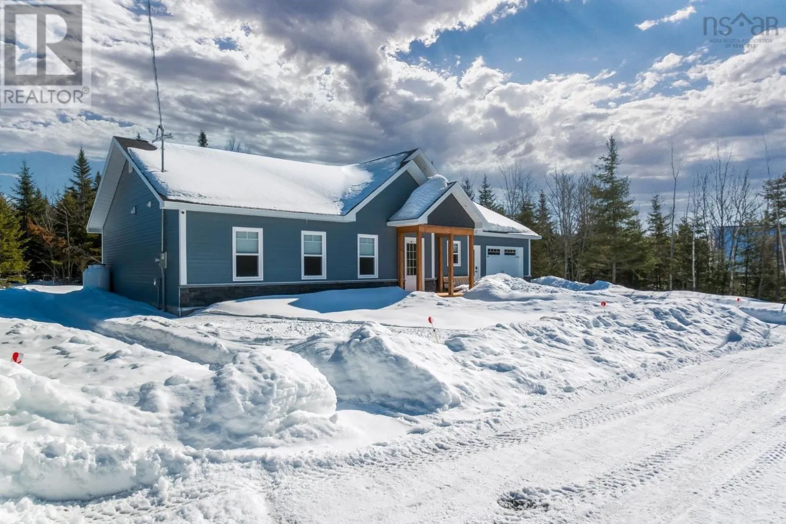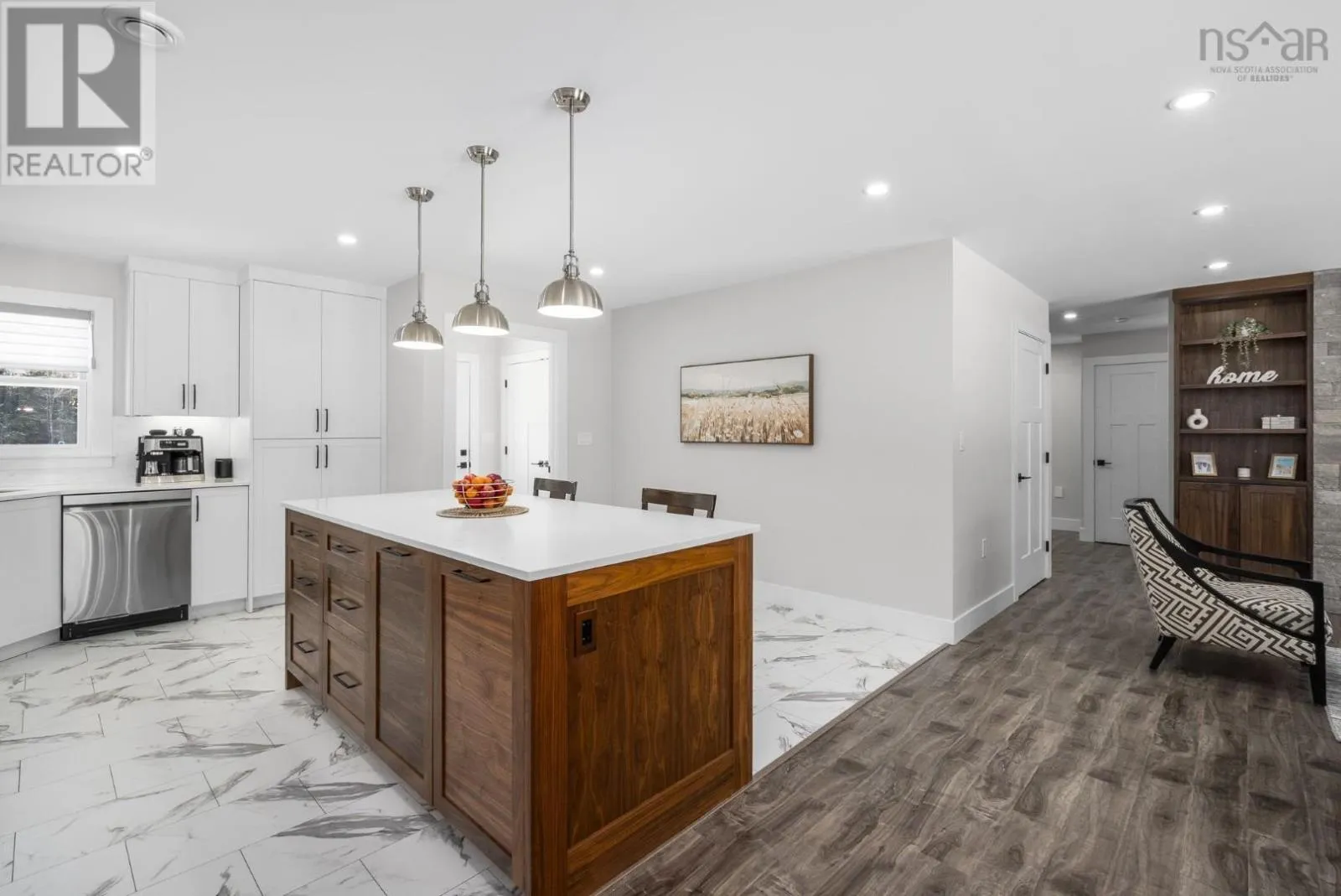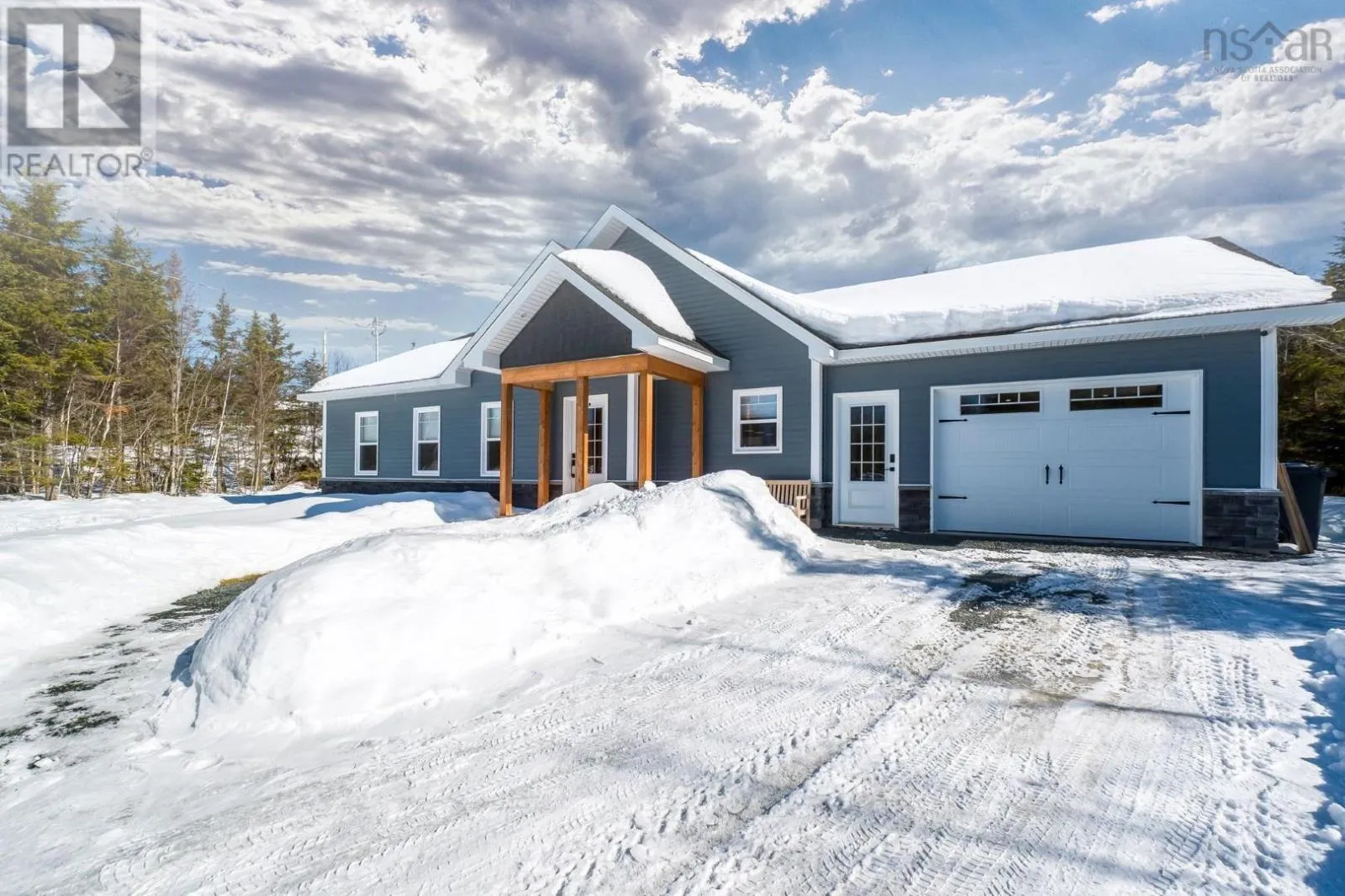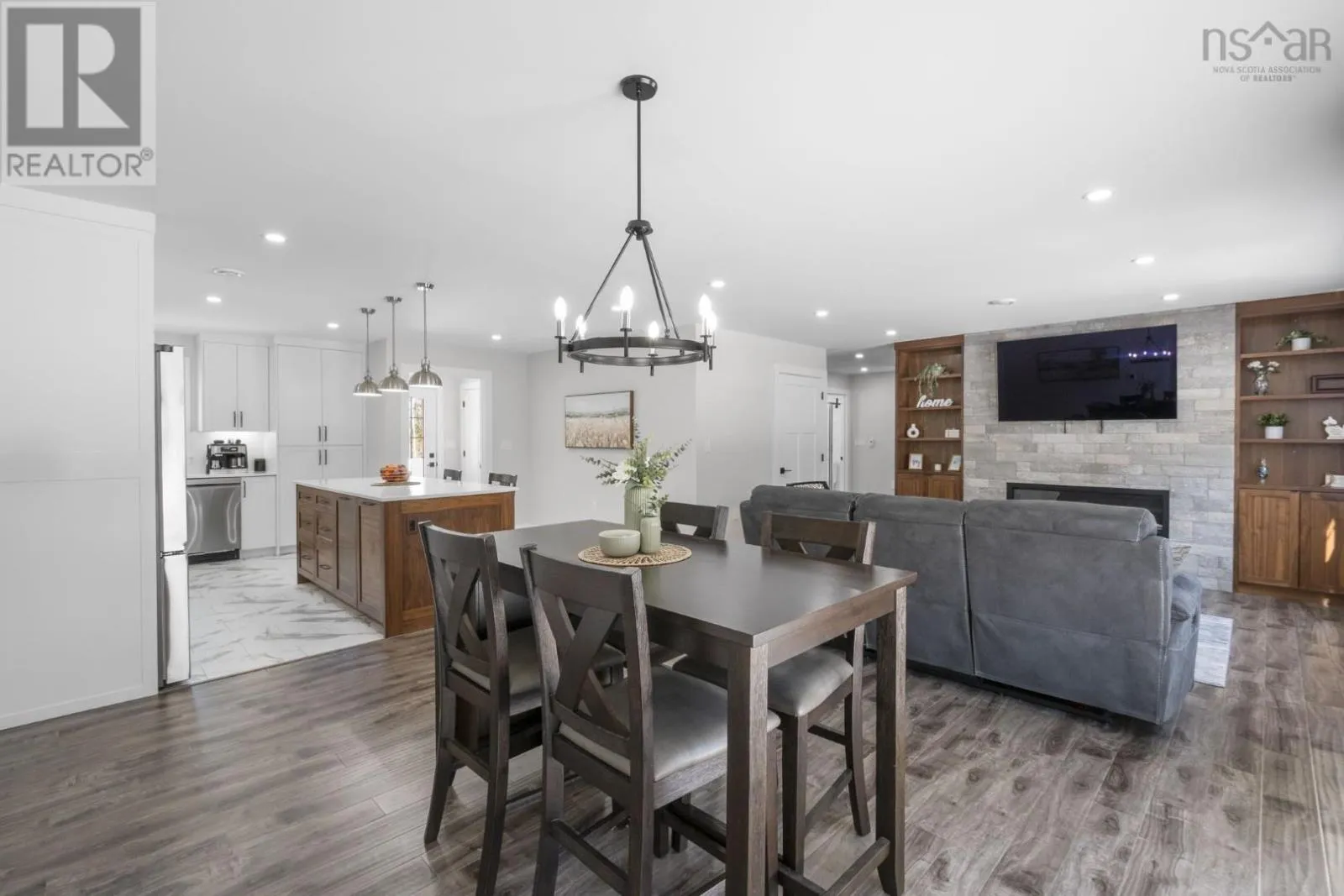East Uniacke Road to Nature Drive, left on Loon Point Trail Enjoy peaceful country living in this almost brand new 2-bedroom, 1.5-bath bungalow. A welcoming entry leads to an open-concept living space highlighted by a stunning feature wall with walnut built-in bookshelves and a cozy electric fireplace, along with an efficient ductless heat pump. The stylish kitchen features Wi-Fi appliances, white shaker-style cabinetry, Corian countertops and backsplash, and a beautiful walnut island. The spacious primary bedroom includes a walk-in closet, while the second bedroom is well-sized and ideal for guests or a home office. The elegant 5-piece main bath offers a double vanity and luxurious soaker tub. A convenient powder room and laundry area with Wi-Fi washer and dryer are located near the garage entrance. Enjoy in-floor radiant heat throughout the main level and in the attached oversized single garage. Durable luxury vinyl tile flooring runs throughout the home. Outside, the property offers excellent curb appeal, a large level lot with room for a detached garage or extra parking, and a quiet ground-level deck off the dining area. Residents enjoy lake access for boating, swimming, and fishing, along with community trails and a beautiful natural setting of coves, islands, forests, and wildlife offering a relaxed cottage-country lifestyle within commuting distance of Halifax. (id:27476)