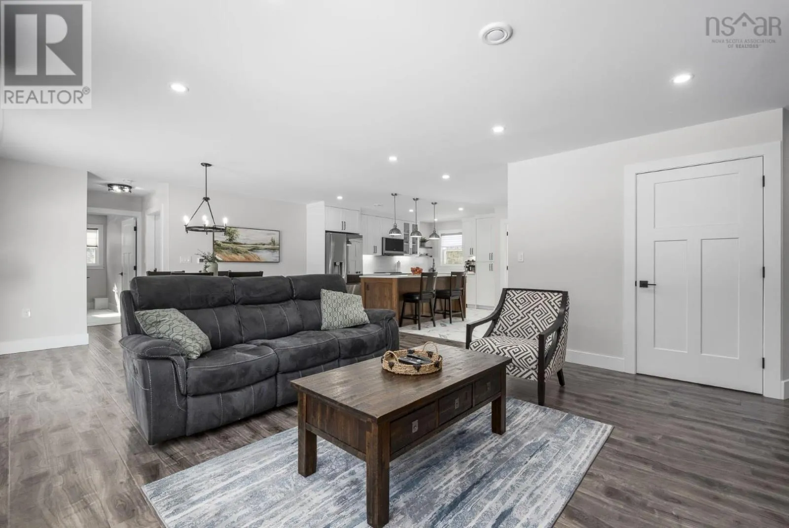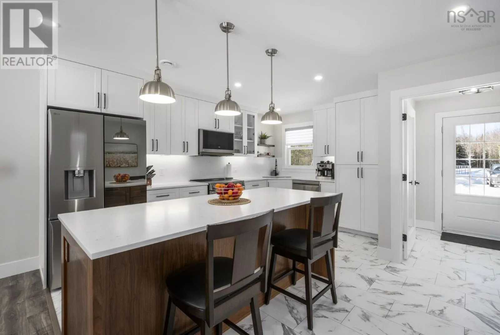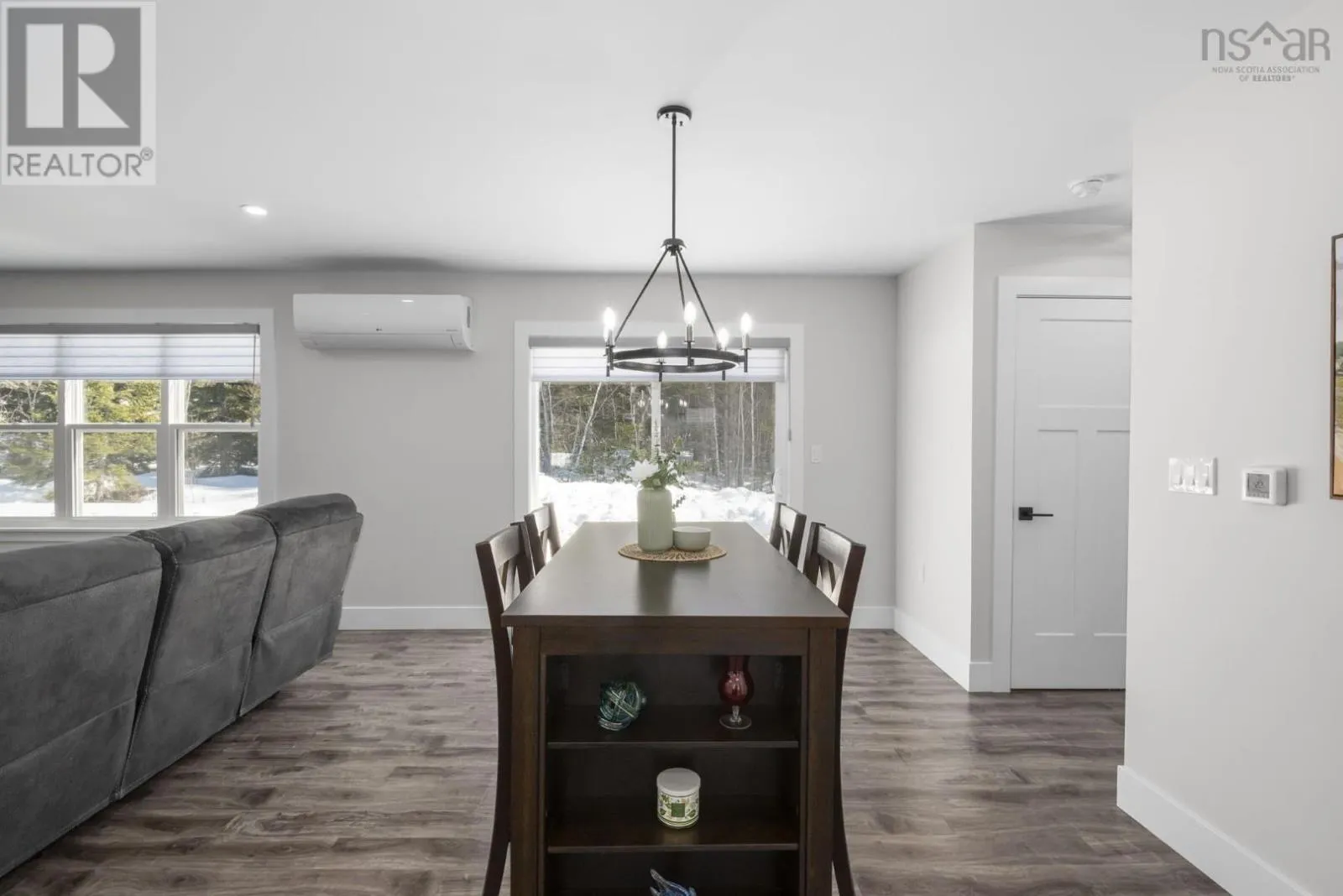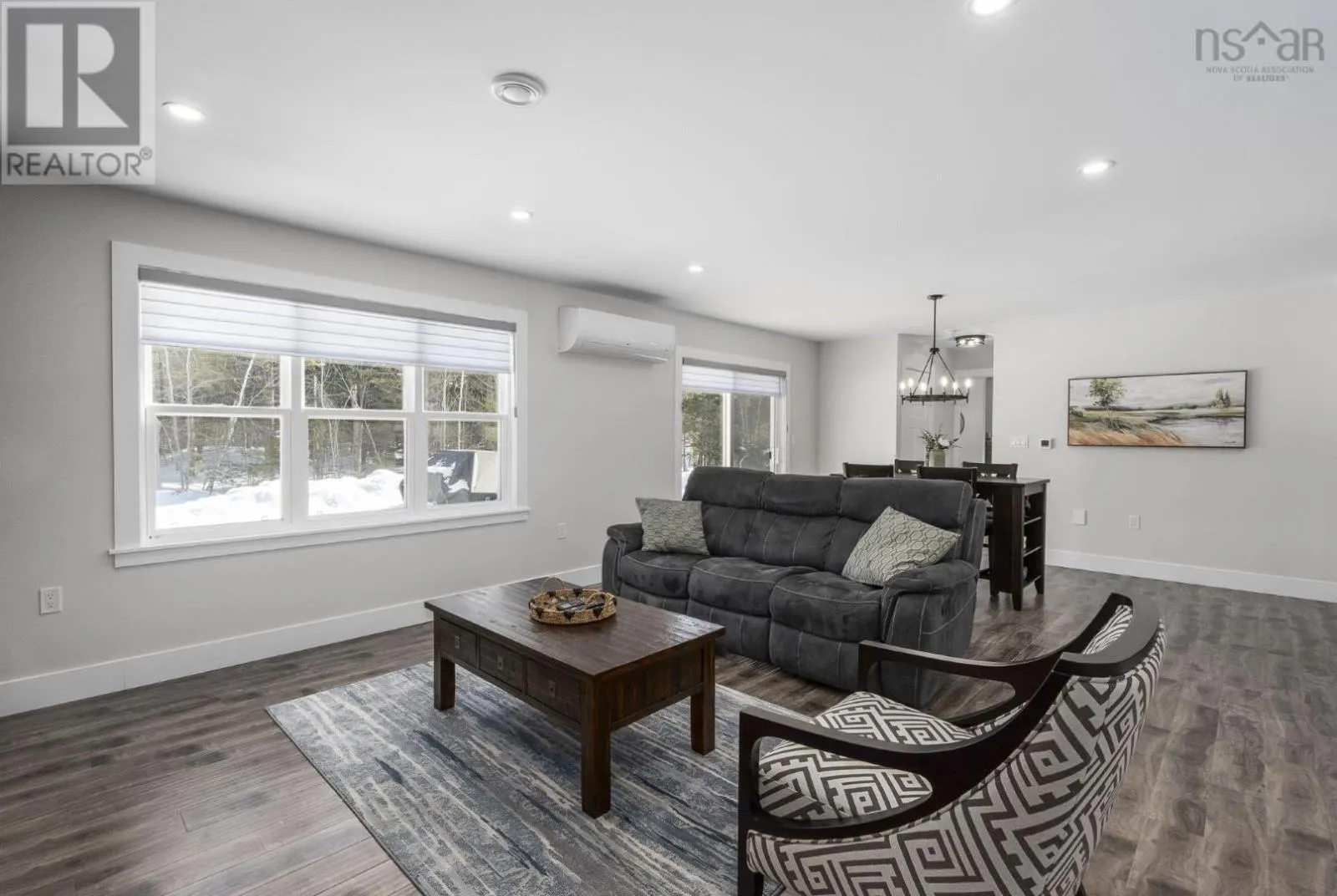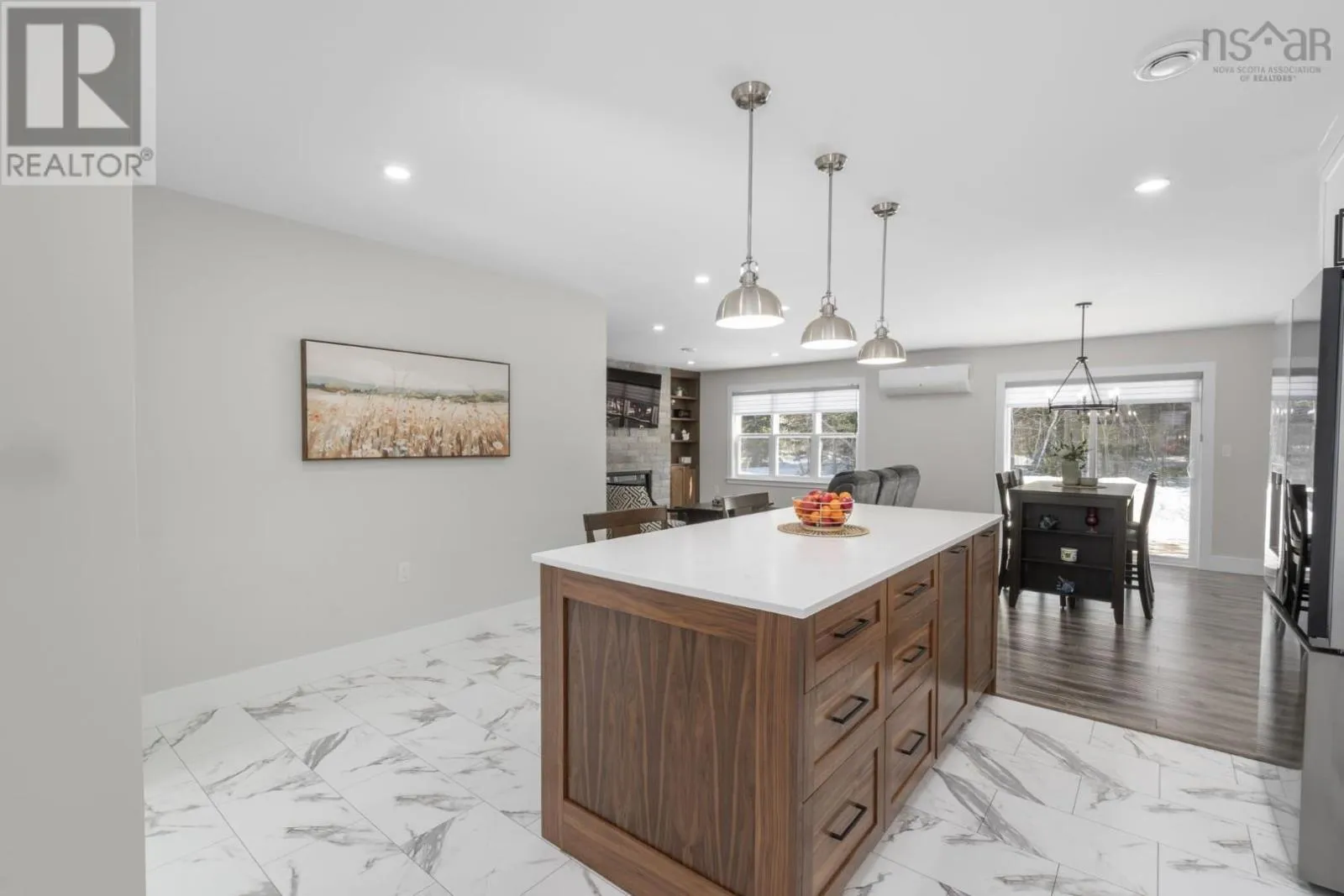 East Uniacke Road to Nature Drive, left on Loon Point Trail Enjoy peaceful country living in this almost brand new 2-bedroom, 1.5-bath bungalow. A welcoming entry leads to an open-concept living space highlighted by a stunning feature wall with walnut built-in bookshelves and a cozy electric fireplace, along with an efficient ductless heat pump. The stylish kitchen features Wi-Fi appliances, white shaker-style cabinetry, Corian countertops and backsplash, and a beautiful walnut island. The spacious primary bedroom includes a walk-in closet, while the second bedroom is well-sized and ideal for guests or a home office. The elegant 5-piece main bath offers a double vanity and luxurious soaker tub. A convenient powder room and laundry area with Wi-Fi washer and dryer are located near the garage entrance. Enjoy in-floor radiant heat throughout the main level and in the attached oversized single garage. Durable luxury vinyl tile flooring runs throughout the home. Outside, the property offers excellent curb appeal, a large level lot with room for a detached garage or extra parking, and a quiet ground-level deck off the dining area. Residents enjoy lake access for boating, swimming, and fishing, along with community trails and a beautiful natural setting of coves, islands, forests, and wildlife offering a relaxed cottage-country lifestyle within commuting distance of Halifax. (id:27476)