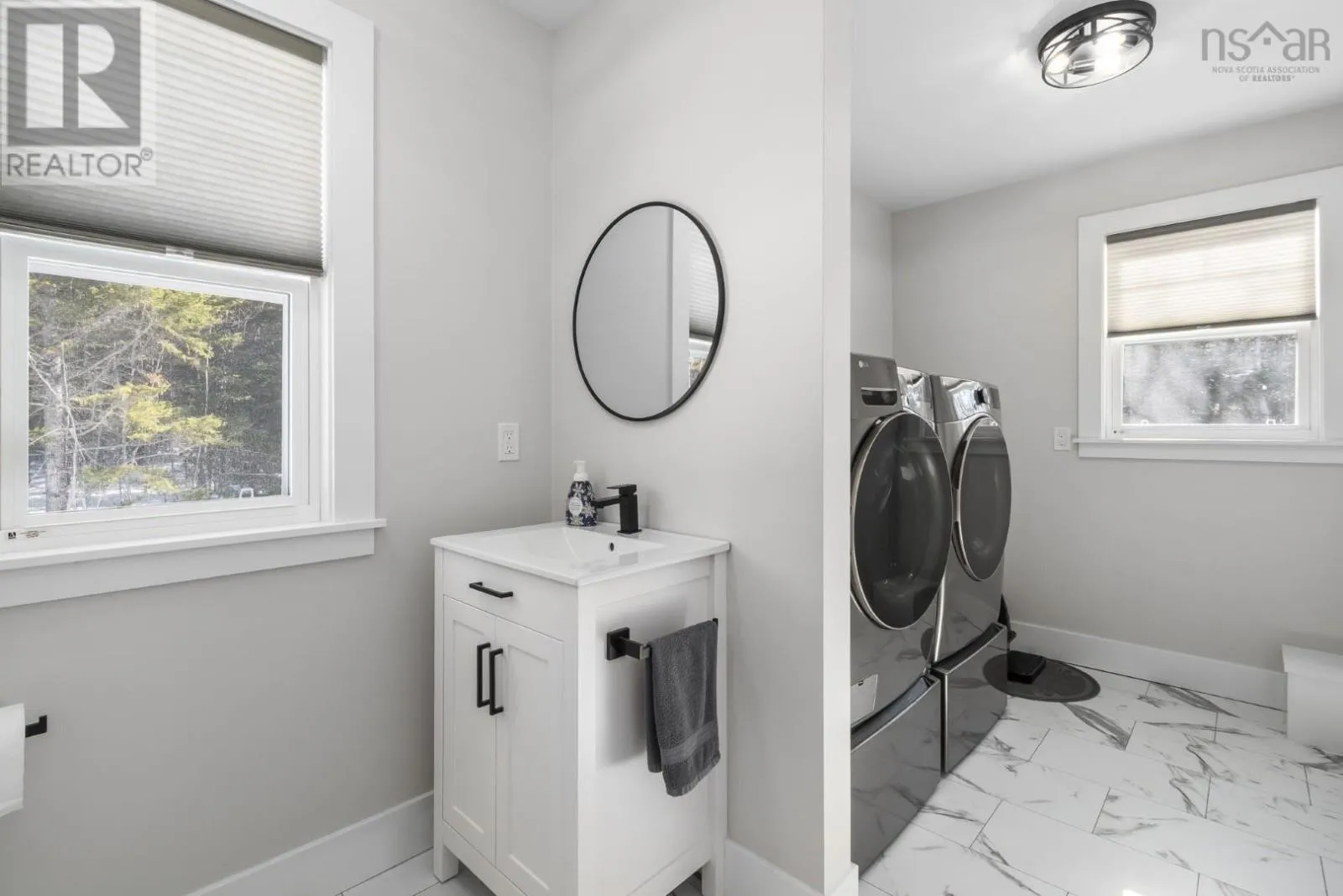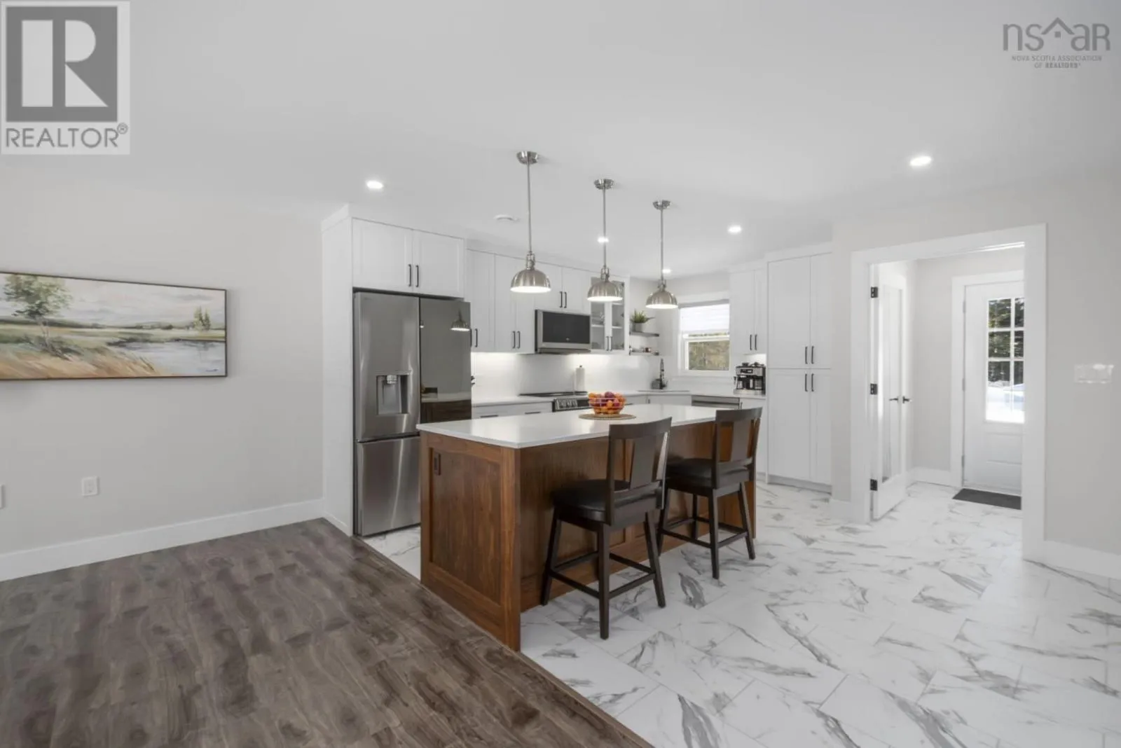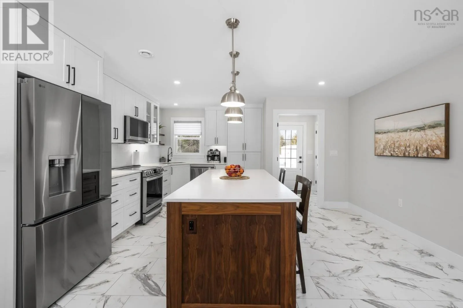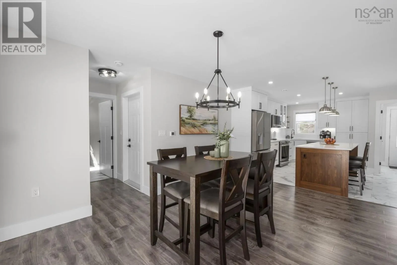 East Uniacke Road to Nature Drive, left on Loon Point Trail Enjoy peaceful country living in this almost brand new 2-bedroom, 1.5-bath bungalow. A welcoming entry leads to an open-concept living space highlighted by a stunning feature wall with walnut built-in bookshelves and a cozy electric fireplace, along with an efficient ductless heat pump. The stylish kitchen features Wi-Fi appliances, white shaker-style cabinetry, Corian countertops and backsplash, and a beautiful walnut island. The spacious primary bedroom includes a walk-in closet, while the second bedroom is well-sized and ideal for guests or a home office. The elegant 5-piece main bath offers a double vanity and luxurious soaker tub. A convenient powder room and laundry area with Wi-Fi washer and dryer are located near the garage entrance. Enjoy in-floor radiant heat throughout the main level and in the attached oversized single garage. Durable luxury vinyl tile flooring runs throughout the home. Outside, the property offers excellent curb appeal, a large level lot with room for a detached garage or extra parking, and a quiet ground-level deck off the dining area. Residents enjoy lake access for boating, swimming, and fishing, along with community trails and a beautiful natural setting of coves, islands, forests, and wildlife offering a relaxed cottage-country lifestyle within commuting distance of Halifax. (id:27476)