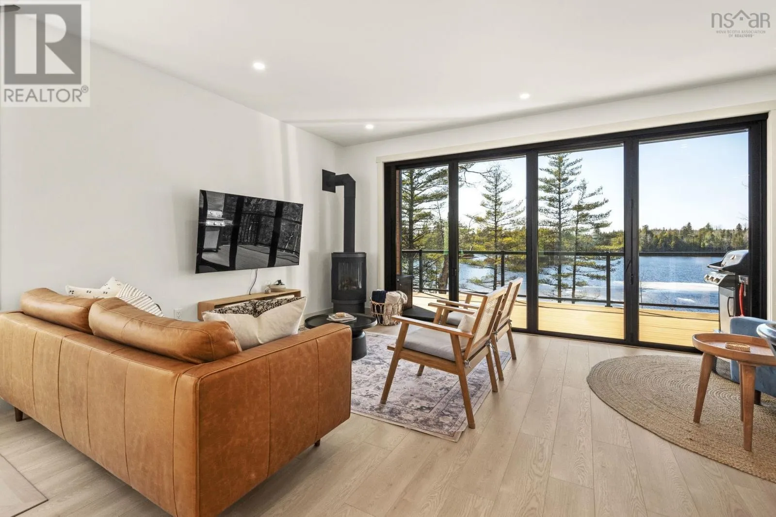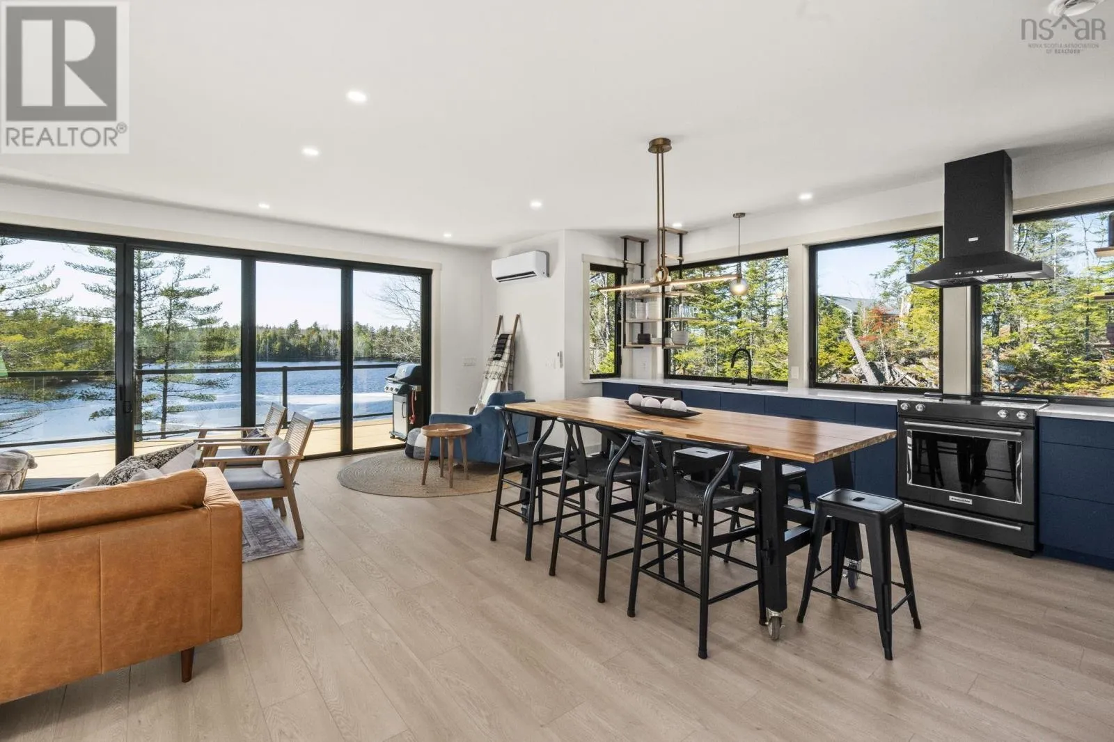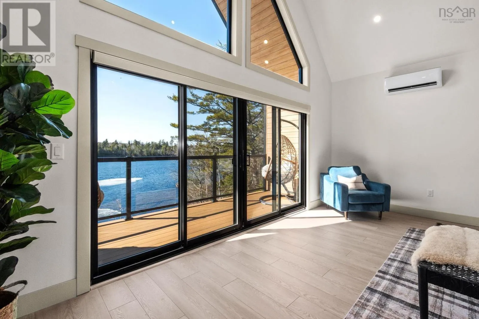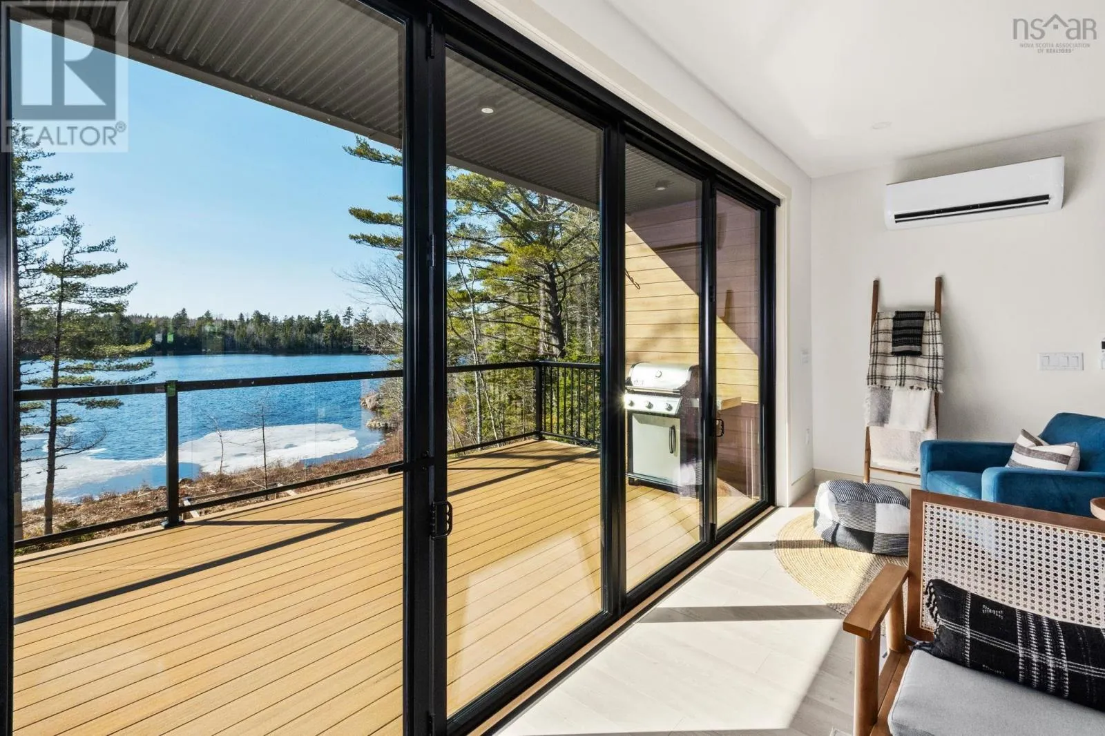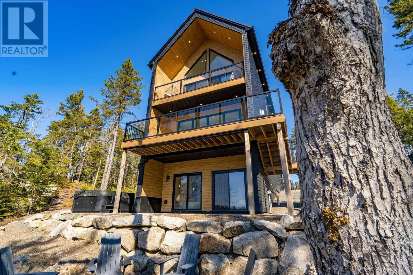 Etter Road to Eaast Uniacke Road to Nature Dr. to Meek Arm Trail Tucked into a quiet cove on sought-after Long Lake, 179 Meek Arm Trail offers a rare blend of modern Scandinavian design and exceptional waterfront living. Built in 2023 and set on a private 1.25-acre, tree-lined lot, this custom home is thoughtfully positioned to capture nearly 270-degree lake views and a true connection to nature. The bright, open-concept main level is designed for both everyday living and entertaining, featuring expansive windows, refined modern finishes, and seamless flow between the kitchen, dining, and living areas. A striking wall of bifold doors opens fully to the lake-facing deck, creating an effortless indoor-outdoor lifestyle. A sleek propane fireplace adds warmth and ambiance, while a discreet walk-in pantry provides excellent storage and functionality. With 1,836 sq ft, the layout is efficient and well-proportioned. The upper level is dedicated to a private primary retreat with stunning lake views, balcony access, walk-in closet, and a beautifully appointed ensuite. A versatile loft space offers flexibility for a home office or studio. The lower level includes two additional bedrooms and a full bath, ideal for guests or family. Outside, professionally designed landscaping blends natural stone and curated plantings for a low-maintenance, cohesive aesthetic. Enjoy the fire pit, hot tub, and canopy lounge, or take full advantage of the private dock with approximately 6 feet of water depth on this motorized lakeperfect for swimming, boating, and paddleboarding. Additional features include ample parking, storage container, and low annual condo fees ($792) covering road maintenance and snow clearing. A turnkey lakeside retreat just 45 minutes from Halifax. (id:27476)