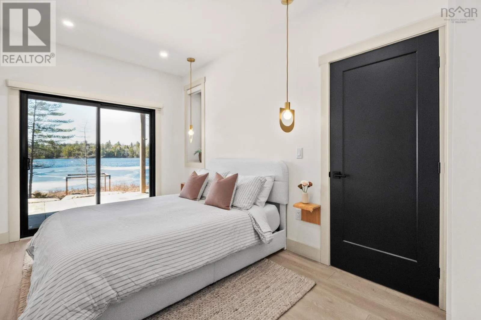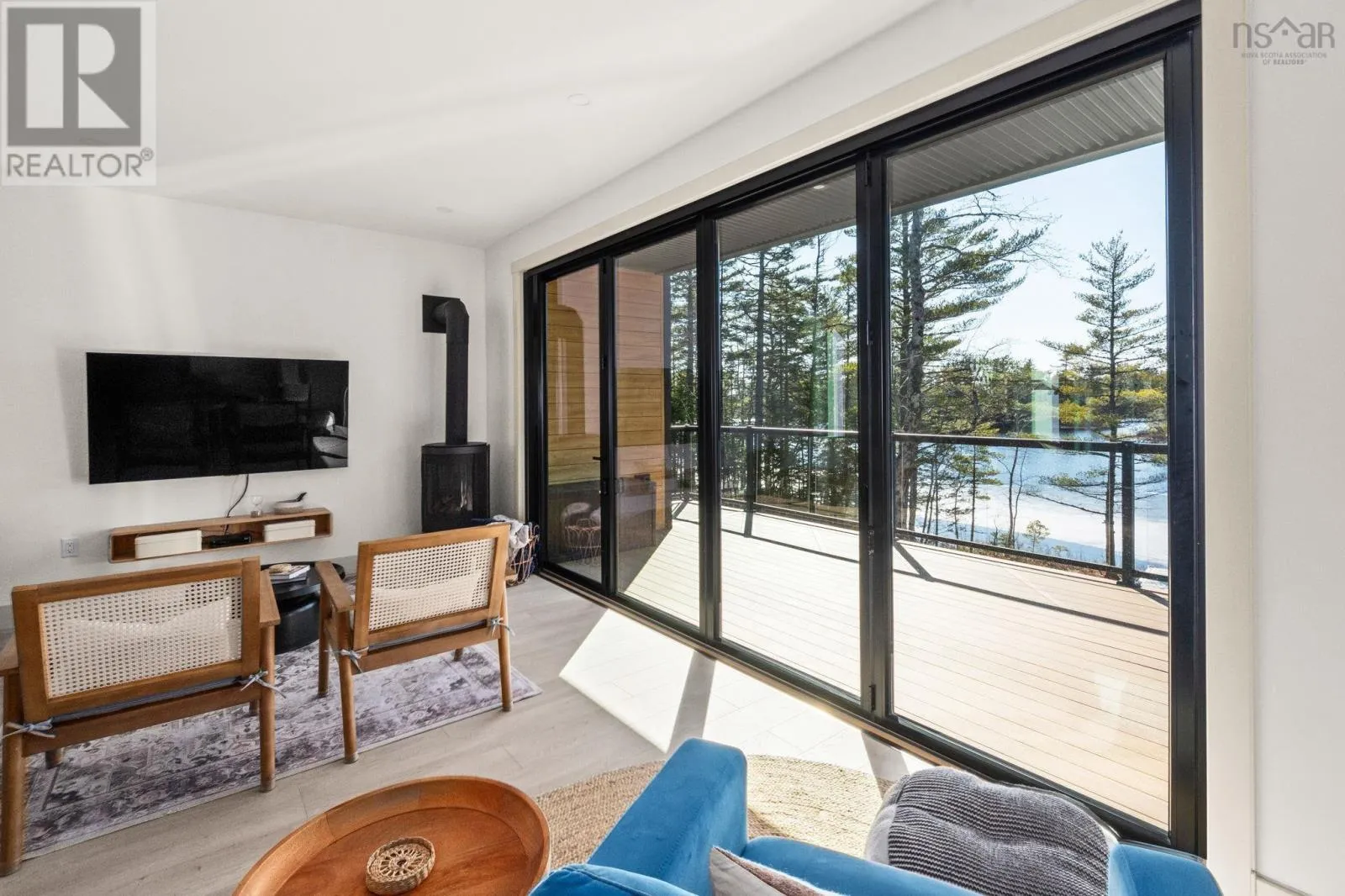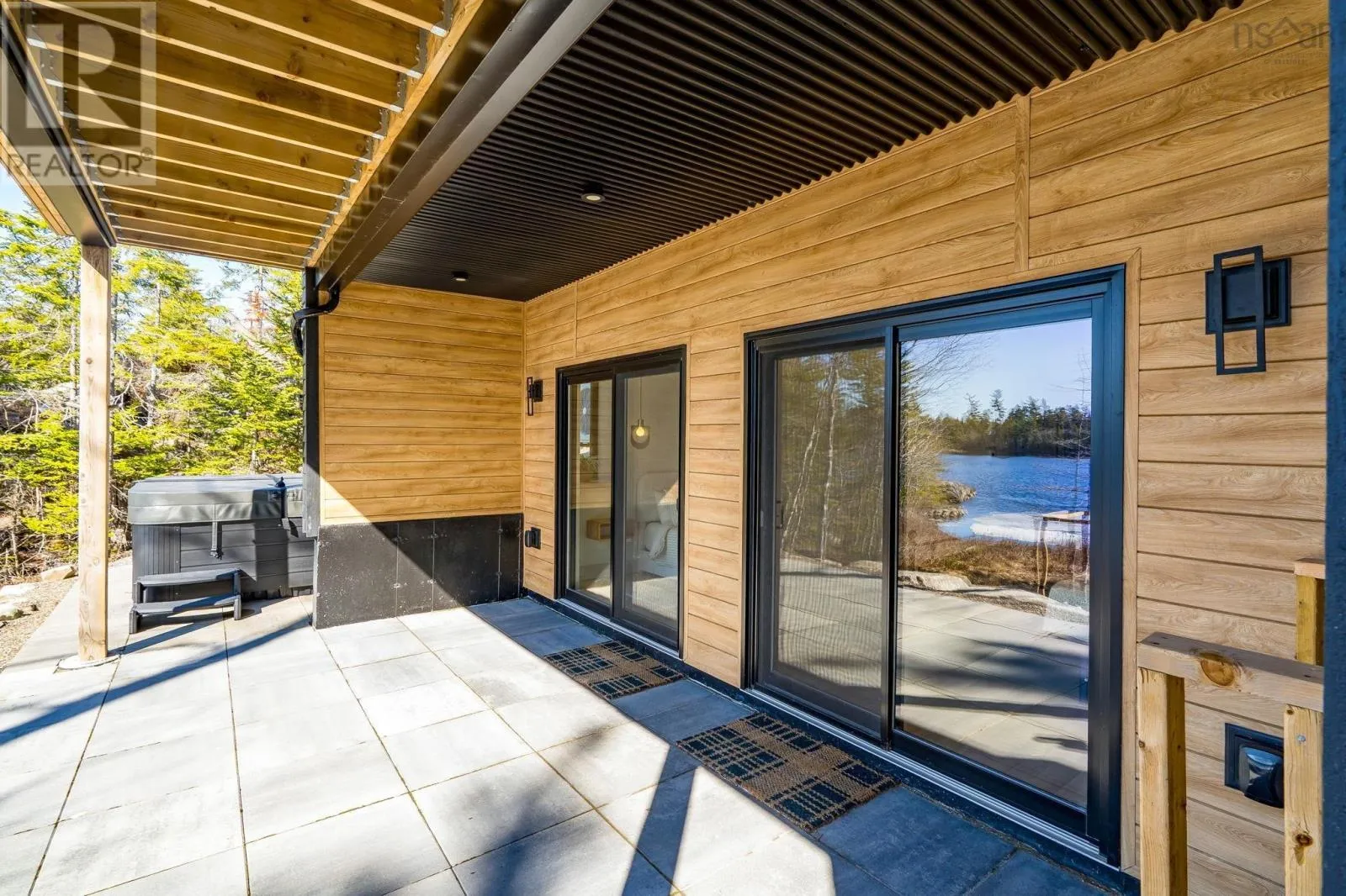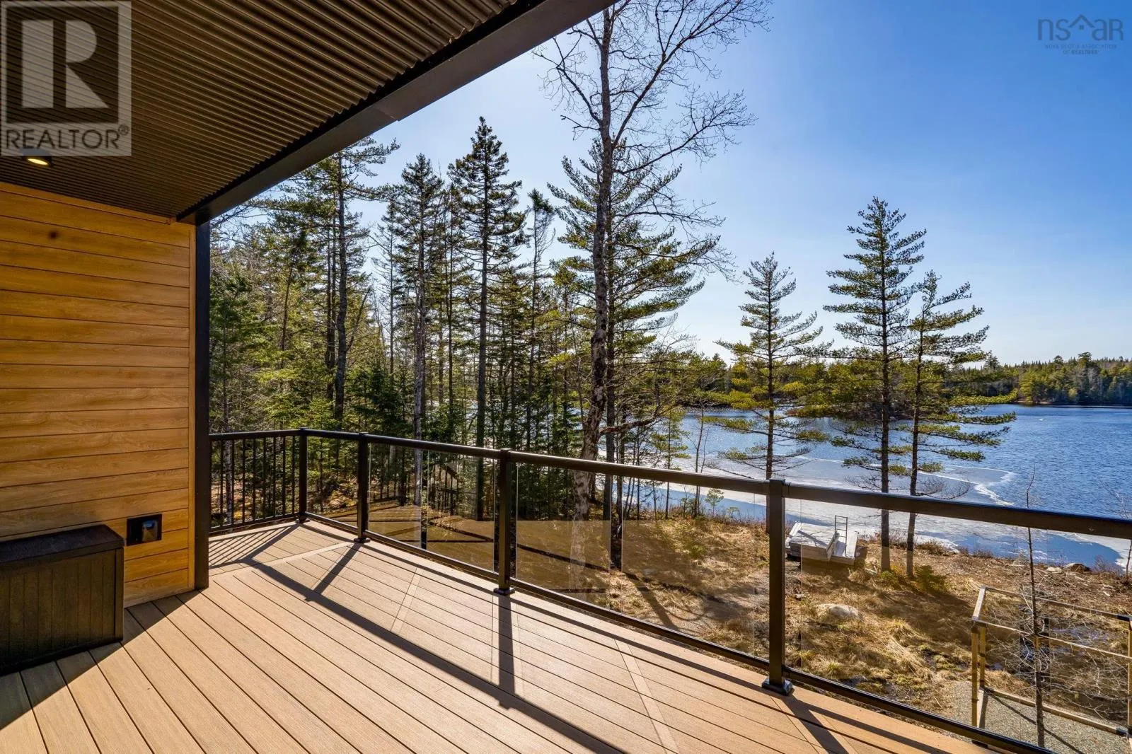 Etter Road to Eaast Uniacke Road to Nature Dr. to Meek Arm Trail Tucked into a quiet cove on sought-after Long Lake, 179 Meek Arm Trail offers a rare blend of modern Scandinavian design and exceptional waterfront living. Built in 2023 and set on a private 1.25-acre, tree-lined lot, this custom home is thoughtfully positioned to capture nearly 270-degree lake views and a true connection to nature. The bright, open-concept main level is designed for both everyday living and entertaining, featuring expansive windows, refined modern finishes, and seamless flow between the kitchen, dining, and living areas. A striking wall of bifold doors opens fully to the lake-facing deck, creating an effortless indoor-outdoor lifestyle. A sleek propane fireplace adds warmth and ambiance, while a discreet walk-in pantry provides excellent storage and functionality. With 1,836 sq ft, the layout is efficient and well-proportioned. The upper level is dedicated to a private primary retreat with stunning lake views, balcony access, walk-in closet, and a beautifully appointed ensuite. A versatile loft space offers flexibility for a home office or studio. The lower level includes two additional bedrooms and a full bath, ideal for guests or family. Outside, professionally designed landscaping blends natural stone and curated plantings for a low-maintenance, cohesive aesthetic. Enjoy the fire pit, hot tub, and canopy lounge, or take full advantage of the private dock with approximately 6 feet of water depth on this motorized lakeperfect for swimming, boating, and paddleboarding. Additional features include ample parking, storage container, and low annual condo fees ($792) covering road maintenance and snow clearing. A turnkey lakeside retreat just 45 minutes from Halifax. (id:27476)