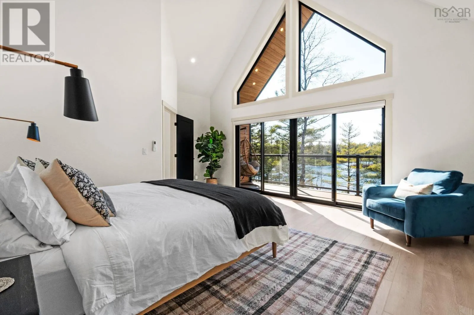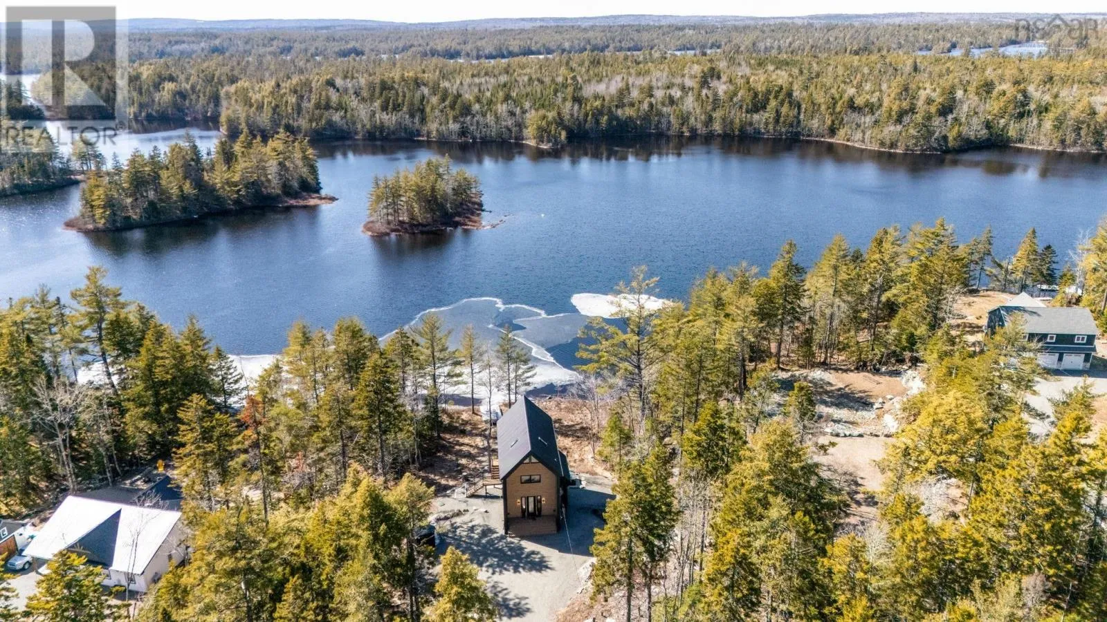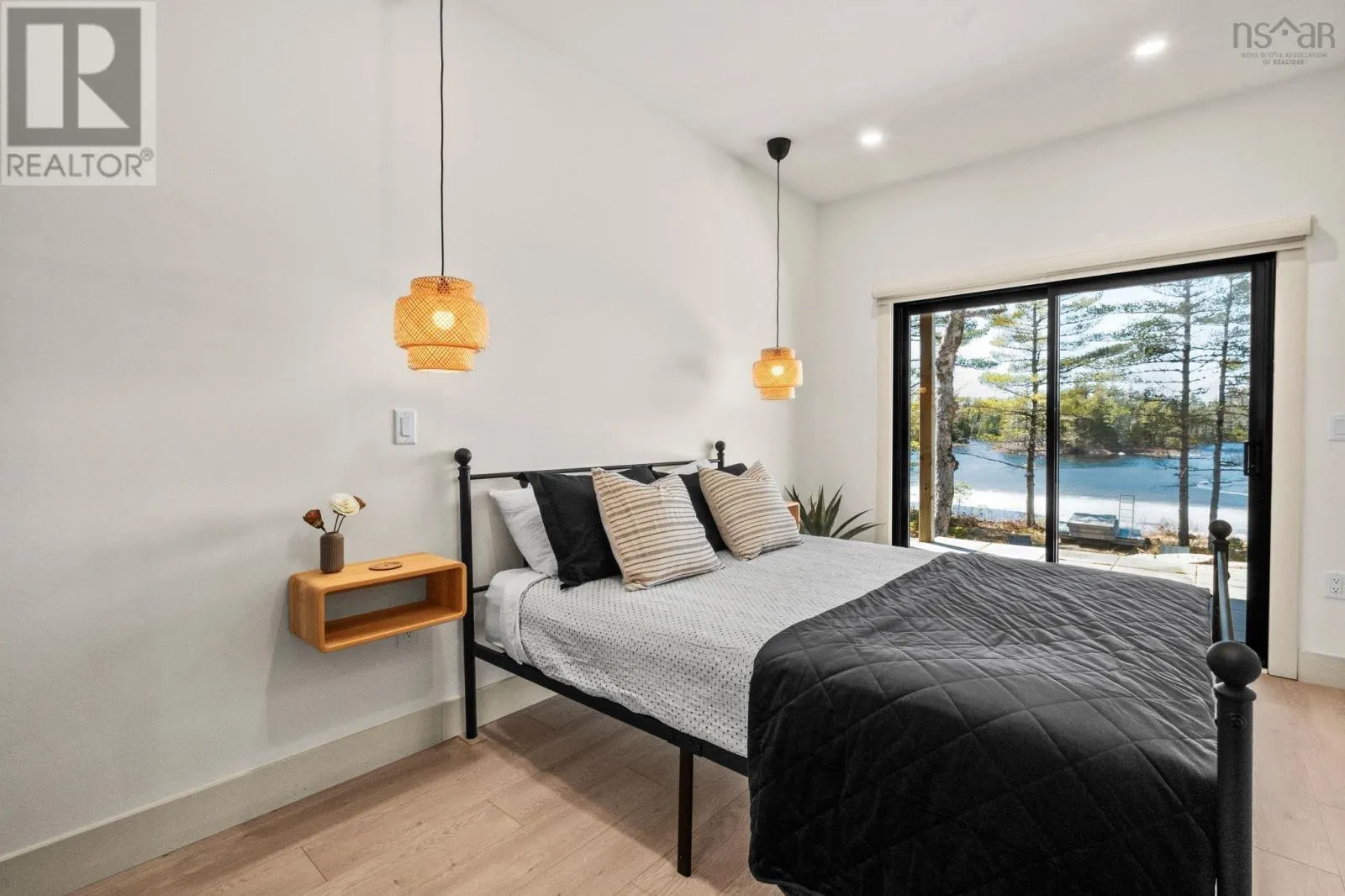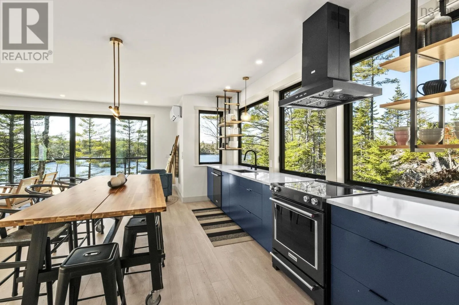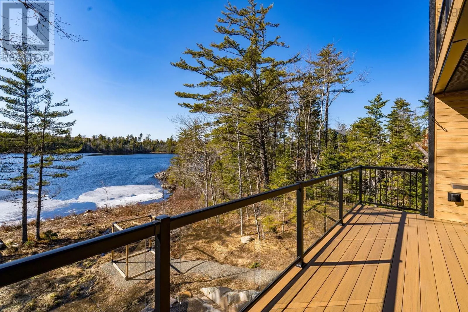 Etter Road to Eaast Uniacke Road to Nature Dr. to Meek Arm Trail Tucked into a quiet cove on sought-after Long Lake, 179 Meek Arm Trail offers a rare blend of modern Scandinavian design and exceptional waterfront living. Built in 2023 and set on a private 1.25-acre, tree-lined lot, this custom home is thoughtfully positioned to capture nearly 270-degree lake views and a true connection to nature. The bright, open-concept main level is designed for both everyday living and entertaining, featuring expansive windows, refined modern finishes, and seamless flow between the kitchen, dining, and living areas. A striking wall of bifold doors opens fully to the lake-facing deck, creating an effortless indoor-outdoor lifestyle. A sleek propane fireplace adds warmth and ambiance, while a discreet walk-in pantry provides excellent storage and functionality. With 1,836 sq ft, the layout is efficient and well-proportioned. The upper level is dedicated to a private primary retreat with stunning lake views, balcony access, walk-in closet, and a beautifully appointed ensuite. A versatile loft space offers flexibility for a home office or studio. The lower level includes two additional bedrooms and a full bath, ideal for guests or family. Outside, professionally designed landscaping blends natural stone and curated plantings for a low-maintenance, cohesive aesthetic. Enjoy the fire pit, hot tub, and canopy lounge, or take full advantage of the private dock with approximately 6 feet of water depth on this motorized lakeperfect for swimming, boating, and paddleboarding. Additional features include ample parking, storage container, and low annual condo fees ($792) covering road maintenance and snow clearing. A turnkey lakeside retreat just 45 minutes from Halifax. (id:27476)