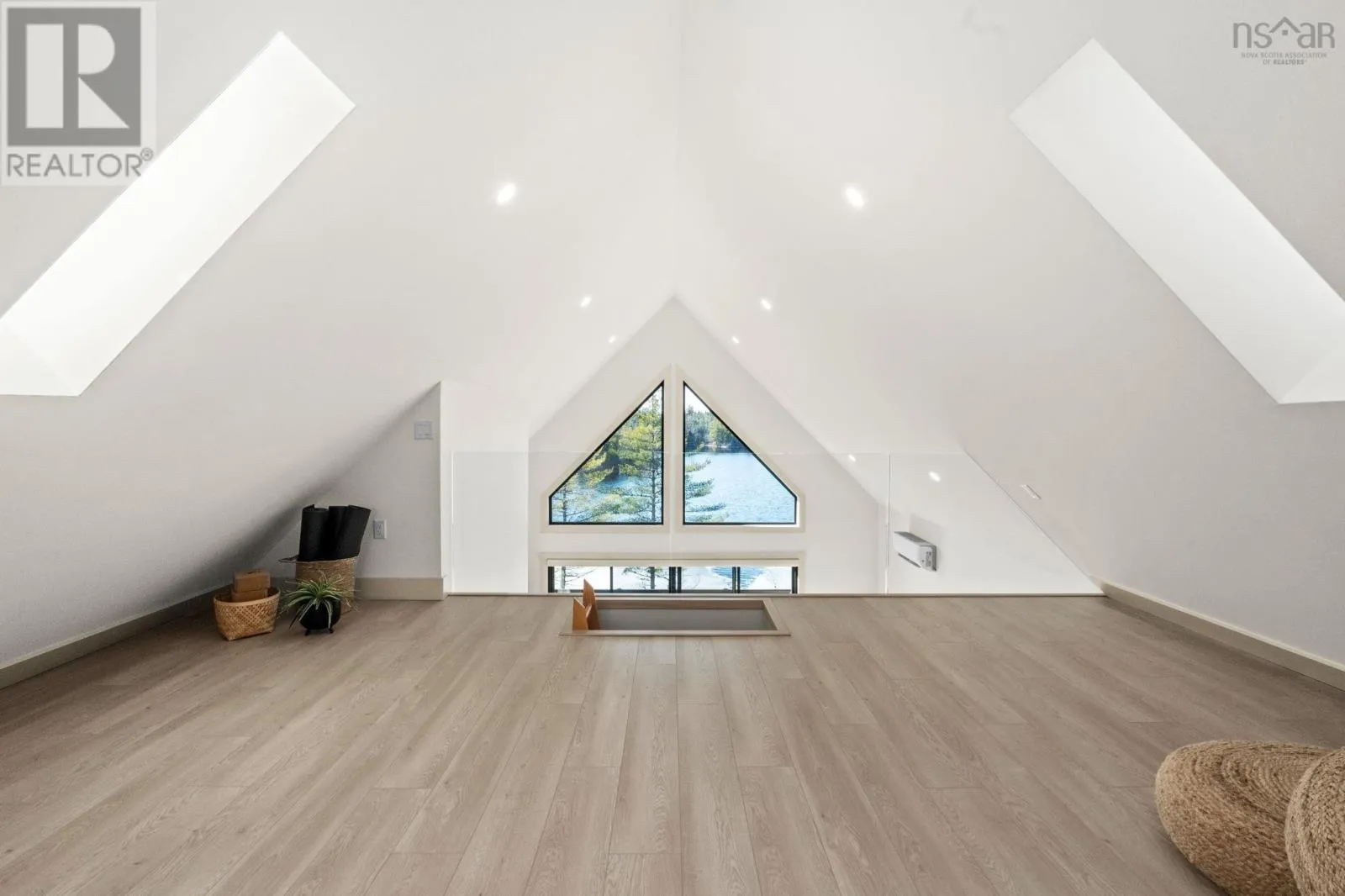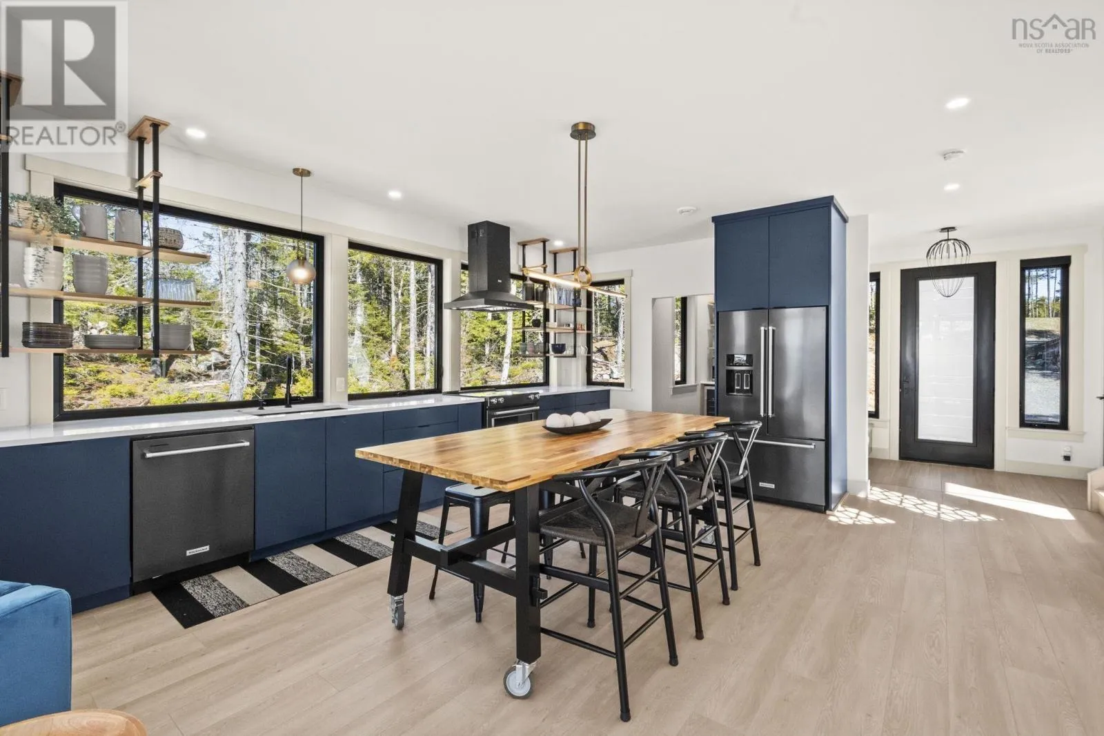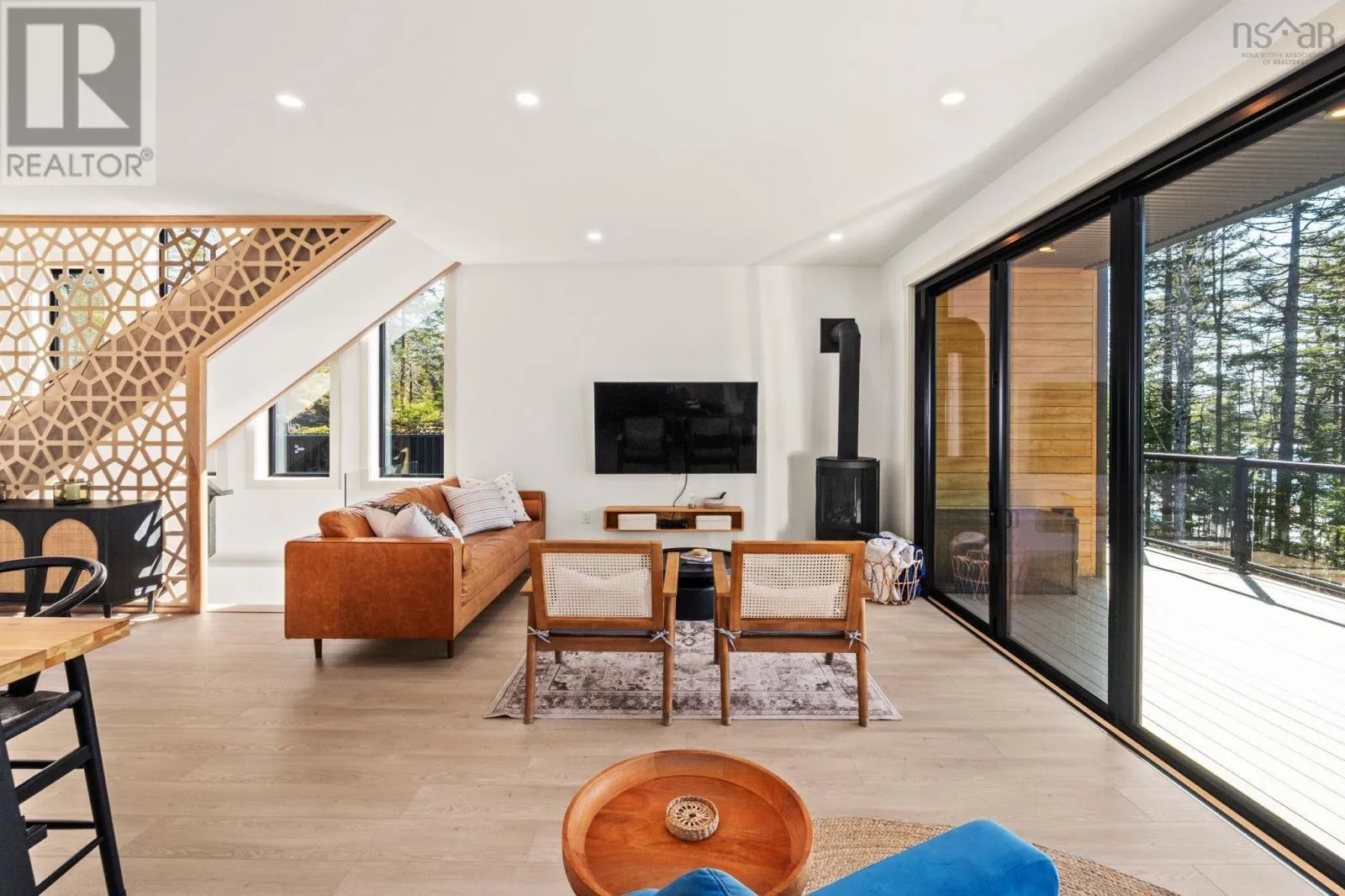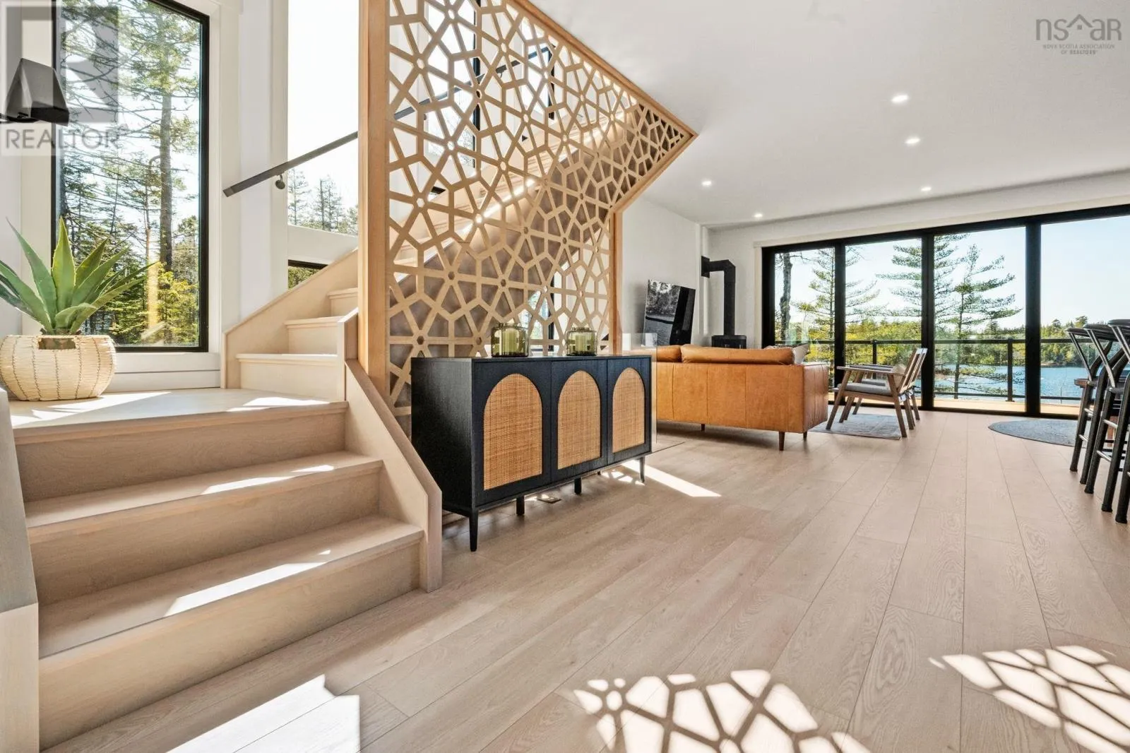 Etter Road to Eaast Uniacke Road to Nature Dr. to Meek Arm Trail Tucked into a quiet cove on sought-after Long Lake, 179 Meek Arm Trail offers a rare blend of modern Scandinavian design and exceptional waterfront living. Built in 2023 and set on a private 1.25-acre, tree-lined lot, this custom home is thoughtfully positioned to capture nearly 270-degree lake views and a true connection to nature. The bright, open-concept main level is designed for both everyday living and entertaining, featuring expansive windows, refined modern finishes, and seamless flow between the kitchen, dining, and living areas. A striking wall of bifold doors opens fully to the lake-facing deck, creating an effortless indoor-outdoor lifestyle. A sleek propane fireplace adds warmth and ambiance, while a discreet walk-in pantry provides excellent storage and functionality. With 1,836 sq ft, the layout is efficient and well-proportioned. The upper level is dedicated to a private primary retreat with stunning lake views, balcony access, walk-in closet, and a beautifully appointed ensuite. A versatile loft space offers flexibility for a home office or studio. The lower level includes two additional bedrooms and a full bath, ideal for guests or family. Outside, professionally designed landscaping blends natural stone and curated plantings for a low-maintenance, cohesive aesthetic. Enjoy the fire pit, hot tub, and canopy lounge, or take full advantage of the private dock with approximately 6 feet of water depth on this motorized lakeperfect for swimming, boating, and paddleboarding. Additional features include ample parking, storage container, and low annual condo fees ($792) covering road maintenance and snow clearing. A turnkey lakeside retreat just 45 minutes from Halifax. (id:27476)