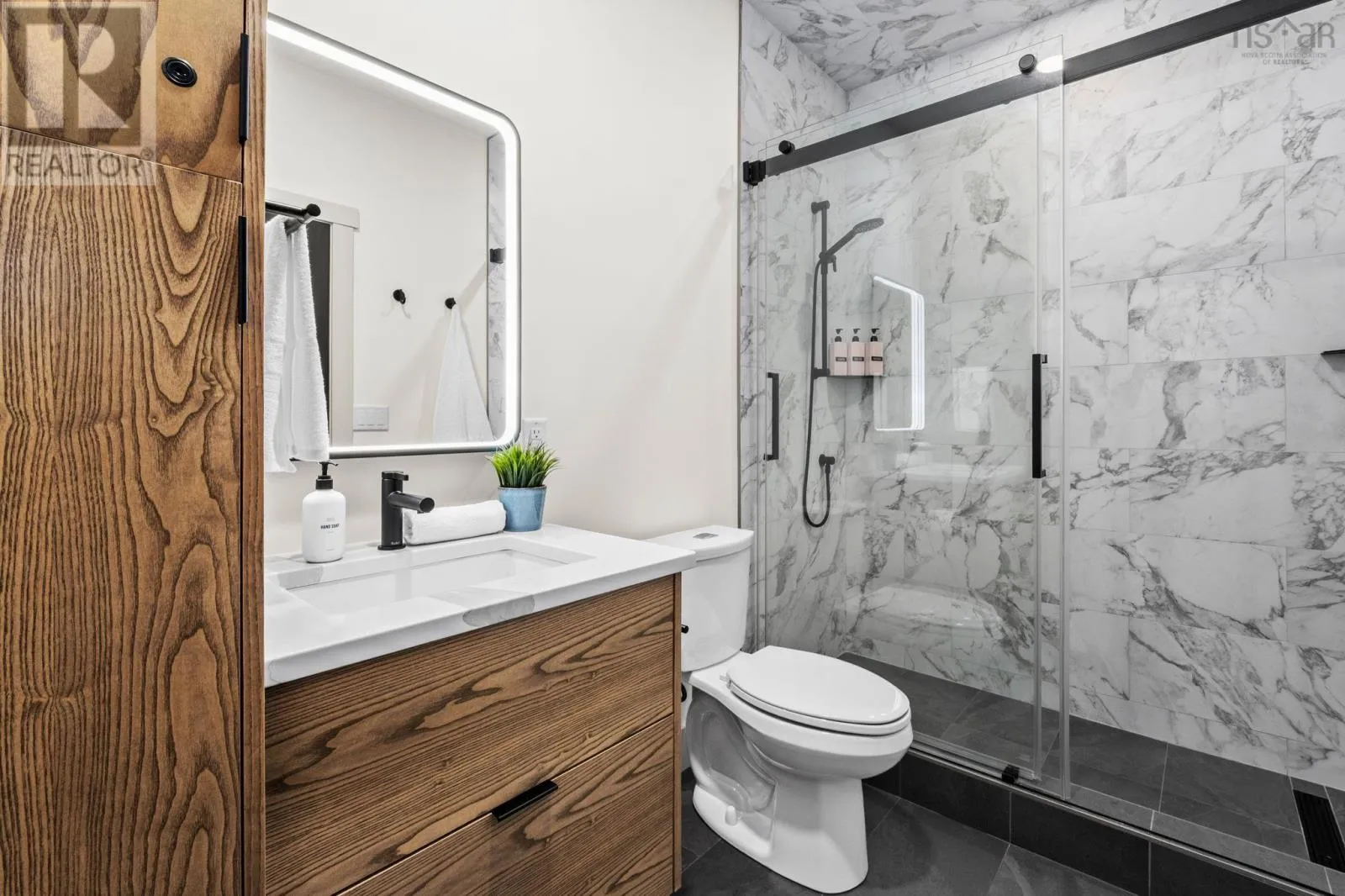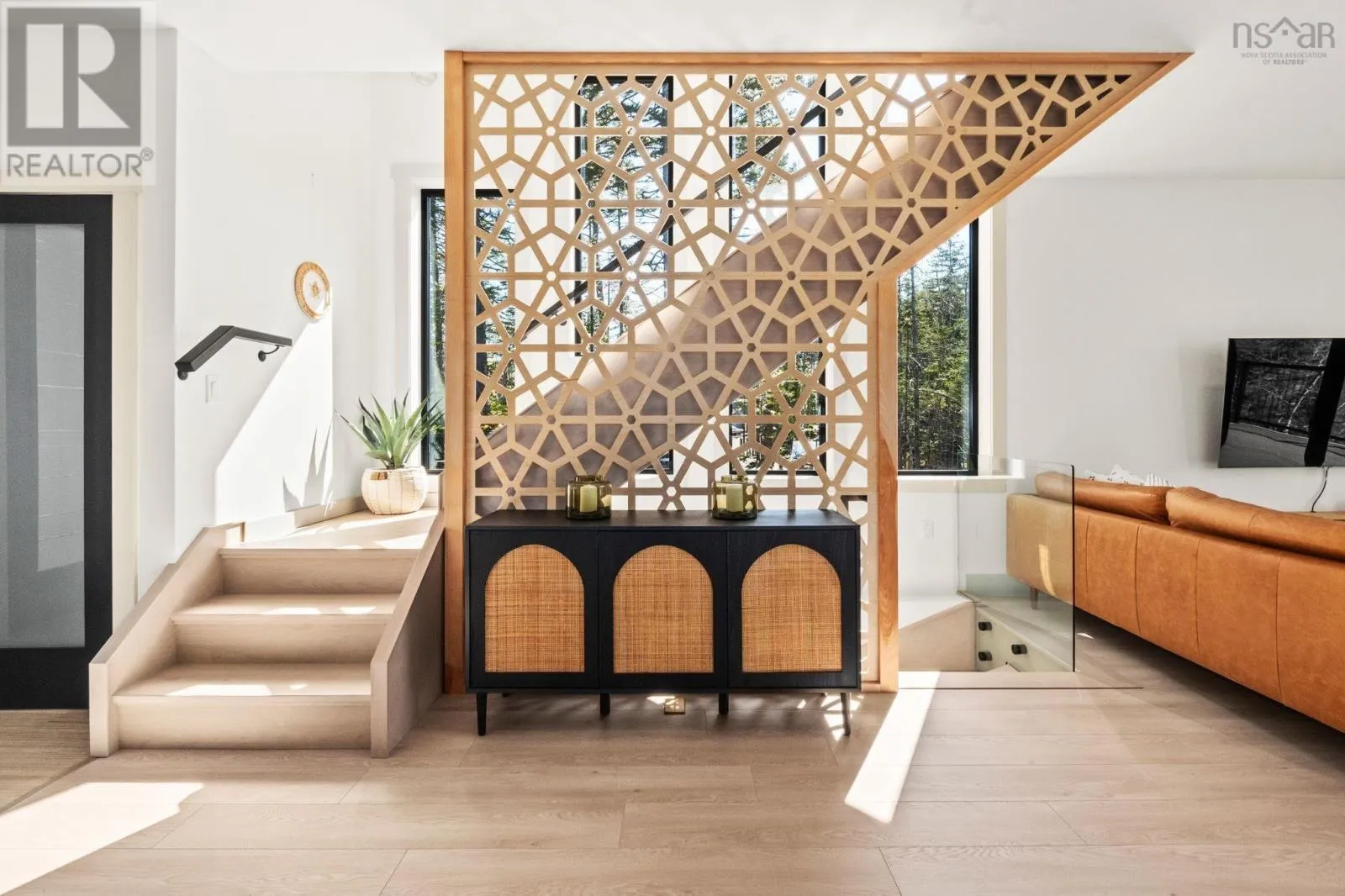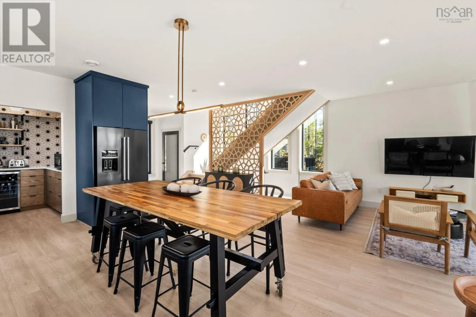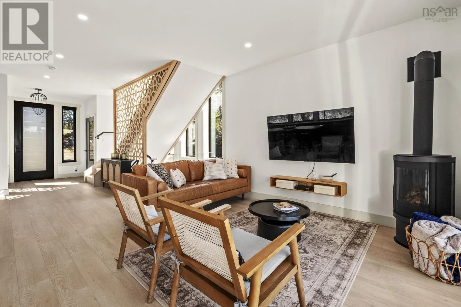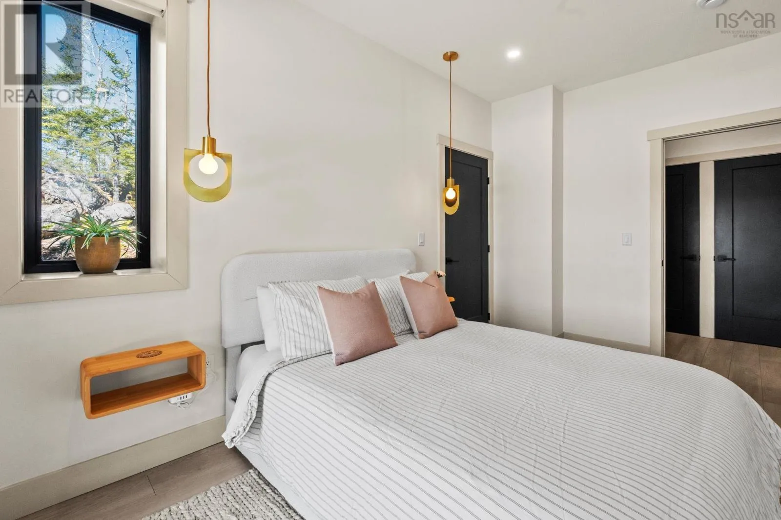 Etter Road to Eaast Uniacke Road to Nature Dr. to Meek Arm Trail Tucked into a quiet cove on sought-after Long Lake, 179 Meek Arm Trail offers a rare blend of modern Scandinavian design and exceptional waterfront living. Built in 2023 and set on a private 1.25-acre, tree-lined lot, this custom home is thoughtfully positioned to capture nearly 270-degree lake views and a true connection to nature. The bright, open-concept main level is designed for both everyday living and entertaining, featuring expansive windows, refined modern finishes, and seamless flow between the kitchen, dining, and living areas. A striking wall of bifold doors opens fully to the lake-facing deck, creating an effortless indoor-outdoor lifestyle. A sleek propane fireplace adds warmth and ambiance, while a discreet walk-in pantry provides excellent storage and functionality. With 1,836 sq ft, the layout is efficient and well-proportioned. The upper level is dedicated to a private primary retreat with stunning lake views, balcony access, walk-in closet, and a beautifully appointed ensuite. A versatile loft space offers flexibility for a home office or studio. The lower level includes two additional bedrooms and a full bath, ideal for guests or family. Outside, professionally designed landscaping blends natural stone and curated plantings for a low-maintenance, cohesive aesthetic. Enjoy the fire pit, hot tub, and canopy lounge, or take full advantage of the private dock with approximately 6 feet of water depth on this motorized lakeperfect for swimming, boating, and paddleboarding. Additional features include ample parking, storage container, and low annual condo fees ($792) covering road maintenance and snow clearing. A turnkey lakeside retreat just 45 minutes from Halifax. (id:27476)