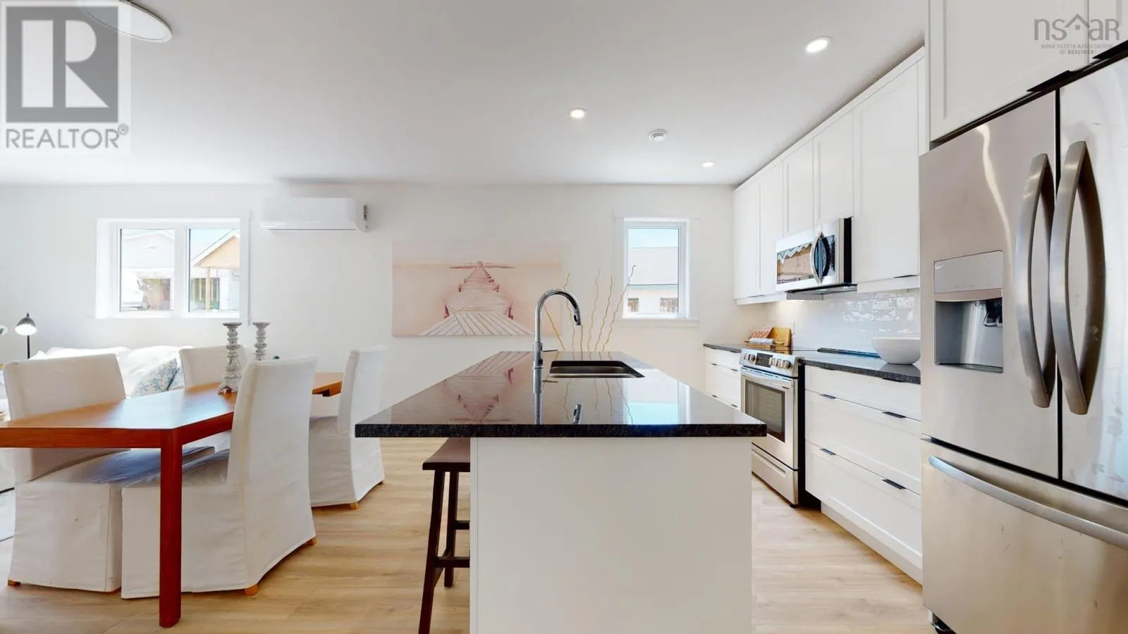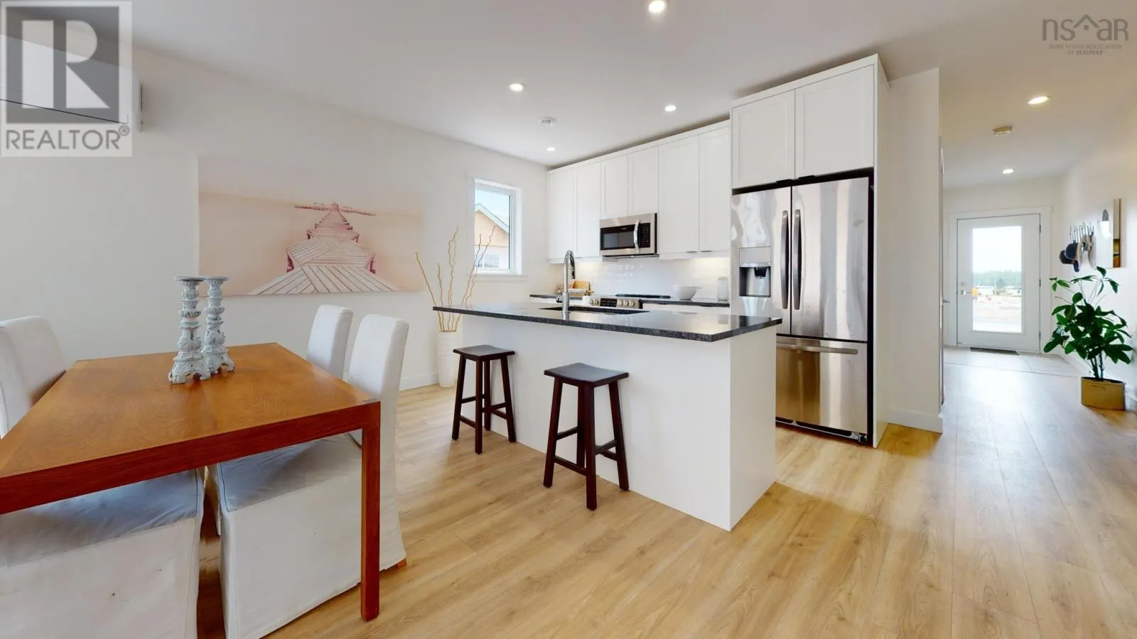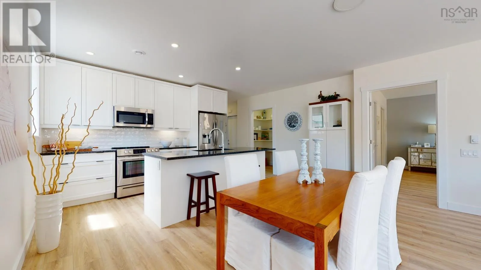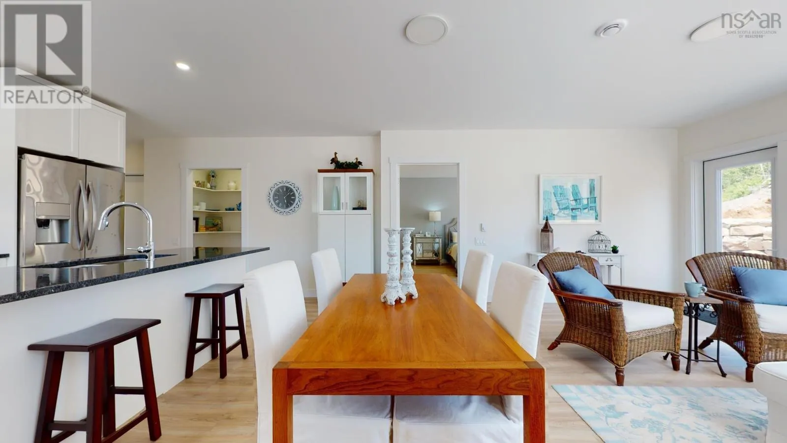 Main Street Eastern Passage to Shore Drive, left on Sailors Trail, first right on the loop around Sailors Trail Fabulous alternative to a condo apartment with unparalleled lifestyle. Located within the desirable community knows as The Village at Fisherman's Cove this sweet bungalow offers over 1200 sqft of true single level living and all the comforts and efficiency of a brand new home. Enter the foyer off your covered porch and find an attractive open layout featuring a bright kitchen with granite counters, a terrific island for prep work and breakfast, a large walk in pantry, quality laminate floors and outstanding comfort of a heat pump. A super spacious primary bedroom is a true retreat with walk-in closet and ensuite with double vanity and easy to clean large shower. A second bedroom has french doors for multi-function space as a den or guest bedroom. Convenient access to the second full bath. In unit laundry and a single car garage for your private and personal use. All the convenience of total lawn care, snow removal, exterior home maintenance, and water are included, not to mention use of the totally stunning club house with library, party space, heated out door pool and furnished one bedroom guest suite available for rent to residents. Walk down the street two minutes and you're on the incredible boardwalk at MacCormack's Beach, and a stone's throw from restaurants, shops and services. Just 7 minutes to the Dartmouth General or 10 minutes to Dartmouth Crossing. You can live on the beach and still be in downtown Halifax in 30 minutes or less. Several units to choose from in additional phases. Virtual tour & photos are of a former model home in the same layout for reference purposes. May still be time to customize interior finishes depending on unit. (id:27476)