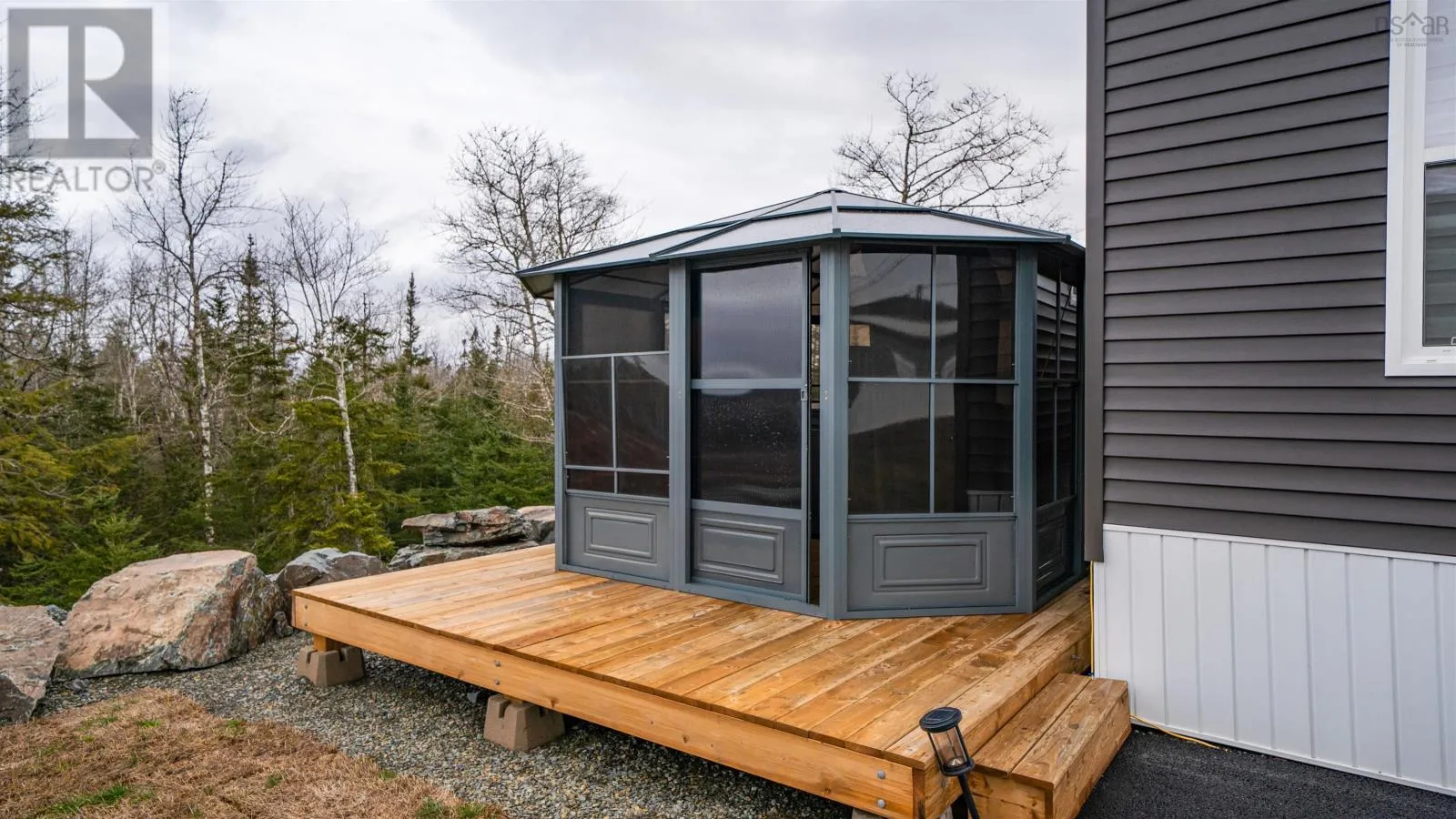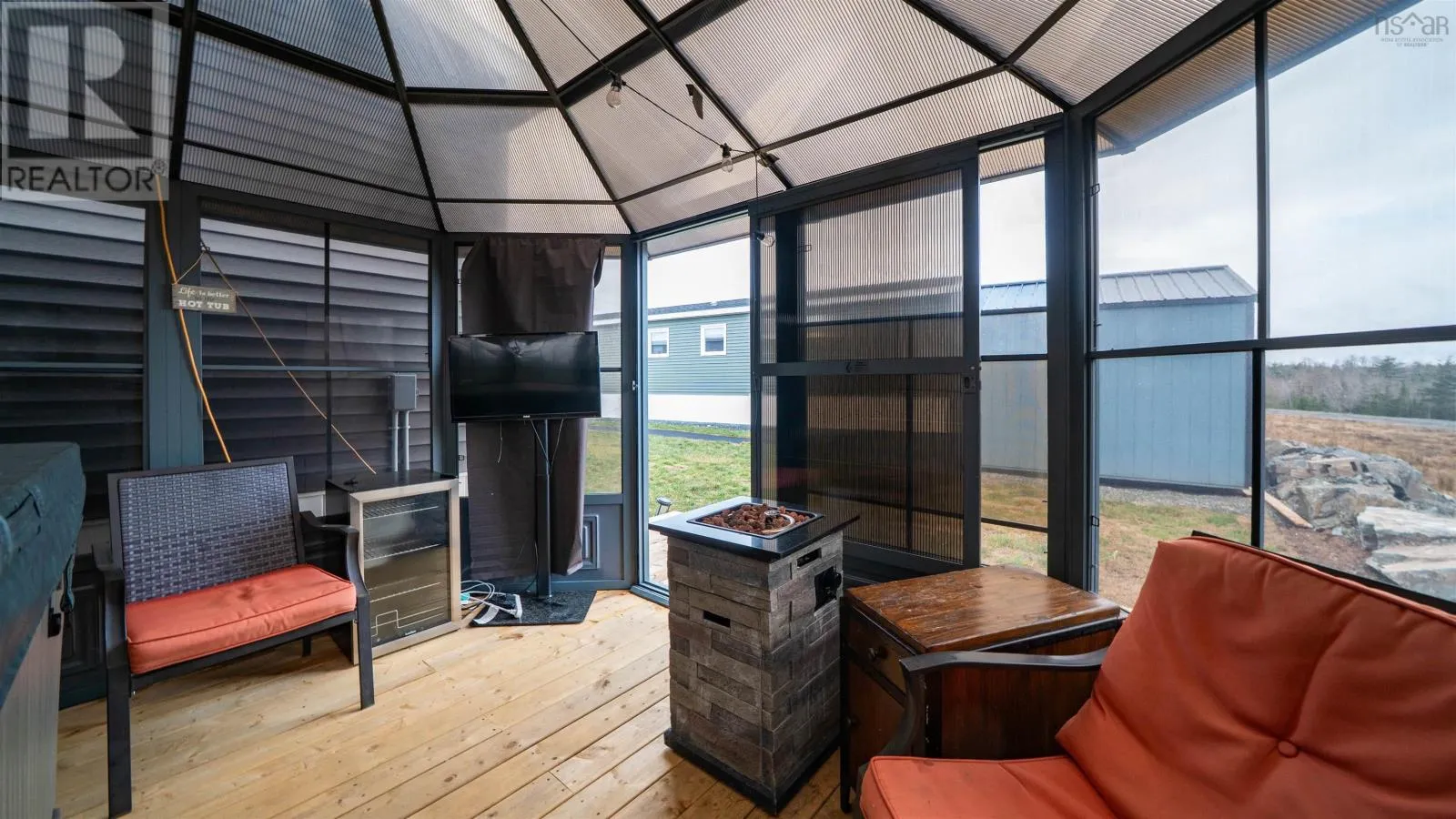 Hwy 2 - to Elmsdale Road, right on Old Truro Road - follow straight, community entrance approximately 600 ft past Hescott Streeton the left Welcome to Castlegrove Estates in Elmsdale, where this immaculate, move-in ready home delivers the perfect blend of modern comfort, thoughtful design, and high-value upgrades. Featuring the 1,200 sq ft Seascape plan, this 3 bedroom, 2 bathroom manufactured home feels bright and spacious with 9' transom ceilings and an inviting open-concept main living area - ideal for everyday living and entertaining. At the heart of the home is a standout kitchen with an impressive 8' island with seating, ample cabinetry, and a large pantry for exceptional storage. High-end waterproof laminate flooring runs throughout for style and durability, while crown molding in every room adds a polished, upscale finish. Comfort is covered year-round with heat pump efficiency, plus an additional heat pump for enhanced climate control. The primary suite is a true retreat, complete with a walk-in closet and a beautiful ensuite featuring a walk-in shower with glass door and built-in seat. Outside, enjoy your own private oasis with a green space lot, landscaping, paved driveway, 10x12 composite deck, and the ultimate backyard extrasincluding a gazebo, hot tub, and shed - perfect for relaxing or hosting. Loaded with upgrades such as customized power blinds, a custom fireplace, and an electric car charger, this home checks every box. Appliances included: fridge, stove, microwave range hood, dishwasher, washer & dryer. Bonus: NO DEED TRANSFER TAX. This is Castlegrove living at its bestmeticulously maintained and ready for new owners. (id:27476)