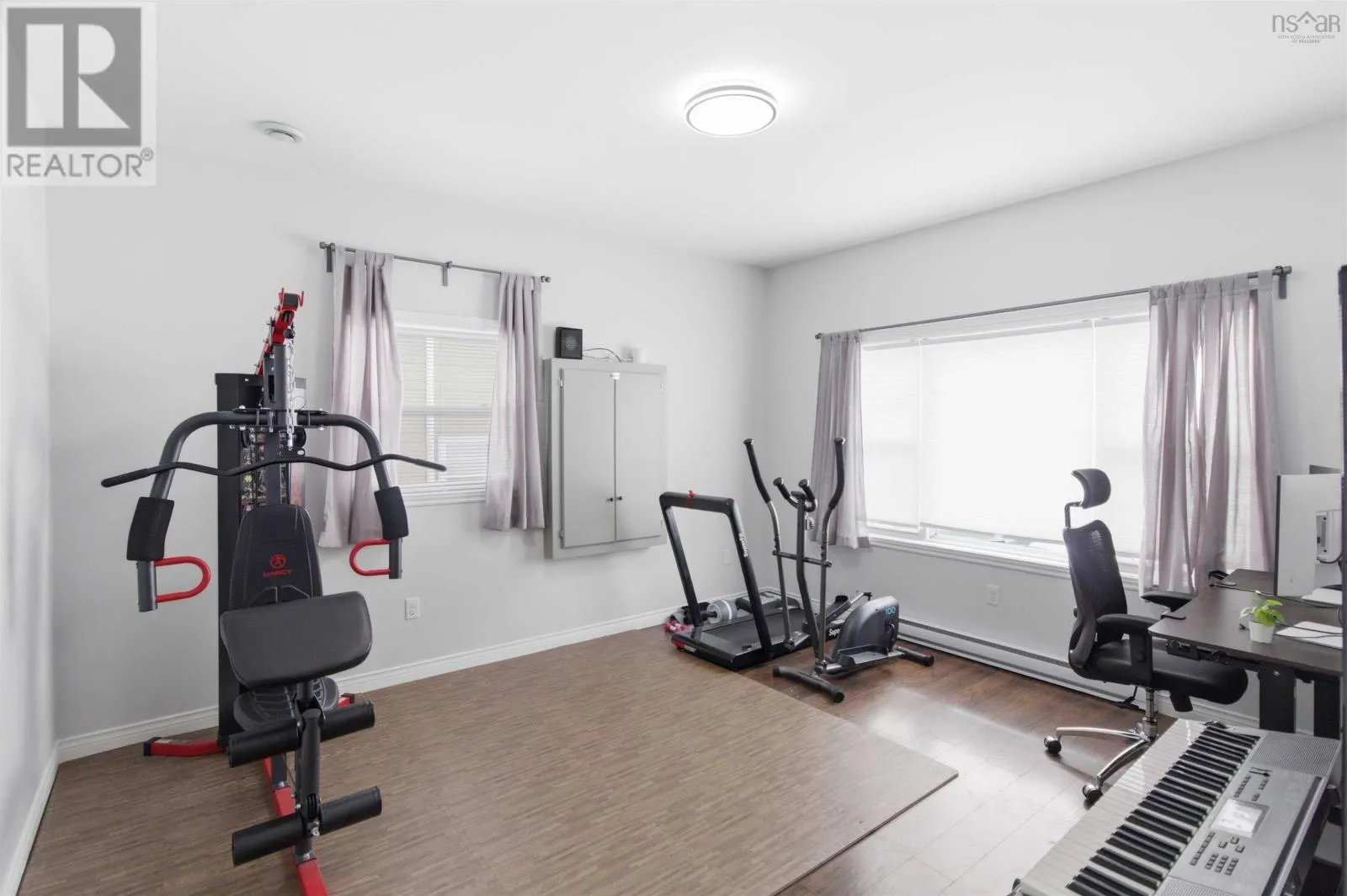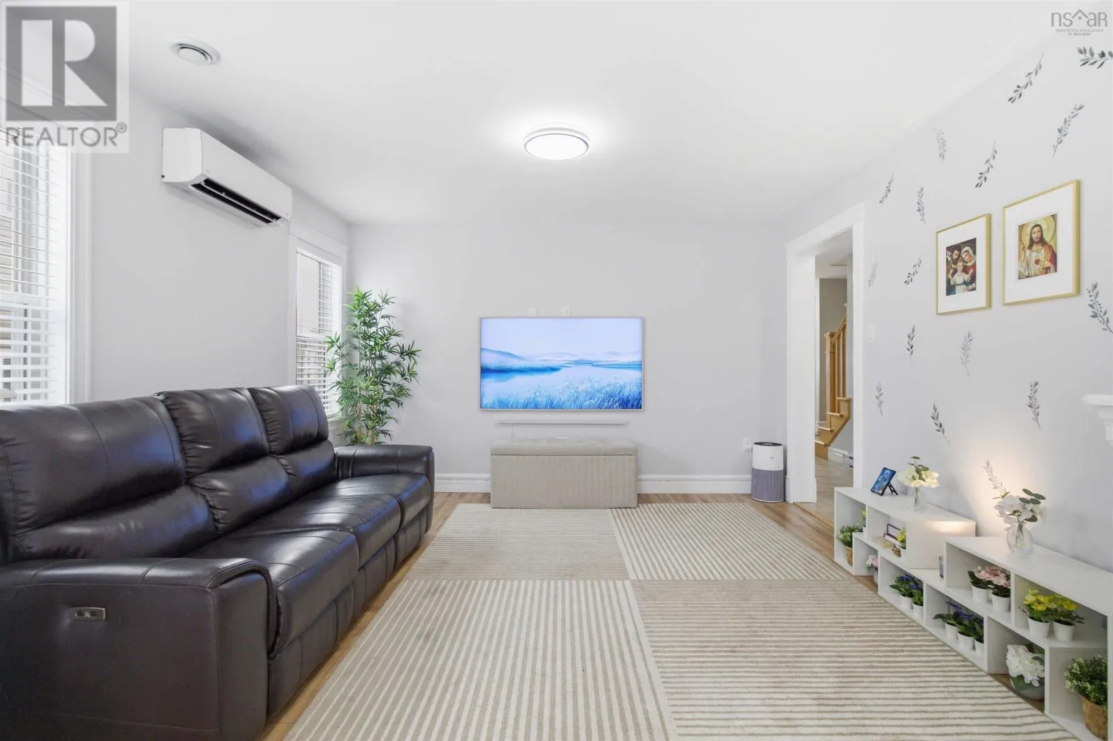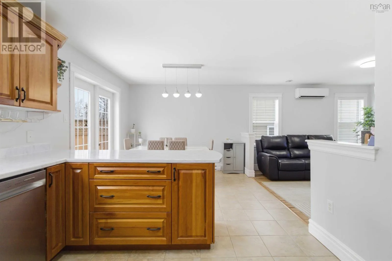 Highway 2 to Kali Lane Welcome to this stunning three-level semi-detached home in the heart of Elmsdale, offering over 2,400+ sq ft of beautifully finished, low-maintenance living. This unique and thoughtfully designed layout features a rare main-floor bedroom or denperfect for guests, a home office, or multigenerational livingalongside a gorgeous kitchen, a bright dining area, and a spacious living room with a ductless heat pump for year-round comfort. Upstairs, youll find three generous bedrooms, a convenient upper-level laundry, a full bath, and a spacious primary suite complete with a walk-in closet and private 4-piece ensuite. The fully finished lower level offers a huge rec room, additional half bath, ample storage, and a walkout to a private fenced backyardideal for kids and pets. Enjoy summer evenings on the large deck, a paved driveway, and a 16x14 wired shed perfect for hobbies or extra storage. Located just steps from the walking path to Elmsdale District Elementary School, this home combines space, style, and unbeatable convenience in a fantastic family-friendly neighbourhood close to all amenities. Book your private viewing todayyoull be pleasantly surprised by everything this exceptional home has to offer. (id:27476)