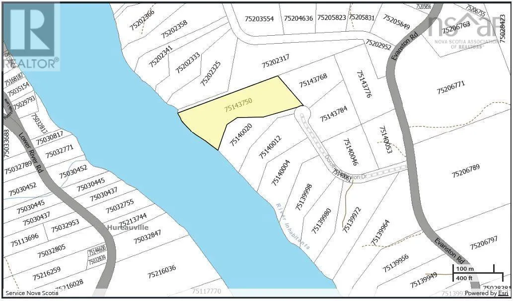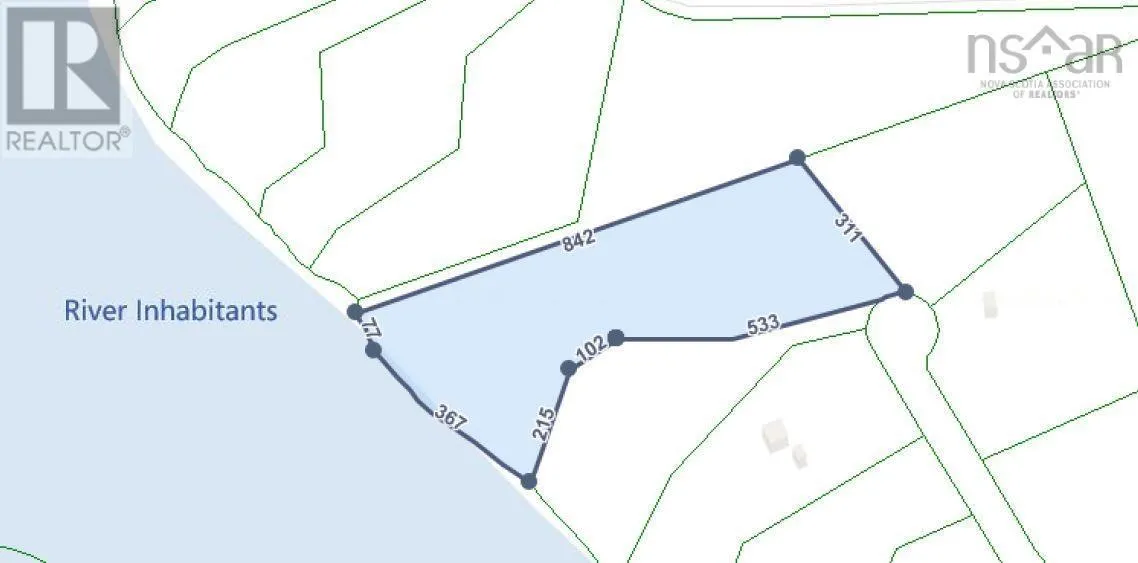 Basin (Evanston Rd) to Dorothy Robinson Drive. Lot is at the end of the road. In one of the most popular regions of Cape Breton, you will find this 5.16 Acre riverfront property (Lot 12A) in Evanston, just a few minutes from a small medical clinic directly on the River Inhabitants. The property, which can be used all year round, is approached via a private access road (Dorothy Robinson Drive) and is located at the rear end of the subdivision directly at the turning area. The Lot has a pleasant slope to the south-west towards the shore. Electricity is located directly in front of the property. High-speed internet is usually possible in this area without any problems. St. Peters and Port Hawkesbury with the supermarkets and various shops, schools, doctors, banks and restaurants can each be reached in about 15 minutes. Playing golf at Dundee Golf Club in West Bay is also only about a quarter of an hour's drive away. The world-famous Cabot Trail is about 1.5 hours away and the international airport in Halifax can be reached by car via well-developed highways in a good two and a half hours. (id:27476)