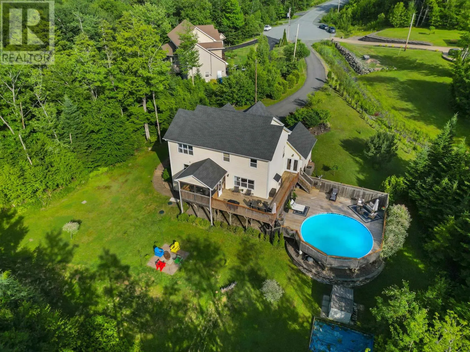 Fall River Road to Arthur Joseph Road to Tamarac straight into Talisman Drive Welcome to 104 Talisman Drive, Fall River! Recently enhanced with a brand-new septic field and upgraded system, this property offers peace of mind along with exceptional living. Tucked away on a quiet cul-de-sac in one of HRMs most sought-after school districts, this 4+1 bedroom, 3.5 bath home strikes the perfect balance of space and privacy. On the main level, youll find a bright, spacious kitchen with a dining nook that flows into the family room with fireplaceperfect for cozy evenings. A large living room, dedicated dining room, practical entry nook with hooks and closet spaceperfect for coats, boots, and backpacks plus a powder room round out this floor. Just off the kitchen, a screened-in covered deck brings the outdoors in, offering a tranquil retreat for your morning coffee or evening wind-down. Upstairs, four generous bedrooms include a primary suite designed to impress: two walk-in closets, a luxurious ensuite, and a bonus nookideal for yoga, a reading corner, or quiet escape. Another full bath serves this level. The fully finished lower level walks out to the backyard and offers endless flexibilitywhether for family fun or hosting guests. A recreation room, fifth bedroom, full bath, bonus space (currently used as a bedroom, but perfect as a den or craft room), laundry nook, and plenty of storage ensure theres room for everyone and everything. Set on a beautifully landscaped 2.4-acre lot surrounded by mature trees, the outdoor living is just as inviting. A paved driveway leads to the double garage, while the backyard is built for entertainingwith a wraparound deck, above-ground pool, fire pit, and space to roam. Whether hosting a crowd or enjoying the quiet of nature, this home delivers a truly special lifestyle. (id:27476)