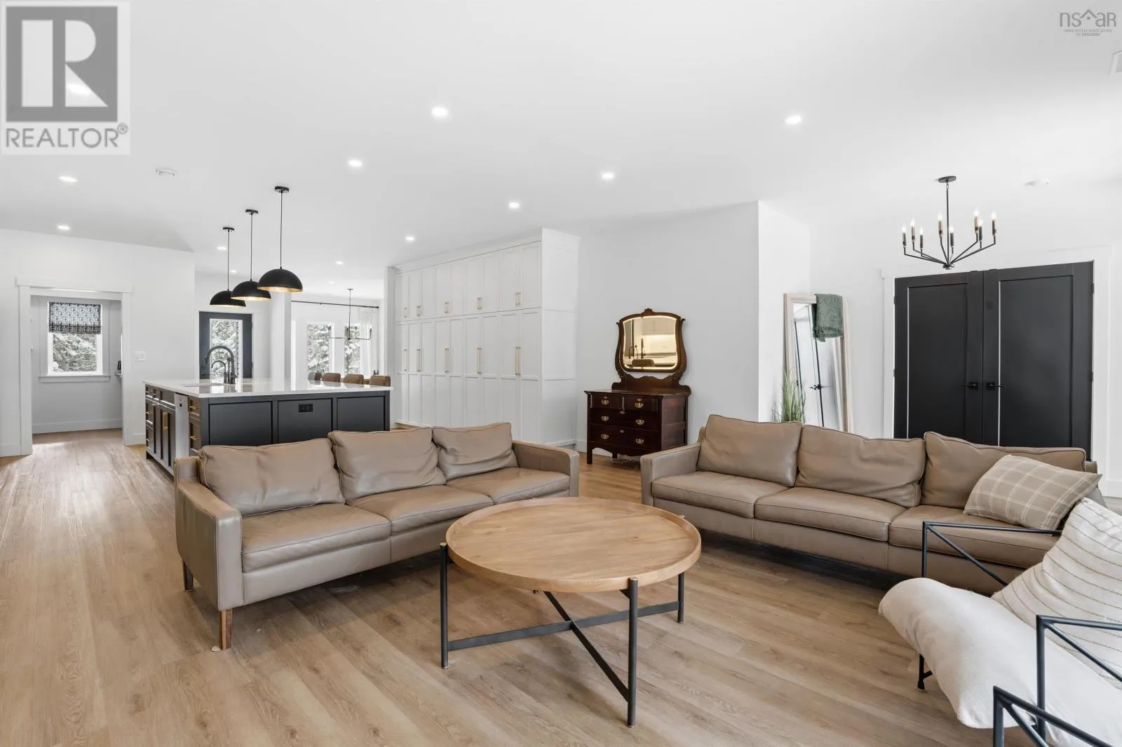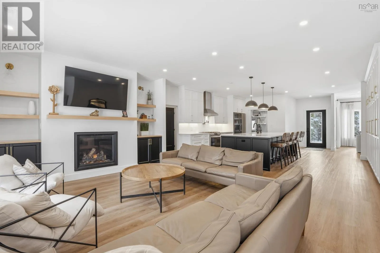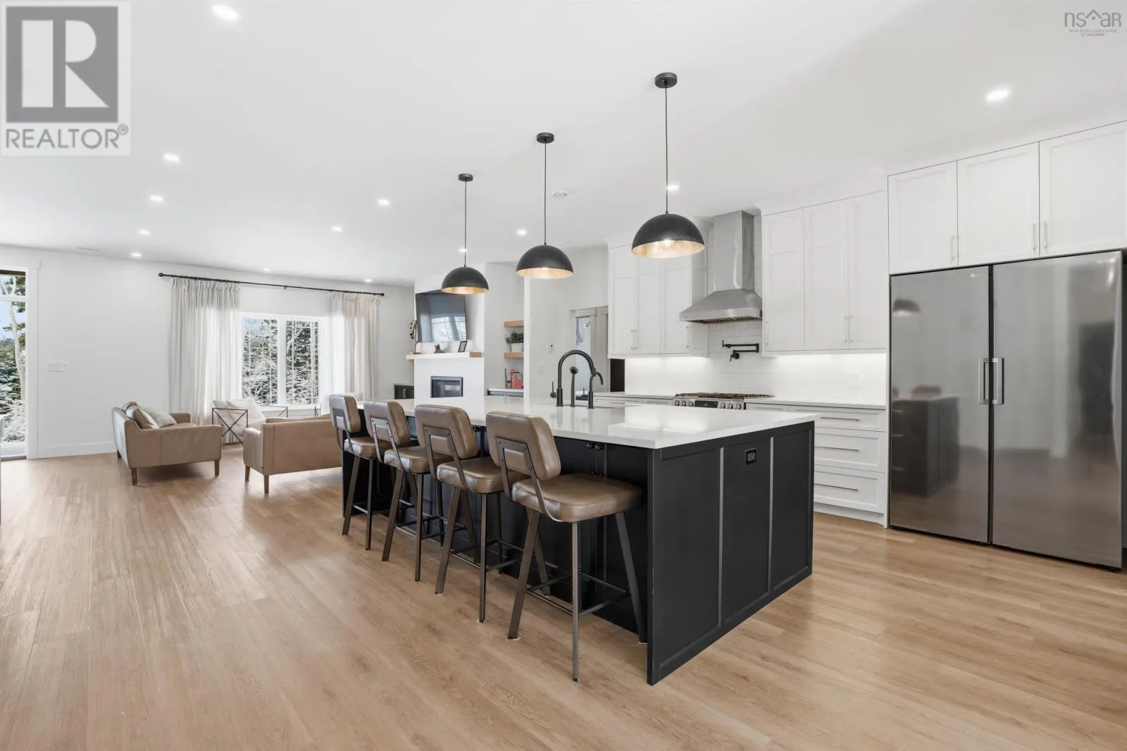 Fall River Road to Lockview, left on Kinclaven, left on High Road OR Fall River Road to Jamieson, right on Karels, left on Marantha, left on High Road. Welcome to 502 High Road, a beautifully crafted custom home in Fall River offering 4 bedrooms, 3 full baths, premium finishes, and exceptional utility features. This slab-on-grade home features an open-concept layout with luxury vinyl plank and ceramic flooring, designer lighting, propane fireplace, and a stunning kitchen with a large island, custom cabinetry, walk-in pantry, propane range with pot filler, and reverse osmosis system. The spacious primary suite includes a 10 x 10 walk-in closet and a spa-like ensuite with soaker tub and custom shower. Efficiently built with 2x6 wall construction, R27.5 wall insulation, R60 ceiling insulation, R13 under-slab insulation, 6-zone in-floor heating, propane boiler, and a centrally ducted heat pump for heating and cooling. The attached 24 x 24 garage and detached 24 x 30 garage with 10-foot ceilings and 40-amp service offer outstanding flexibility for vehicles, storage, or workshop use. Additional features include a gravity-fed septic system, exterior propane BBQ hookup, water softener, all LED lighting, 6-camera security system with video doorbells, and pre-wiring for a future hot tub or pool. Set on a private wooded lot, this is a rare opportunity to own a high-quality home in one of Fall Rivers most desirable areas. (id:27476)