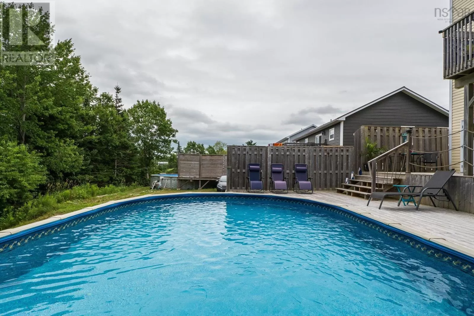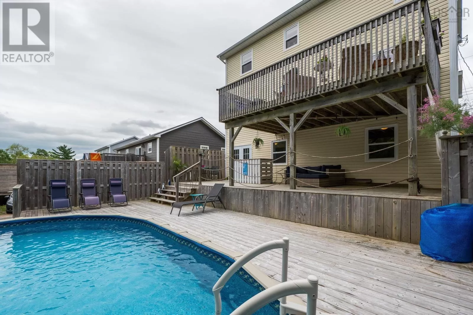 Falmouth Back Rd to Valley View Dr, right on Halewood Dr, sign on civic. Welcome to this beautifully maintained 2-storey home offering comfort, style, and convenience in a highly desirable location. Featuring 4 spacious bedrooms with 2 full and 2 half bathrooms, this property is perfect for families or those who love to entertain. The primary suite is a true retreat, complete with a large ensuite bathroom and a generous walk-in closet. The home's thoughtful layout includes multiple living areas designed for any growing family. Step outside to enjoy a large deck overlooking a professionally installed salt water pool, ideal for summer gatherings and private enjoyment. The home is situated on municipal services, adding to the ease of maintenance, and features a brand-new energy-efficient heat pump for year-round comfort. Located just minutes from the golf course, this home offers the perfect blend of suburban tranquility and recreational access. (id:27476)