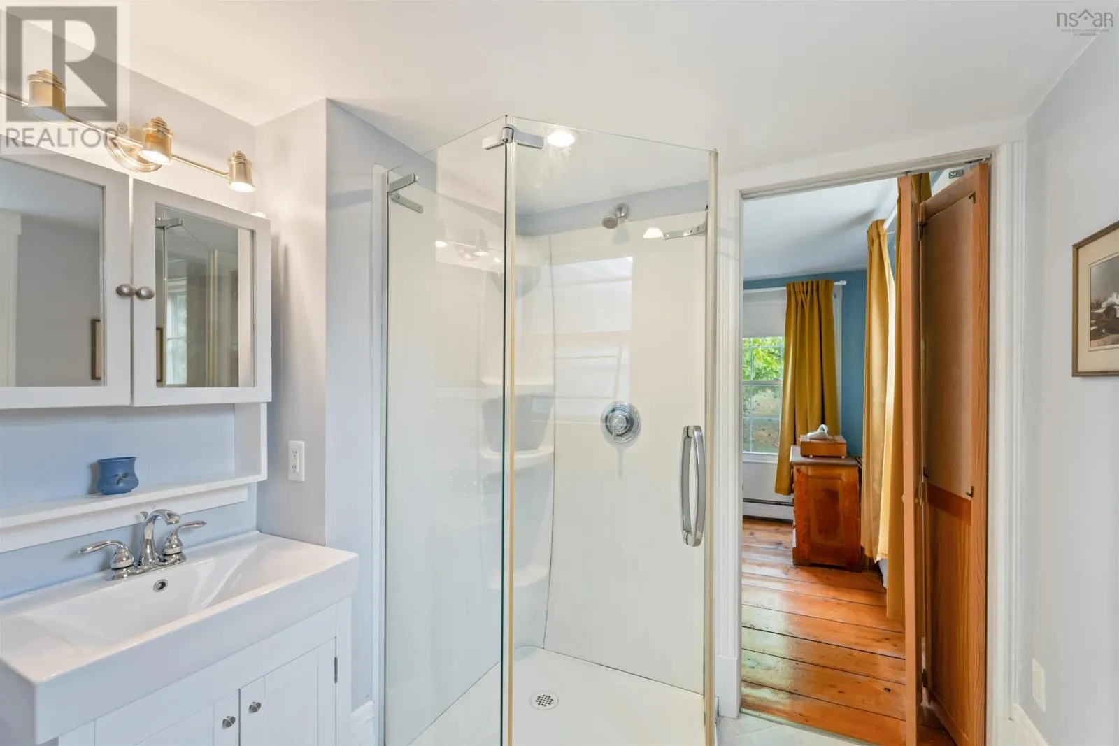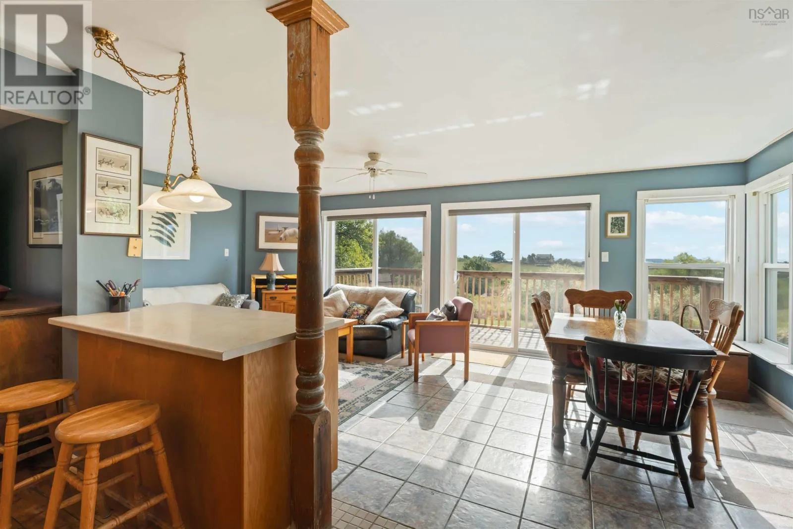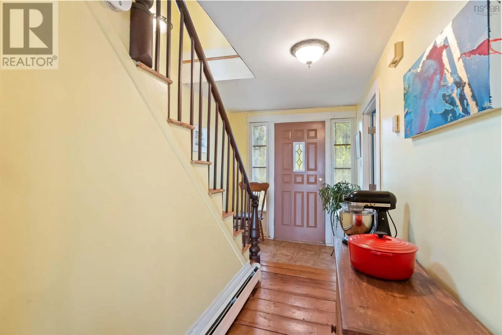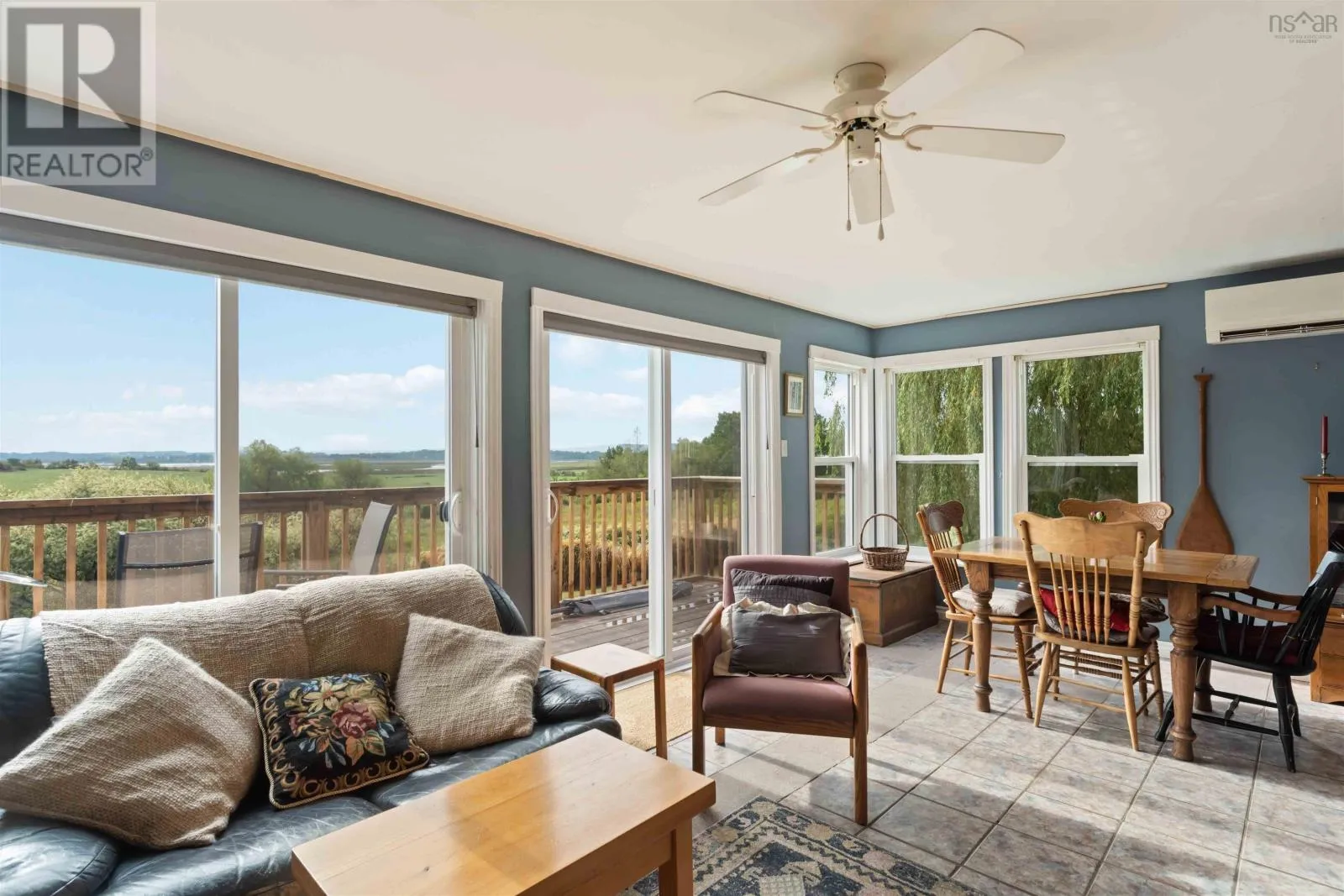 Take Exit 7 (Falmouth), turn right onto Hwy 1 W, property on right, see sign. For those who appreciate historic charm and modern convenience, this property is ideal. Built in Port Williams around 1855, it was relocated to Falmouth in the year 2000, where it was upgraded and restored, incorporating a new foundation. The property retains its original character boasting wide plank floors and a stunning oak kitchen, while also offering breathtaking views of the Avon River through large south facing windows or relaxing on the deck. With the option of a primary bedroom on either the upper or main level, two bathrooms, a two-car garage, and a self contained granny suite downstairs, this home is perfect for those seeking flexibility and comfort. (id:27476)