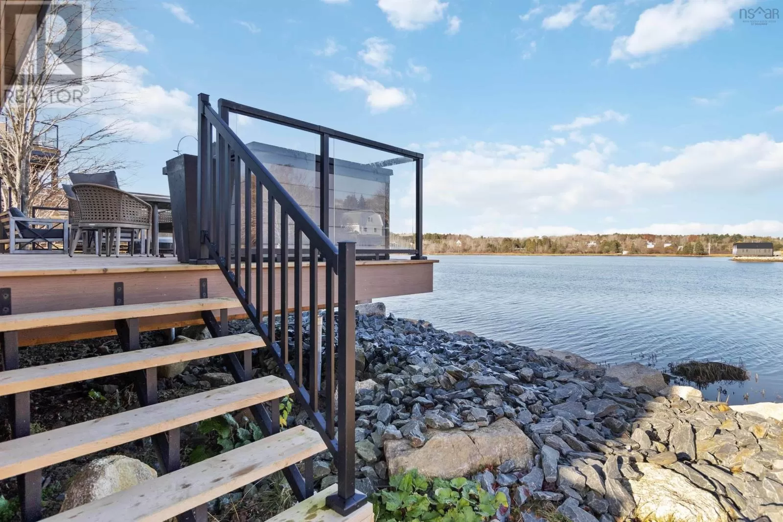 Highway 103 to Blockhouse to Northwest Road to Highway 332 to Masons Beach Road, right at purple lighthouse. Third unit on the right. OCEANFRONT 1 Bedroom + Den, 2 full bathroom with a ROOFTOP deck in a prime location just 5 minutes to the UNESCO heritage town of Lunenburg! Enjoys stunning views from both a roof top deck with panoramic water views and from a private waterfront deck with easy access to the main living area and kitchen. Inside, this new home is complimented by beautiful finishes and high ceilings, while capturing scenes of sparkling ocean waters. The new and modern interior combined with a low maintenance exterior ensure worry free and low-maintenance living for years to come! This condo development offers a unique opportunity to own your own turnkey, little piece of oceanfront paradise at an affordable price point. Modern amenities and a low-maintenance lifestyle. Condo fees include - use of common dock & boat launch, snow removal, common area maintenance, water & septic systems for $125/month. Great for snowbirds, or someone wanting a 4 season cottage with income potential, or enjoy it yourself 365 days of the year. Interior and exterior furnishing are available for purchase above and beyond the purchase price. This is your opportunity to be in a prime location and also take in spectacular evening sunsets from this unit's incredible west facing deck! (id:27476)