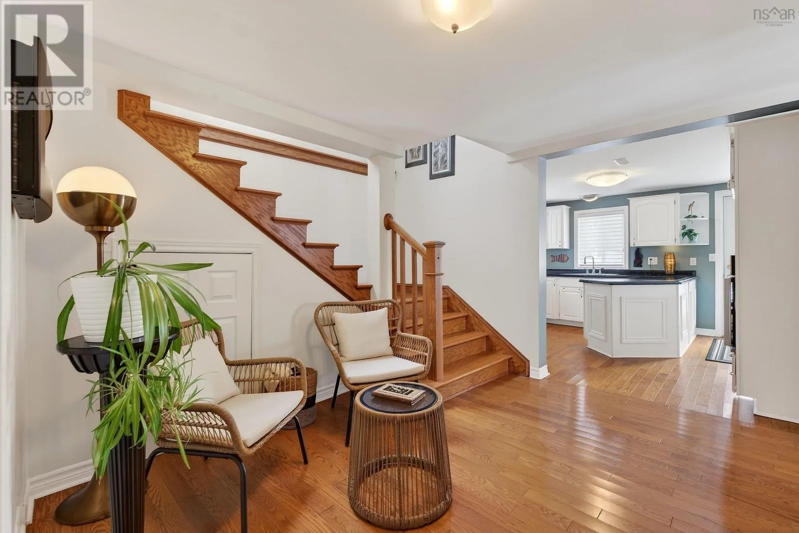 Highway 2 from Fall River. Property on the right Imagine watching the sun set over Fletchers Lake as the water settles below. The kind of view that sticks with you. This extensively renovated and beautifully maintained two storey home is perfectly positioned to make the most of its surroundings. Inside, the bright main level flows flawlessly from the dining space to the living room and out through patio doors to a sheltered stone terrace. The perfect spot for gathering with friends or stretching out on warm summer evenings. Upstairs, a sun filled common area opens up to your second storey balcony, looking straight across the lake, creating the perfect living space to unwind alongside three comfortable bedrooms and full bathroom. Hardwood floors run throughout the home, and year round comfort is covered with a forced air furnace and multiple heat pumps. Outside, landscaped stone terraces and mature perennial gardens frame the property, with access to Fletchers Lake making kayaking, canoeing, and swimming part of everyday life. The location is hard to beat, tucked quietly into the community, commutable to downtown and minutes from Grand Lake, Oakfield Park, nearby trails, golf courses, and quick access to major highways including the new Aerotech Connector. From the moment you pull into the driveway, you will quickly realize that this home is truly something special. ** Upgrades in the last 5 years include - hardwood flooring on the upper level, upper balcony replacement, new pressure tank, convection oven, exterior of shed and house repainted, full interior painting, main level heat pump head, Hunter Douglas blinds in living room, kitchen, and upper patio. (id:27476)