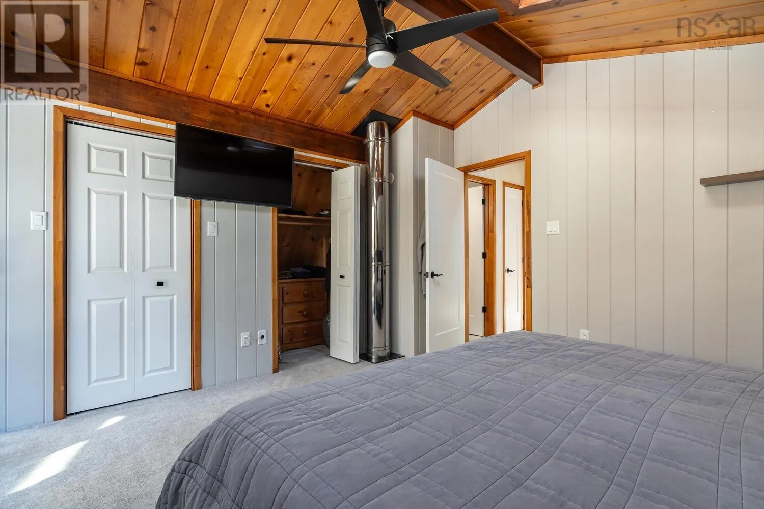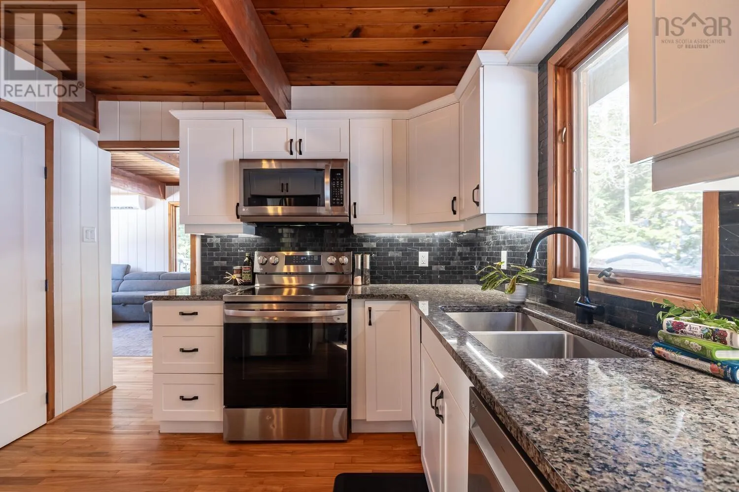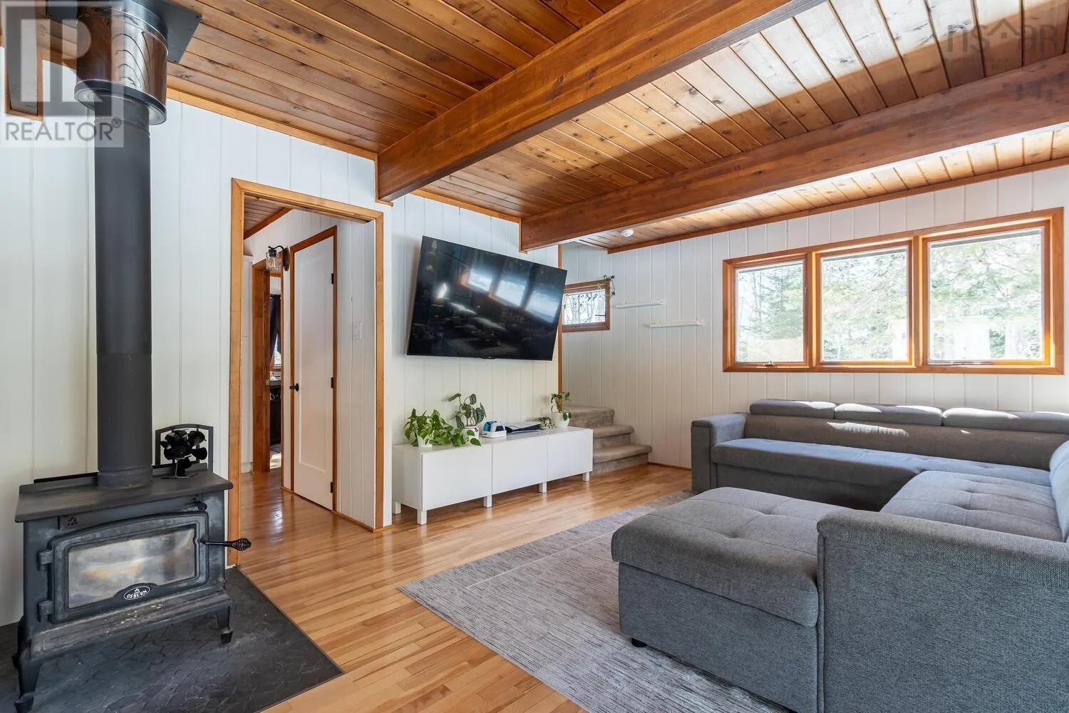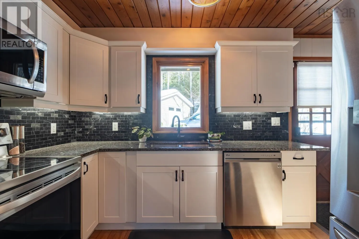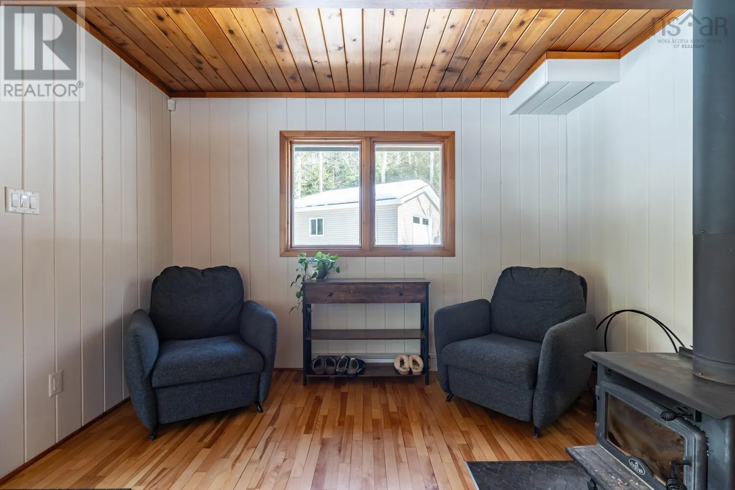 Fridge, stove, washer, dryer, dishwasher. Welcome to your private retreat! This two story chalet style home sitting sheltered amongst mature trees surrounding the home for total privacy. Step inside to find modern interior updates. The main level has a stunning new kitchen featuring new cupboards, granite countertops, a stylish backsplash, and a new sink and faucet, complemented by a newer fridge, stove and dishwasher. Both bathrooms have been updated as well. Cozy up to the wood stove on chilly nights in the living room. Separate dining room, half bath complete the main level. Two bedrooms and a full bath on the 2nd level. Enjoy total seclusion. Relax on the large two-level deck or the private balcony off the primary bedroom, which has two skylights with remote control blinds. In addition to the electric heat there are three ductless heat pumps for heating and cooling. The lower level has a large rec-room and bedroom, laundry utility area and a walk-out entrance. The seller is also offering a $3,000 basement flooring allowance to finish the flooring in the rec-room and bedroom to your taste. New Septic system in 2021. Minutes from Laurie, Oakfield Provincial Parks and HRM's Shubie Park, to enjoy, walks, swimming, boating, or picnic areas. The new highway connects to Exit 5A of Highway 102 a new Aerotech Connector ensures a safer, more efficient commute of just minutes to the airport. A hobbyists dream! The brand-new 20x20 finished detached garage comes equipped with its own electrical panel and a pellet stove for year-round projects. A quick closing is possible. A virtual tour will be available tomorrow. Book your private viewing today. (id:27476)