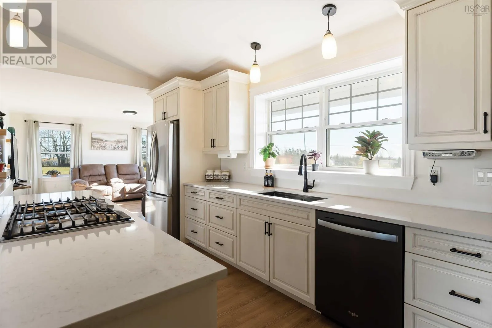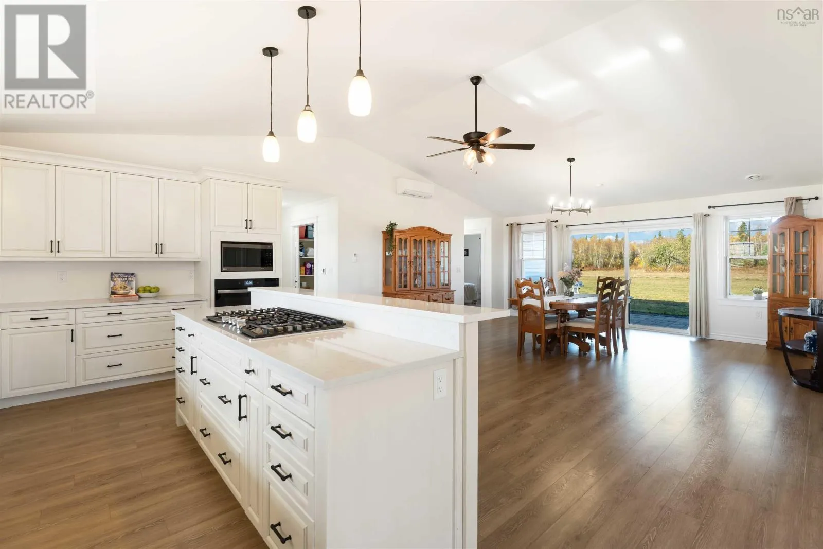 As per your favorite mapping app Welcome to 2313 Davidson Street in Forest Hill, a thoughtfully designed single level home set on 1.5 acres of cleared land on a quiet road. Just 15 minutes from Highway 101 and Wolfville, and 20 minutes from New Minas, this property offers the ideal balance of rural tranquility and convenience. Step through the front entrance into a spacious foyer with generous closet storage, or enter directly from the attached two car garage for added ease. From the garage, double doors open into an impressive 600 square foot workshop or flex space designed with versatility in mind. With its own separate side entrance, this area offers privacy and flexibility for a workspace, studio, games room, home gym, or additional living space. Down the hallway is a versatile bedroom currently used as an office, along with a walk in pantry with sliding door for added storage. Step into the heart of the home, an expansive open concept great room highlighted by 11 foot vaulted ceilings and abundant natural light. The chef style kitchen anchors the space, featuring a propane stove, large island, ample cabinetry, and stunning valley views. The layout flows seamlessly into the great room, offering generous space for everyday living and entertaining, along with an area that could serve as a formal dining space. The primary suite includes a walk in closet and a spa inspired ensuite with double sinks, tiled shower, and walk in bathtub. An additional bedroom and full bathroom sit opposite, with laundry conveniently located off the main living area. Large patio doors open to a private backyard patio overlooking the expansive yard, complete with propane hookup for barbecues. In floor heating throughout, ductless heat pumps, and air exchange system ensure year round comfort. Built on a durable slab with drilled well and septic system, this home is efficient and low maintenance in peaceful Forest Hill. (id:27476)