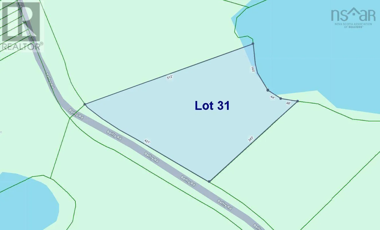Fourshu Road to Belfry Road This lakeside property sits in a sheltered spot on Belfry Lake, Cape Breton, right off the public gravel Belfry Lake Road, which connects to the Atlantic Ocean. The approximately 2.5 Acre lot has been surveyed and is ready for immediate development. It boasts roughly 226 feet of private lakefront. The property is perfectly suited for water activities. You can even install a floating dock. From your own private shoreline, you can launch your paddle board/kayak/canoe, swim, and fish on the expansive lake. Numerous usage options are possible. You can build your dream house on the lot, or, after installing an access road and preparing the building site, initially use it for holiday stays with a tent or RV in the first few years. There is no building obligation. No restrictive covenants exist. The vast Gabarus Wilderness Area is in the immediate vicinity, and the beautiful Belfry Beach can be reached either by kayak/canoe from your private lakefront or on foot via Belfry Lake Road in just a few minutes. This wonderfully expansive beach is perfect for long walks or, of course, swimming. Sydney, with its extensive infrastructure, diverse shopping opportunities, restaurants, medical care and entertainment options, is only about 45 minutes away and easily accessible via well-developed roads. The neighbouring Lot 30 is also available if more land and lakefront is desired. (id:27476)