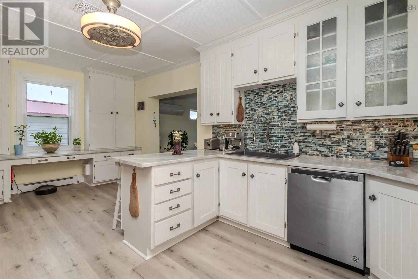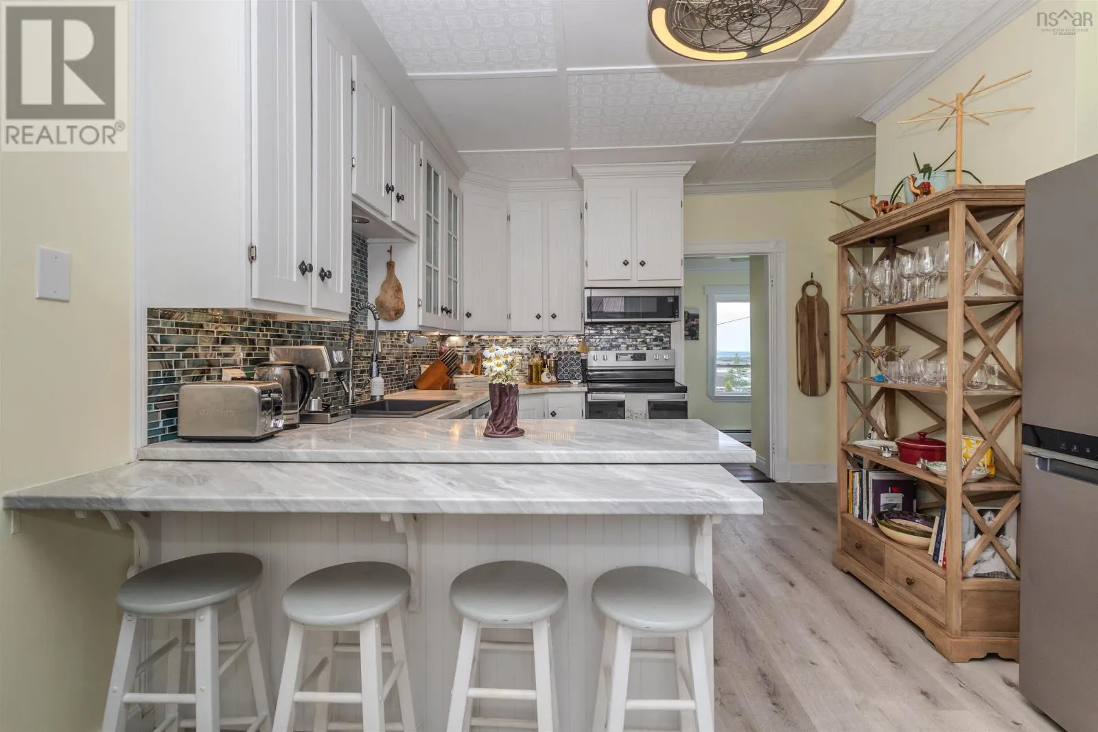 Gabarus Highway to Seaview Drive A mere 40 minutes from the second largest municipality in Nova Scotia, this coastal retreat offers the very best in East Coast lifestyle with the convenience of all the amenities and services available in nearby Sydney; welcome to 36 Seaview Drive in Gabarus! This ocean-front paradise is situated in an idyllic village setting and provides an endless array of recreational possibilities such as hiking, swimming, boating, fishing, bird watching and kayaking. It represents oceanside living at its very best in one of the most picturesque parts of this country! The spectacular house on this waterfront property has more than 100 years of history but has been meticulously and thoughtfully renovated to ensure all the modern comforts without sacrificing any of its original character or charm. The main level includes a spacious open-concept kitchen with stainless steel appliances and exceptional functionality, certain to serve as the family gathering area and entertainment centre. Adjacent is a quaint formal dining room bursting with charm and character. The nearby living room, which offers stunning views of the ocean, has French doors which lead to a room that can be used as an office or a library. This level also features a 2-piece bathroom (with Laundry) and access to front and rear decks. The rear deck delivers mesmerizing views of the water and will likely be your favourite vantage point during the summer. The upper level has a spacious primary bedroom with vaulted ceilings, a 3-piece ensuite bathroom and a balcony that provides yet another breathtaking view of the Atlantic. This level also has an additional bedroom and a bonus room that could be used as an office or closet and an additional 3-piece bathroom.The basement level is made up of a sprawling recreation room that could serve as a guest room as well as a large utility/storage room. The property is perfectly manicured with majestical views from every room. Your private oasis is waiting. (id:27476)