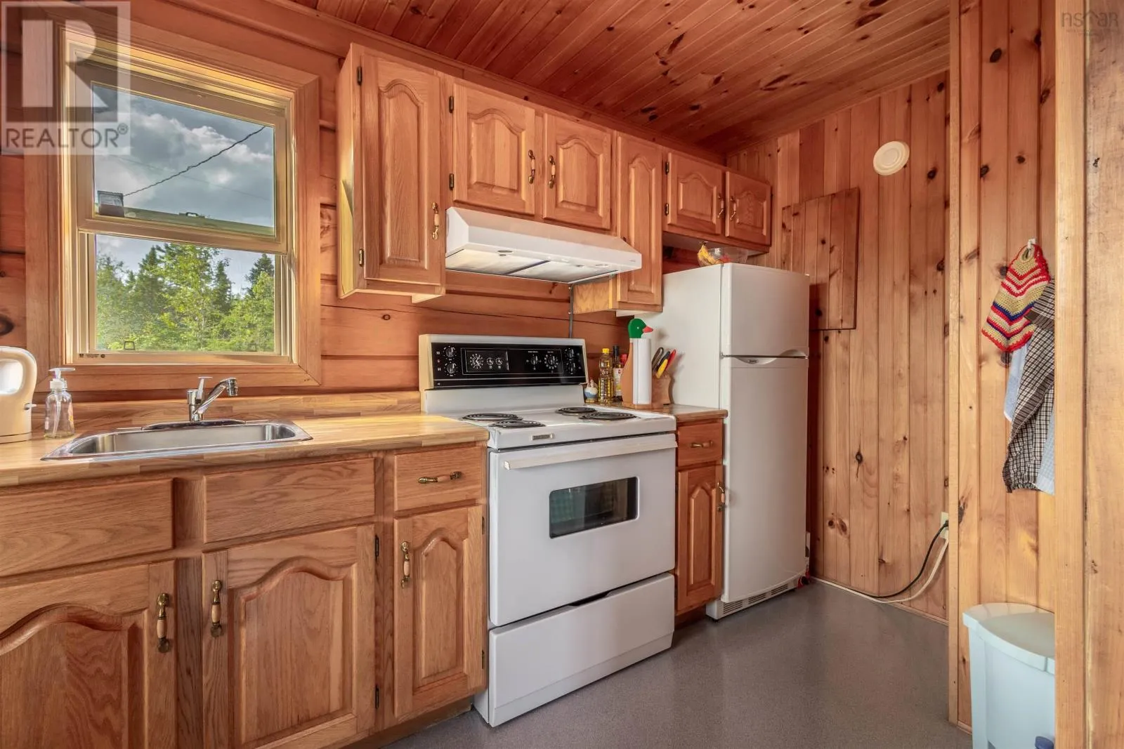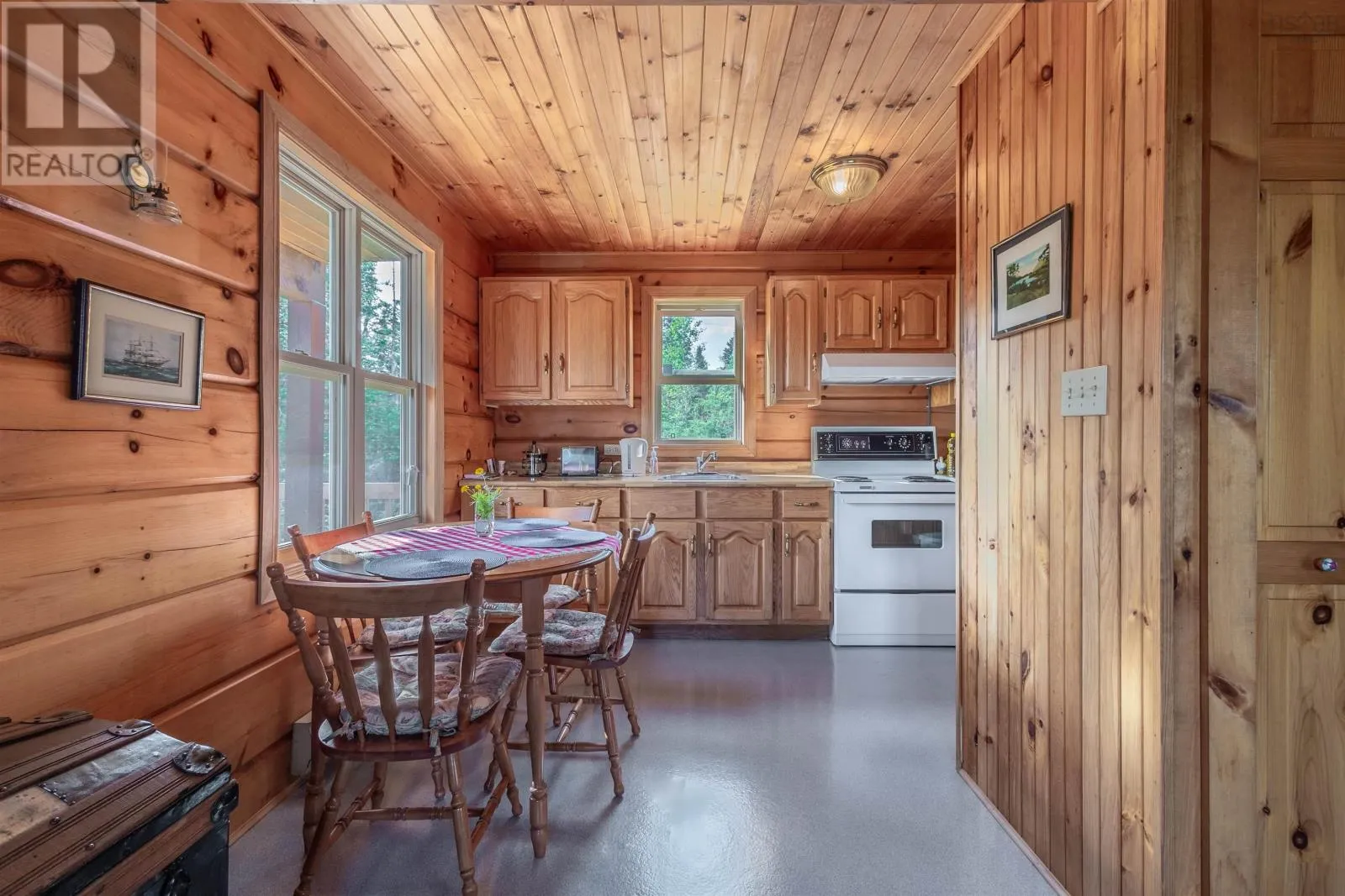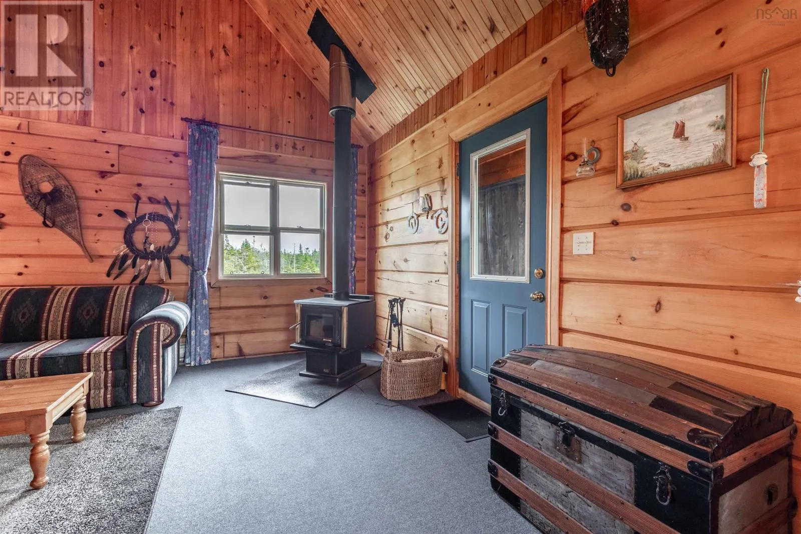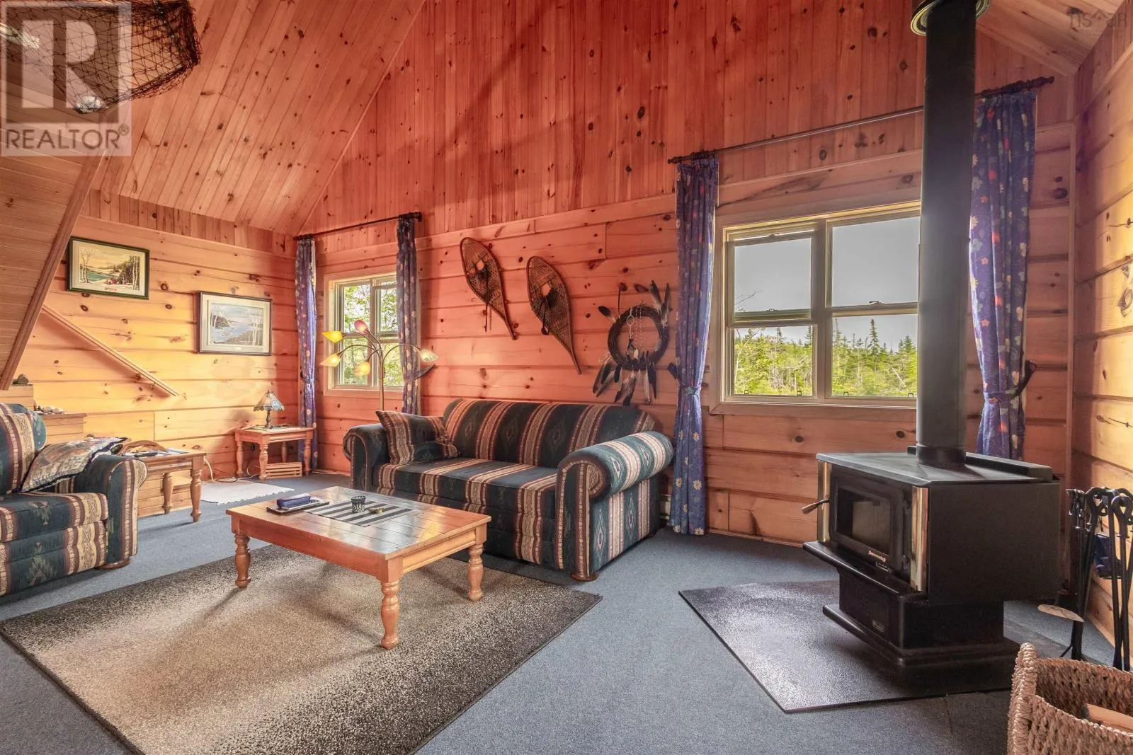 When you get to the Gabarus Cross Road, turn toward Gabarus Village, opposite #8130. WATERFRONT: Discover your ideal retreat - as a year-round residence, a recreational getaway, or a peaceful summer home. This stunning Confederation log home is nestled among 50 acres of private woodlot, with a 60 acre second lot beside it and is included. (two PID numbers) The home has a steel roof, car port, wood stove, and electric heat, well & septic. The home is all natural wood inside, the open concept includes kitchen, bath, living room, and a stairway to second floor loft bedroom. Completely furnished and ready to move right in. Laminate flooring throughout. Ideal location for luxury glamping, or tiny homes located on Gabarus Lake, very private - (500' of waterfront) plus three minute drive to a beautiful sandy beach. International Buyers are welcome- federal foreign buyer restrictions Do Not apply. (id:27476)