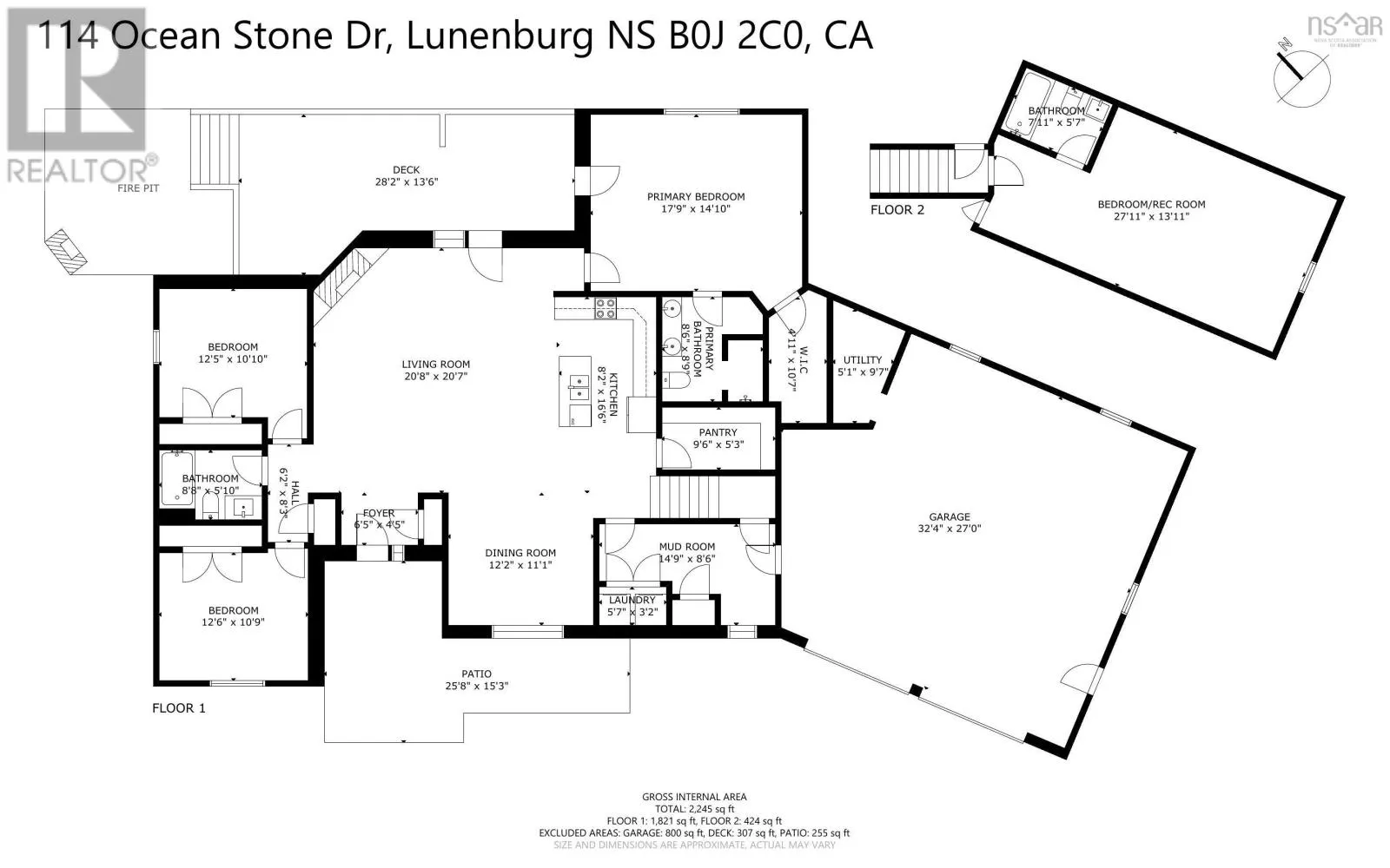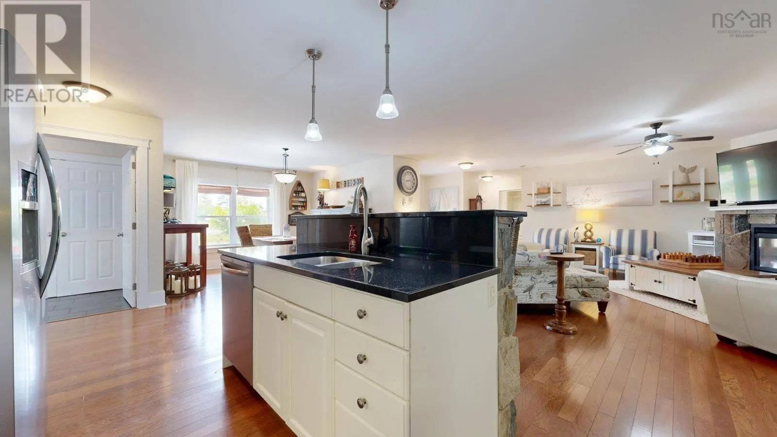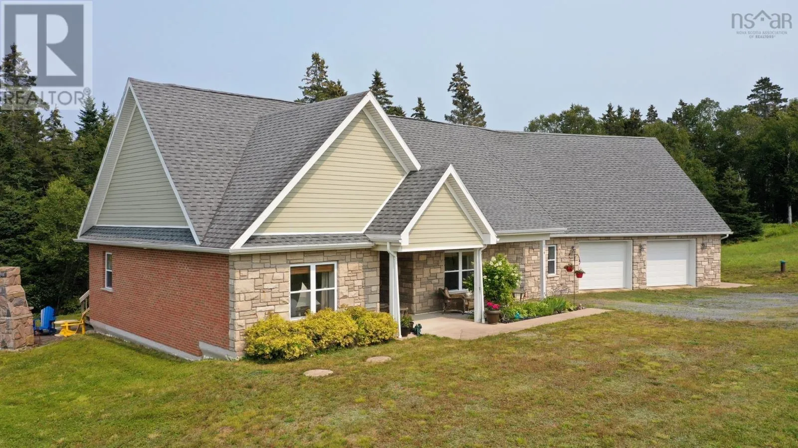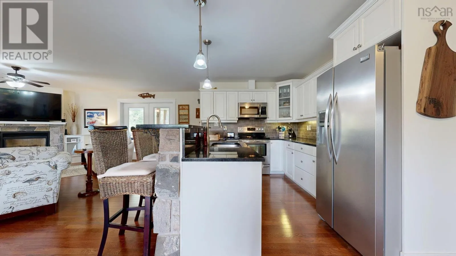 From Hwy 103 Exit 11, head toward Lunenburg, turn right on Hwy 332 towards Blockhouse, follow to Hermans Island Rd, 114 Ocean Stone Dr is on the right. Tucked away on a quiet cul-de-sac, this 2012 ICF constructed executive bungalow will weather any storm. It offers the perfect balance of tranquil living and easy access to all the charm and energy of Unesco World Heritage Town of Lunenburg with its galleries, restaurants, cafes and its vibrant wharf. Whether youre looking to retire in comfort, welcome visitors, or raise a growing family, this home offers space, style, and flexibility. Rum Point Community Association also offers tennis courts and an access point to the ocean to drop in your kayak! The home's open-concept layout features hardwood floors and a seamless flow between living, dining, and the kitchen with its granite countertops and stone bar make it wonderful for socializing. Patio doors lead to a large covered deck and stone fire pit perfect for relaxing with a peekaboo view of the ocean. The spacious primary suite features a large walk-in closet and ensuite bathroom and at the opposite end of the home, you'll find two additional bedrooms and a bathroom. Upstairs is a large 4th bedroom or family room with its own full bath ideal for an office, gym, or guest retreat. Conveniently the mudroom/laundry room connects to the 800 sq ft double garage. Peaceful living that feels miles away, yet close to everything you need. (id:27476)