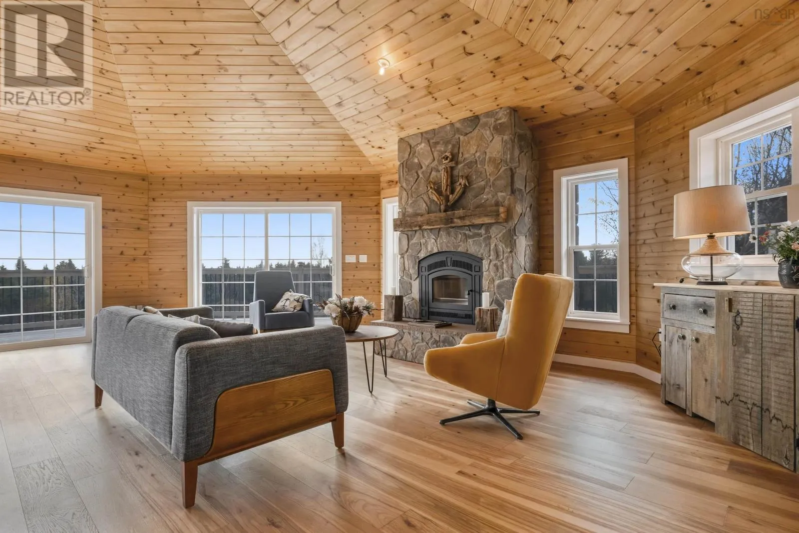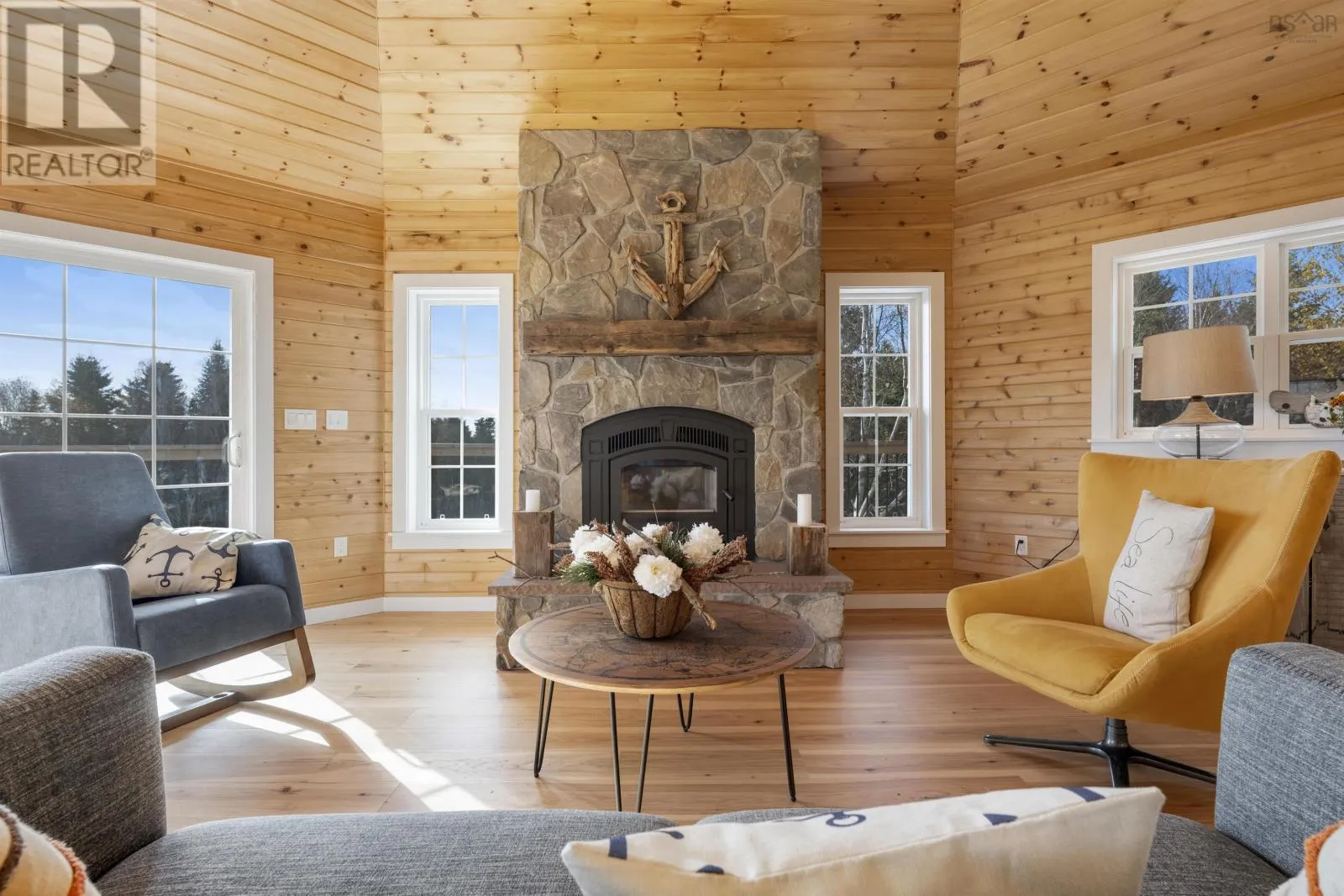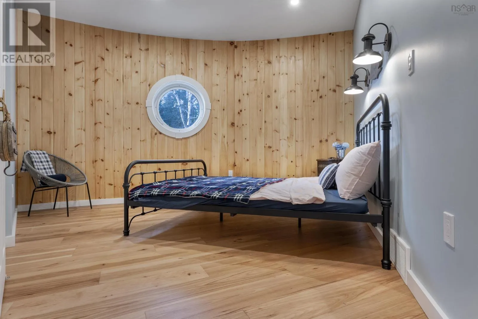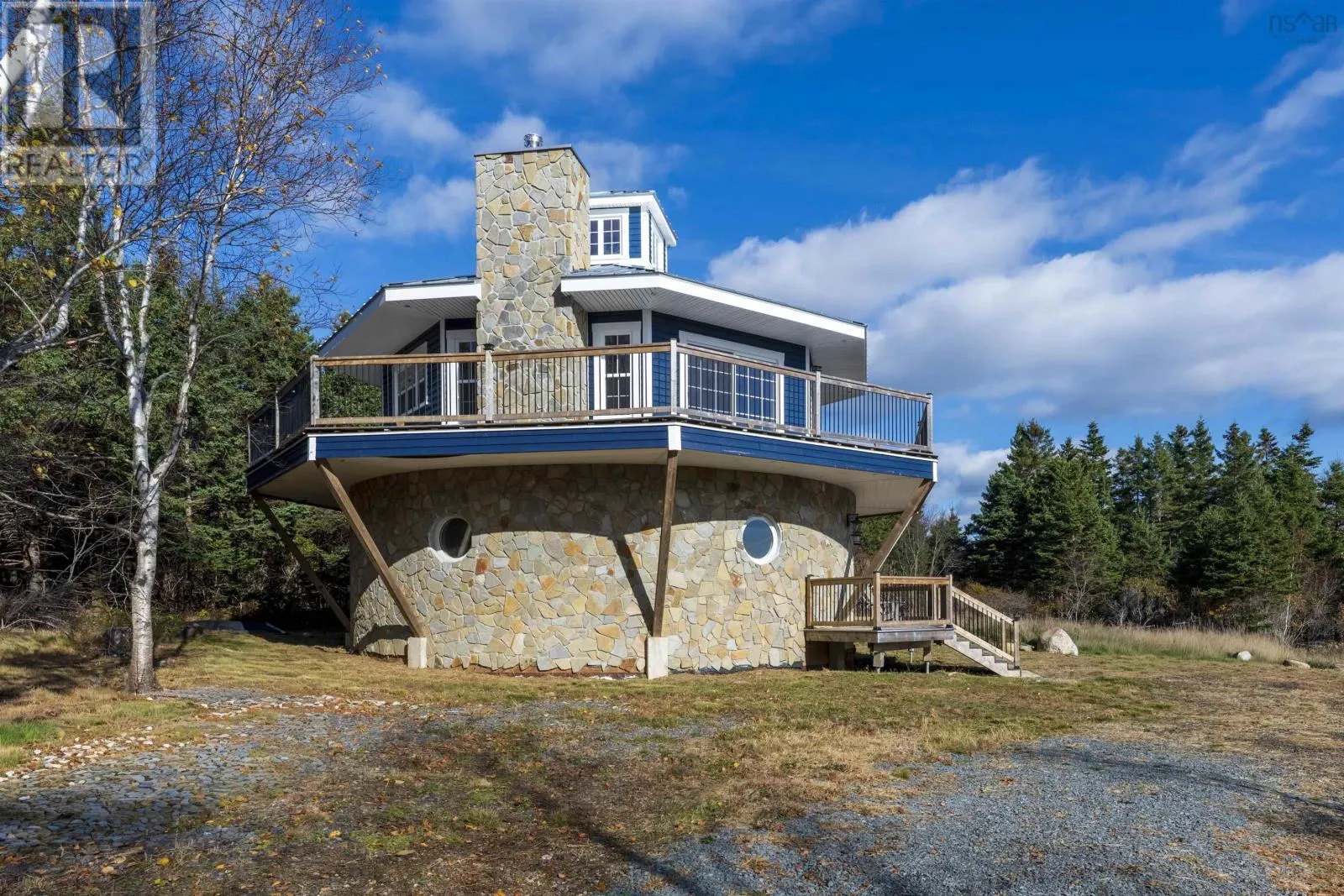 Take Blue Rocks Road from Lunenburg, then turn right on Rye Hill Road. All bright and new, the Blue Lighthouse of Garden Lots is ready to extend a welcome. Not yet lived in, but equipped with everything needed for a good life, this one of a kind home is very suitable for the recreation of body and soul. We imagine creative minds thriving here, as nothing is ordinary or boring. The super solid ICF round structure allows for energy efficiency, good air flow, and for the thoughts to change direction. Everything pleases the senses, from the materials used to build and finish, to the comfort of ducted heating and cooling, and the wonderful, large fireplace. The levels are switched, so the space to spend waking hours is up in the sky, overlooking the treetops, catching a glimpse of the ocean. While the sleeping and bathing quarters are on the main level. The neighbourhood is quiet and upscale with large lots for privacy and protective covenants in place. There is a shared right of way to the shore - a short, walkable path that makes it easy to bring a kayak or small row boat to the beach. This is the perfect place to unwind, while working remotely, without becoming disconnected from the happenings in the Town of Lunenburg, just five minutes away. (id:27476)