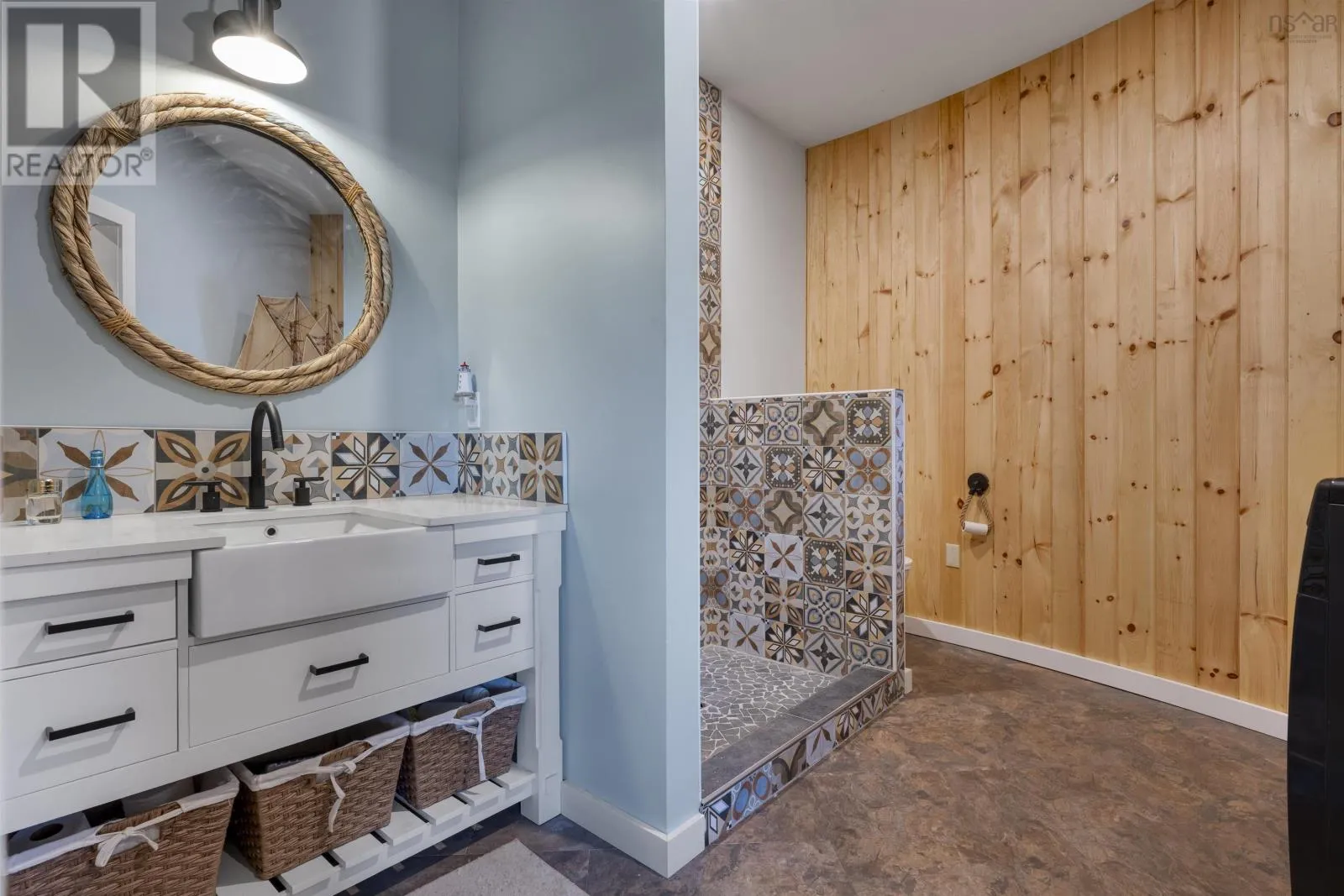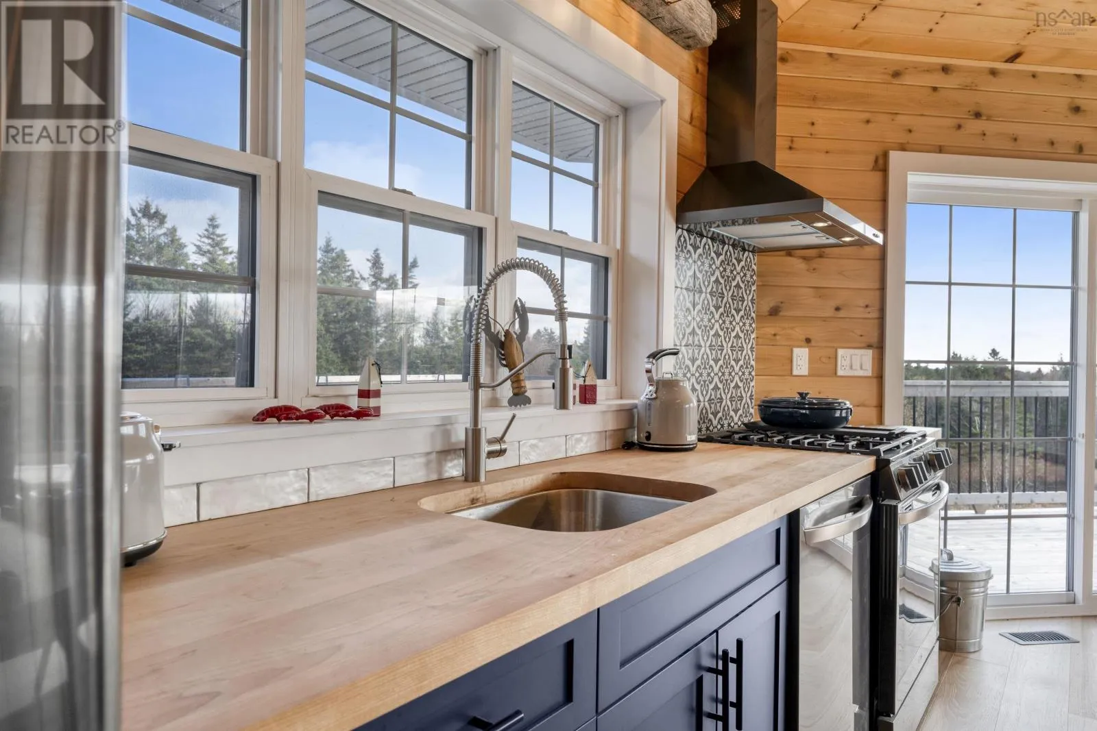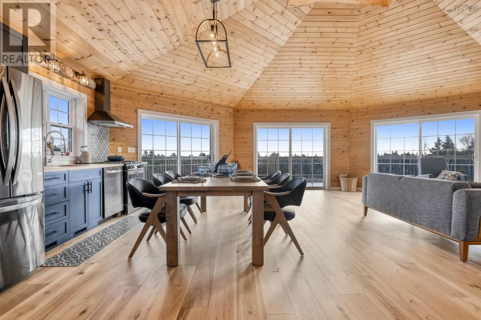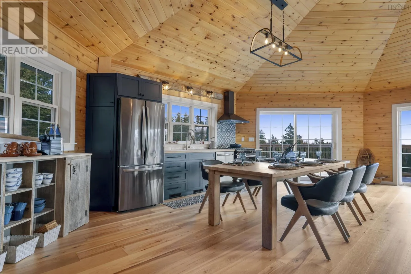 Take Blue Rocks Road from Lunenburg, then turn right on Rye Hill Road. All bright and new, the Blue Lighthouse of Garden Lots is ready to extend a welcome. Not yet lived in, but equipped with everything needed for a good life, this one of a kind home is very suitable for the recreation of body and soul. We imagine creative minds thriving here, as nothing is ordinary or boring. The super solid ICF round structure allows for energy efficiency, good air flow, and for the thoughts to change direction. Everything pleases the senses, from the materials used to build and finish, to the comfort of ducted heating and cooling, and the wonderful, large fireplace. The levels are switched, so the space to spend waking hours is up in the sky, overlooking the treetops, catching a glimpse of the ocean. While the sleeping and bathing quarters are on the main level. The neighbourhood is quiet and upscale with large lots for privacy and protective covenants in place. There is a shared right of way to the shore - a short, walkable path that makes it easy to bring a kayak or small row boat to the beach. This is the perfect place to unwind, while working remotely, without becoming disconnected from the happenings in the Town of Lunenburg, just five minutes away. (id:27476)