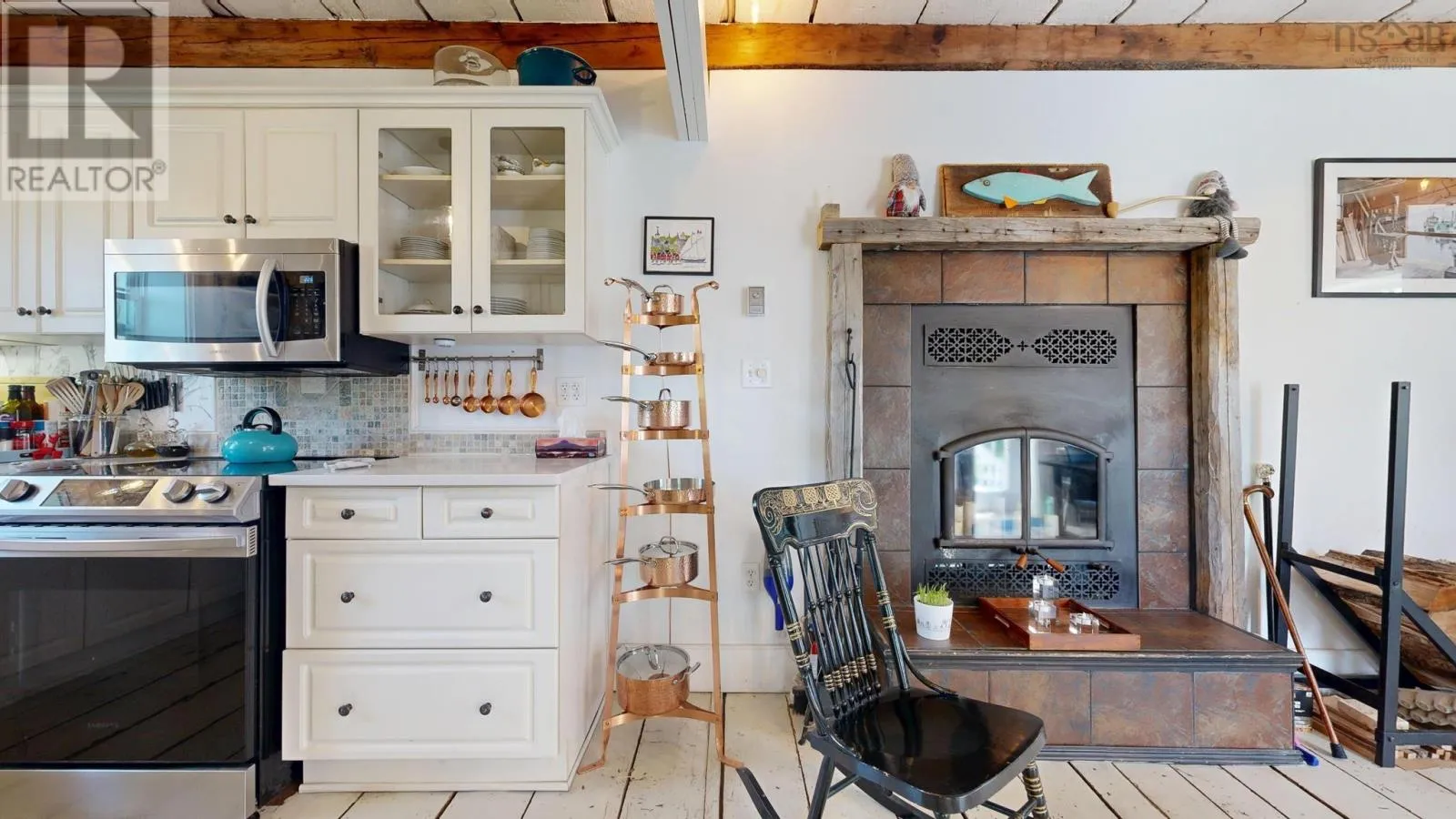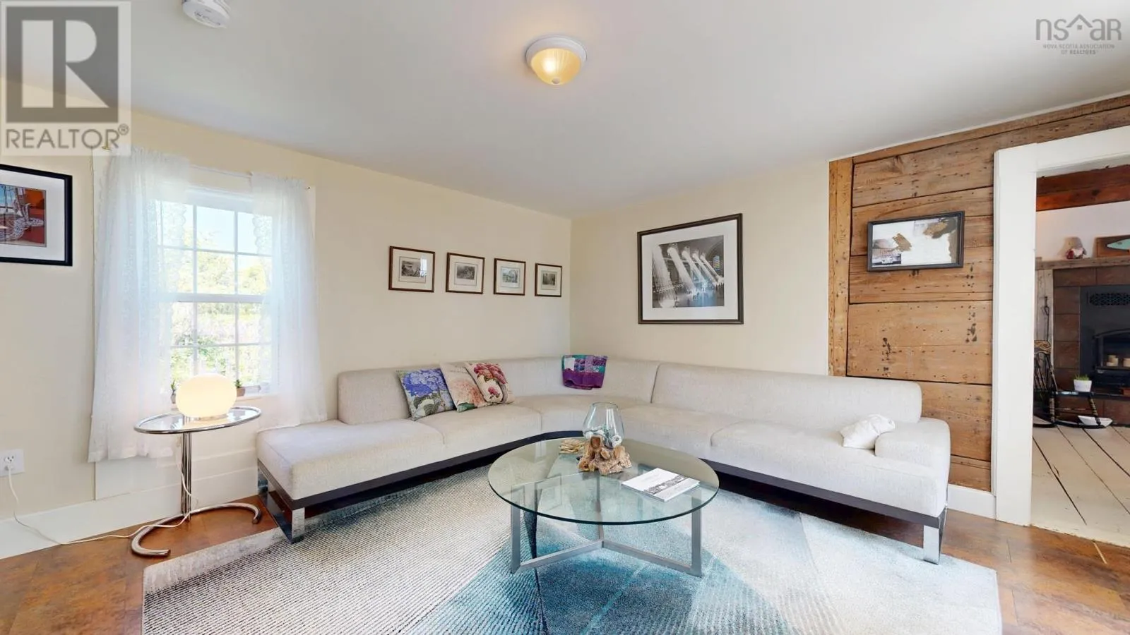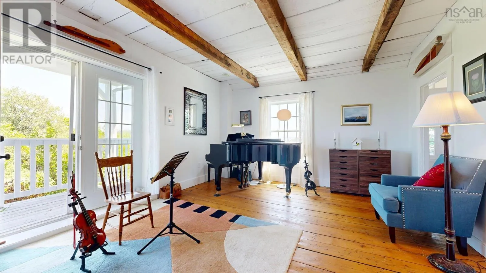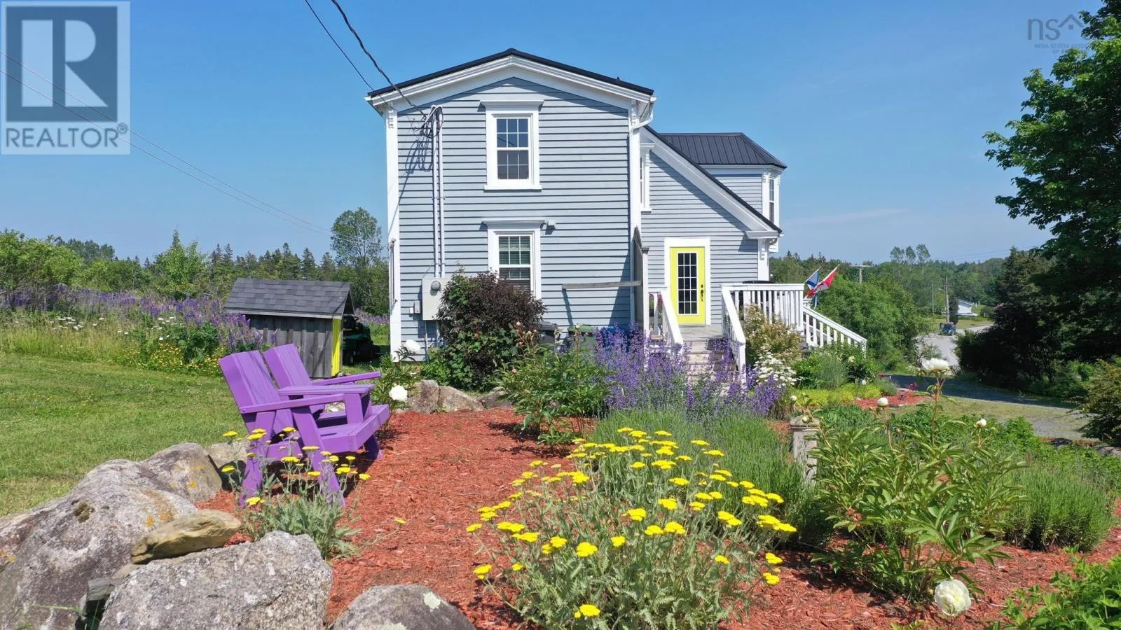 From Lunenburg head towards Blue Rocks Road - House on the left. This beautiful home boasts a rare combination of historic features and modern amenities. Preserved features include random width, wide plank hardwood floors and exposed beams. A painstaking 5-year top-to-bottom restoration was completed in 2012. Features of modern living include 400 amp electric, a multi-zoned, hot water radiant heating system with thermostats in all rooms, all new plumbing, new windows and insulation, metal roof, and full walkout basement with concrete floors and radiant heat. All appliances were purchased in 2021. A new septic field on the east side of property was installed in Spring 2024. The interior of this 260-year-old farmhouse is flooded with brilliant natural light thanks to its perfect southerly aspect elevated above the road and facing the Atlantic Ocean across tidal marshes. Windows on all sides ensure summer breezes and plenty of sunshine. Enjoy the main living area with master bedroom and recently renovated ensuite tucked privately into the back corner of the house. Next to the primary bedroom, there is a large room with French doors opening to a side deck and gardens, currently used as a music room, but with endless possibilities. Primary bath renovated in 2024 new walk-in shower, vanity with pure white marble top. New electric heater was installed Feb 2025 (first floor and basement have in-floor radiant heat and second floor has baseboard heat) to preserve the beautiful, beamed ceilings. There are three outbuildings on this property - Shed and greenhouse in South corner, with new floor in greenhouse in 2024. The main floor also boasts a pretty country kitchen open to a large dining area with wood-burning fireplace. Adjoining is a sunny living room and a handy main floor laundry room with half bath and closet. A unique feature about this great home is the "Heritage Wall", an exposed section of the original exterior wall in the living room showing builders markings and a shadow box with information about its construction. (id:27476)