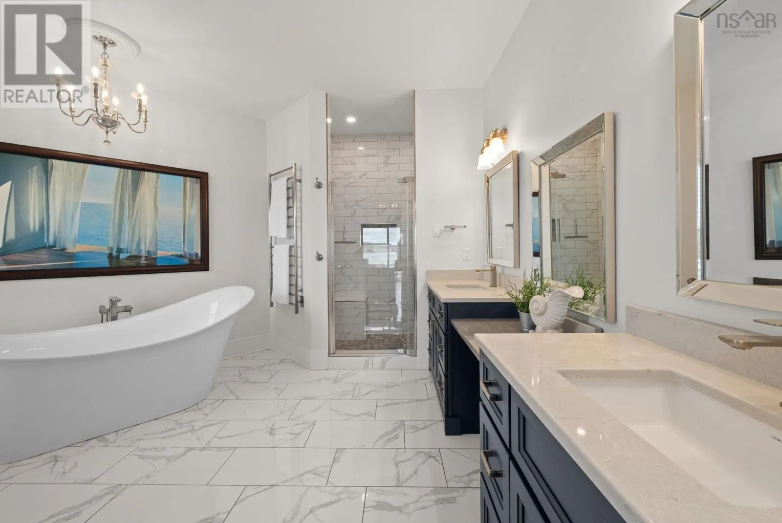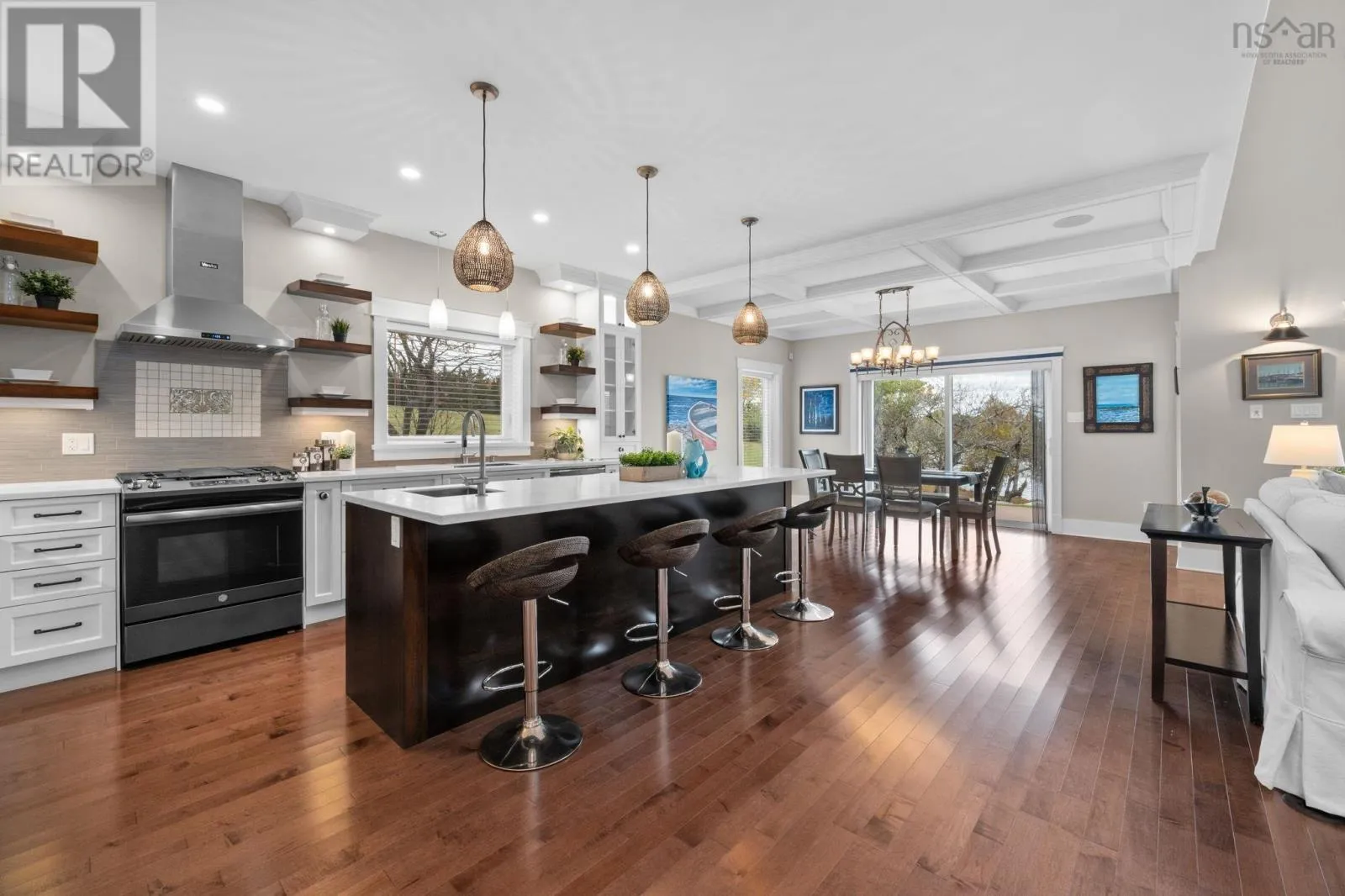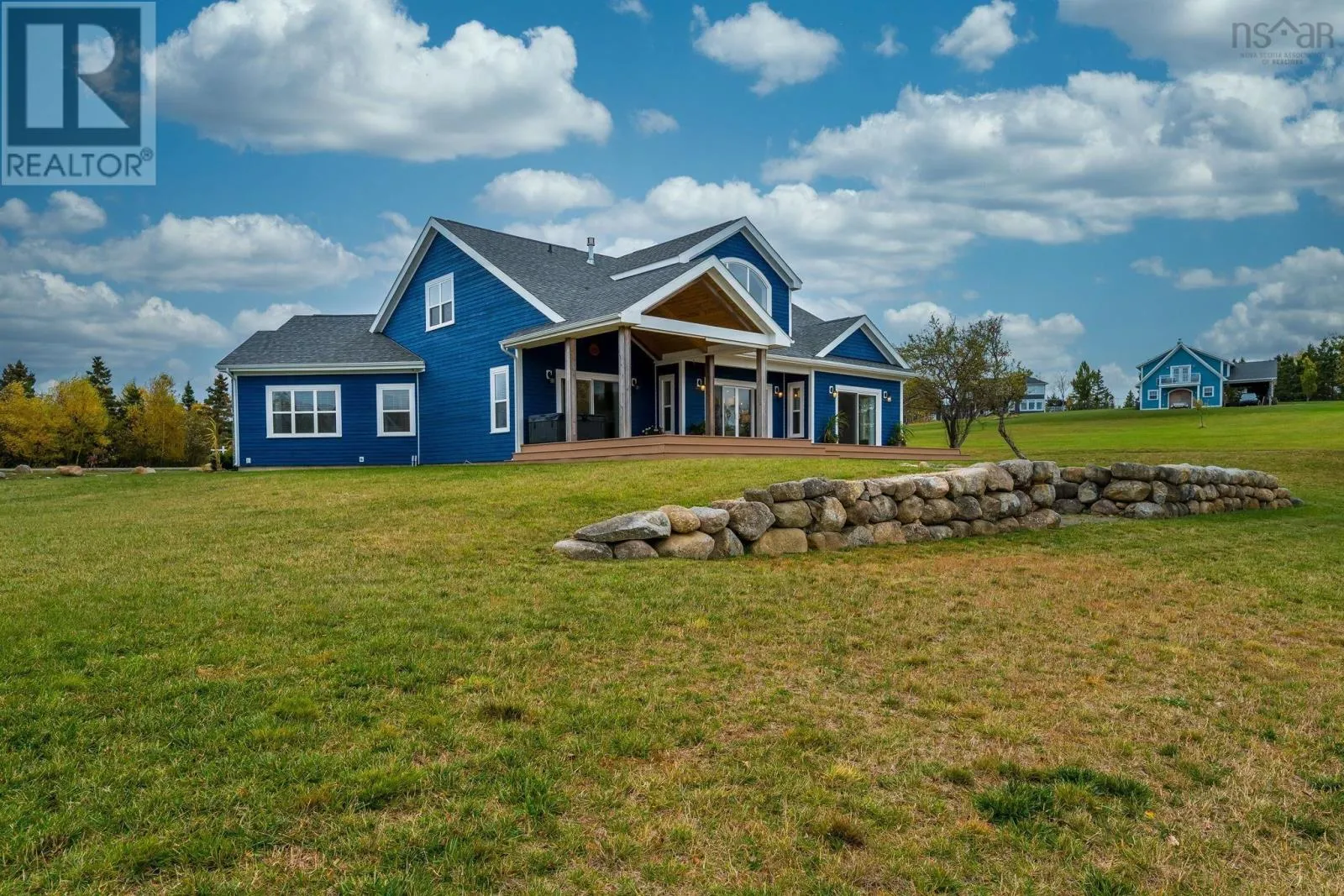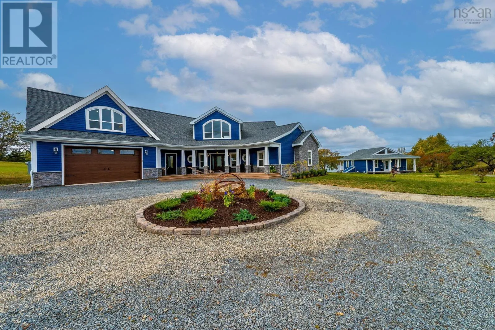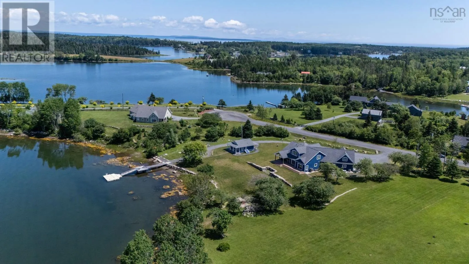 Hwy 103 to exit 12, left hwy 324, Left Blue Rocks Rd, Left Silver Point Rd, Left Ocean Stone, Right Driftwood Crt, house on left. Stunning executive 4-BR, 3 1/2 bath home with vaulted ceiling, + cottage. Ideally situated on 394 ft of oceanfront property. Designed to maximize water views it offers a seamless blend of modern convenience and costal charm. Lg open kitchen, floor to ceiling cabinets, Corian countertops, island with prep sink & seats for 4, gas range with hood, walk-in pantry. Other main floor rooms include: open concept dining & living areas with gas fireplace; an expansive primary suit; 2nd BR; main bath with in floor heat; laundry; 2PC bath. HW stairs to the 2nd level catwalk leading to 3 & 4th BR; 3rd bath, massive games room with wet bar and space for an office. Other property features: 1 BR cottage; pier with floating dock. See features sheet for more details including Russ whole-home sound system and whole home generator. (id:27476)