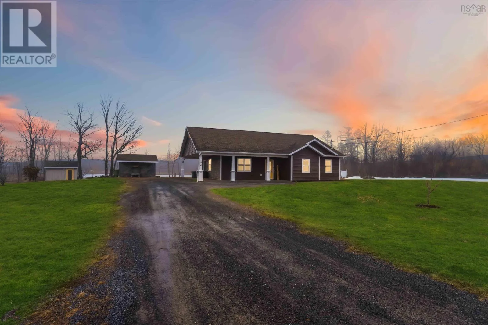 Use GPS Welcome to 1476 Highway 360, a thoughtfully designed slab-on-grade home set on 1.4 acres of peaceful countryside backing onto a beautiful pond. This highly desirable style of build offers easy, one-level living with no stairs, making it both practical and comfortable for years to come. The property is perfectly set up for enjoying the outdoors, with plenty of space for gardens, recreation, and summer hosting, complemented by three generously sized outbuildings that provide endless options for storage, hobbies, or workshop space. Inside, youll find a well-appointed layout featuring three spacious bedrooms and two bathrooms, including a massive primary suite complete with its own ensuite. The living room showcases vaulted ceilings, creating an open and airy feel, while custom cabinetry throughout the home adds both style and functionality. Built just 11 years ago, this home offers modern construction with a warm, inviting atmosphere, along with covered patio areas on both the front and sideperfect for relaxing or entertaining rain or shine. Ideally located just two minutes from the charming seaside village of Harbourville along the Bay of Fundy and only five minutes to Berwicks amenities and quick access to Highway 101, this property blends rural tranquility with convenience in one exceptional package. (id:27476)