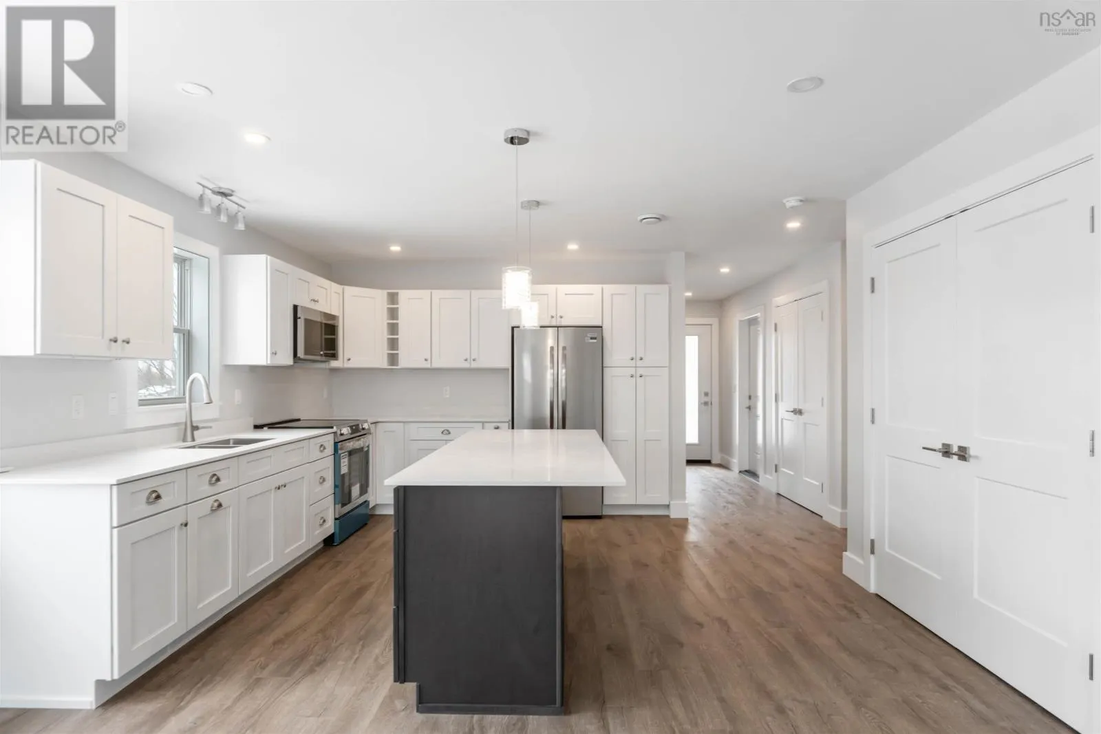 Hwy 1 Garlands Crossing to Tongue Hill, to Pemberton Avenue. H E L L O first time home buyers and those looking to downsize... Welcome to 36 Pemberton Avenue! This brand new home is ready for its new owner! Offering LUX Home Warranty, top quality finishes, new kitchen appliances, 2 bedrooms, 2 baths, attached garage and perfectly situated at the end of a private cul-de-sac. This single-level home boasts elegant vinyl plank flooring throughout and an open-concept design highlighted by stunning quartz countertops in the kitchen. The spacious sunroom provides the perfect spot to relax, with direct access to the back deck featuring a privacy wall - ideal for outdoor gatherings or peaceful mornings. With a heat pump for year-round comfort and convenience. Freshly paved driveway, landscaped yard, municipal services, county taxes, close to Highway 101 and amenities in Windsor, Halifax and New Minas makes this home truly a must to view. Dont miss out on the opportunity to enjoy serene living in this thoughtfully designed space! Call your agent to book your private viewing. (id:27476)