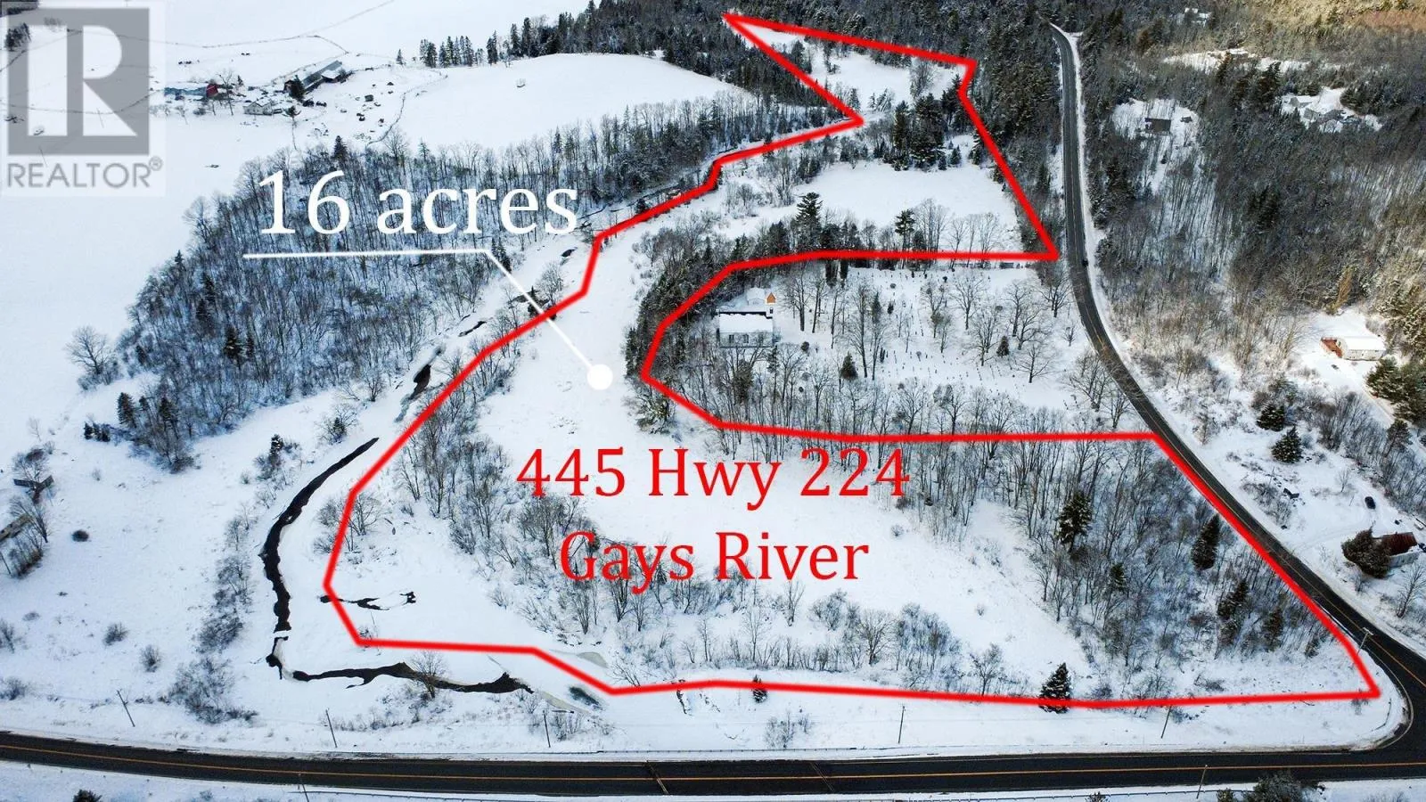 Exit 8A off Hwy 102, at the roundabout, take the third exit to Highway 2, Right on Hwy 277, 1.7 km, turn left on Dutch Settlement Road, continue about 12 kms to where it turns into Highway 224, turn left after the bridge to Civic 455. Just past the United Church. This exceptional 16.42-acre parcel offers an impressive 2,600 feet of frontage on Gays River, blending open pasture with mature trees for privacy and postcard-worthy views. The owners have started the legwork. With a septic design already completed, much of the groundwork is in place to move your plans forward. A garage permit is approved, the garage slab has already been poured, and a shed is on site, adding immediate value and convenience. A gate across the driveway provides security and privacy, with some NS Power poles installed to help simplify future development. The landscape is ideal for a dream home. Enjoy peaceful rural living minutes from Elmsdales amenities, 25 minutes to Truro and approx 40 minutes to Halifax. Private, prepared, and packed with potentialproperties like this dont come along often. (id:27476)