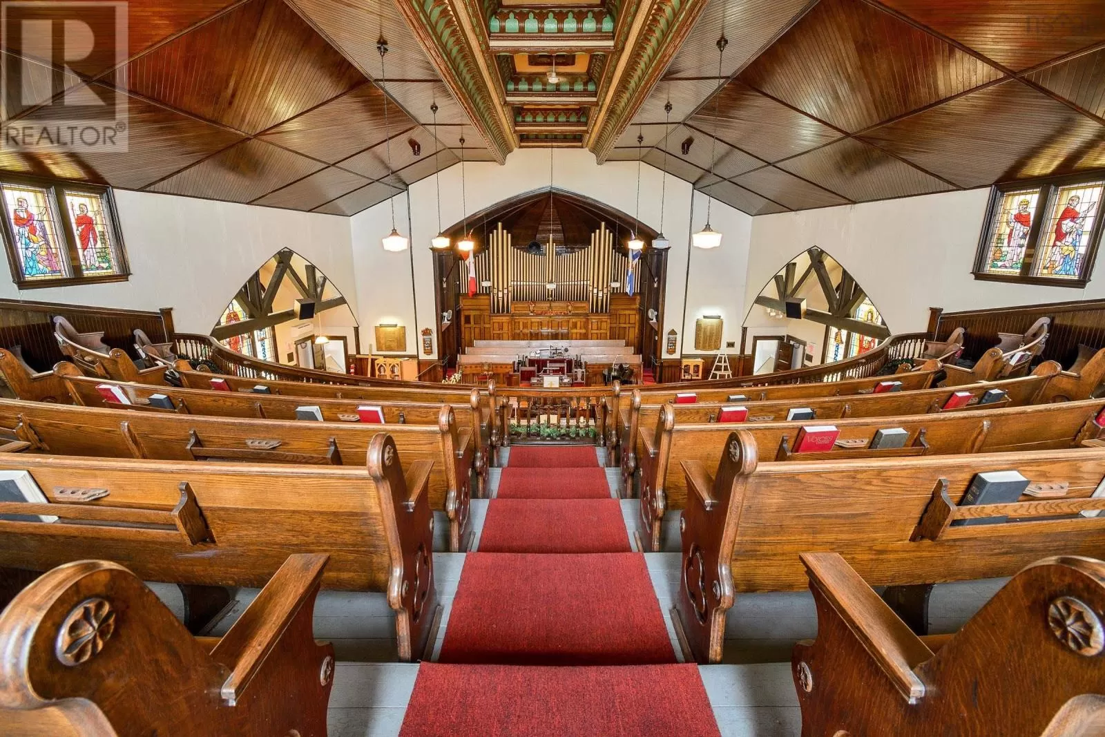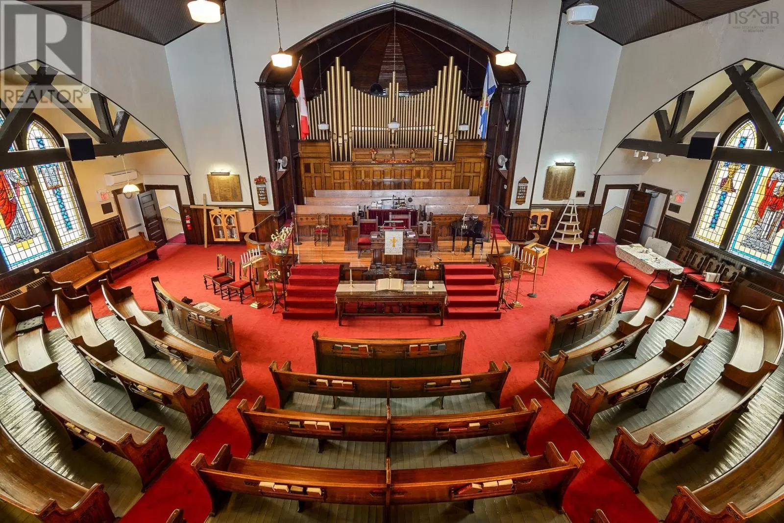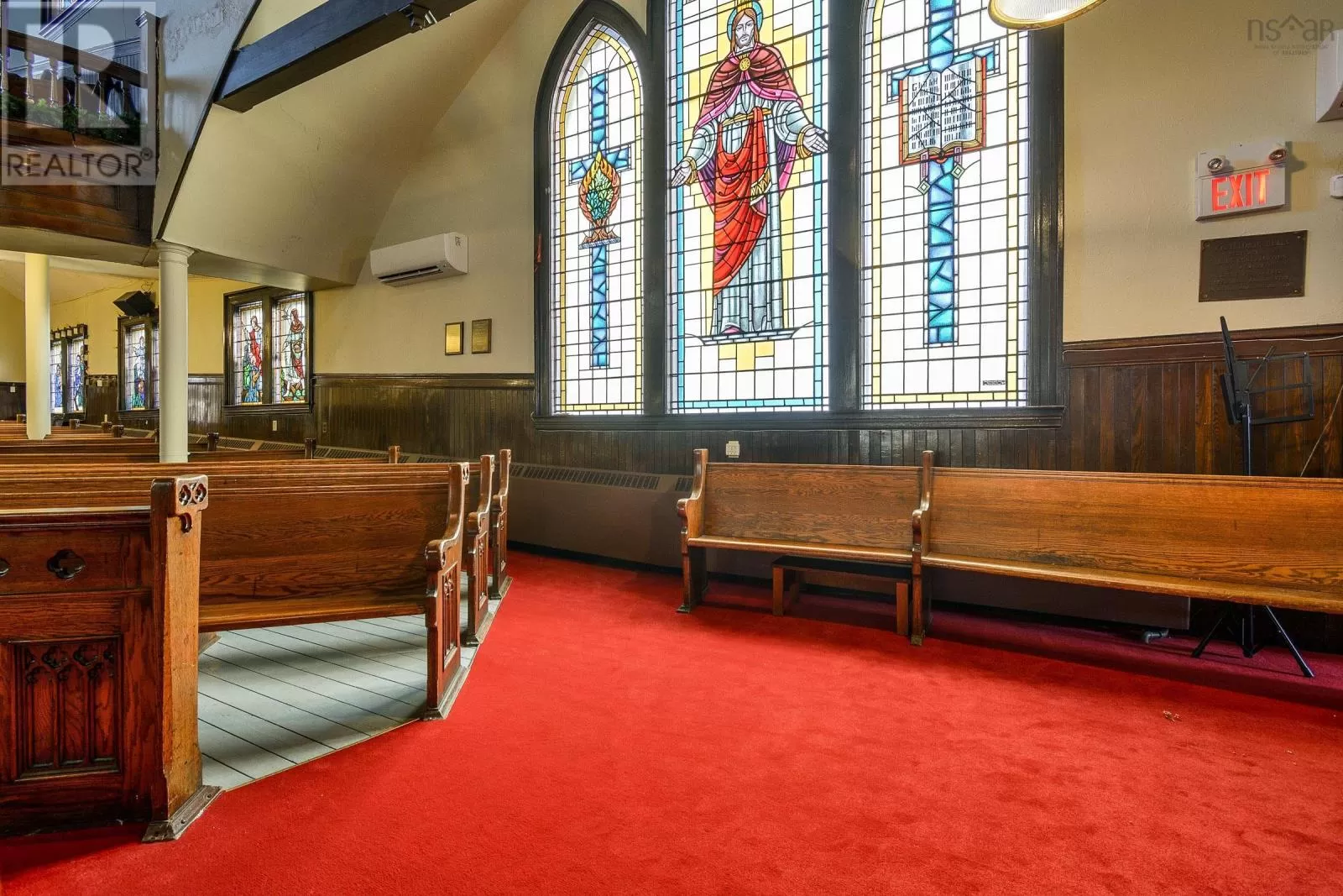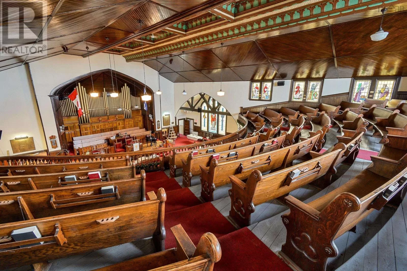 On the corner of Commercial Street and Upper MacLean Street. Stately building in the centre of downtown Glace Bay with many upgrades including a steam furnace that was installed in April 2024, electrical upgrades, steel roof installed in 2016, two heat pumps within the last five years, blown-in insulation in 2019 and carpeting in the upper level in 2017. The lower level has a 47' x 41' hall with a large kitchen, two washrooms and several office spaces. There is also a functioning pipe organ in the building. So many possibilities. (id:27476)