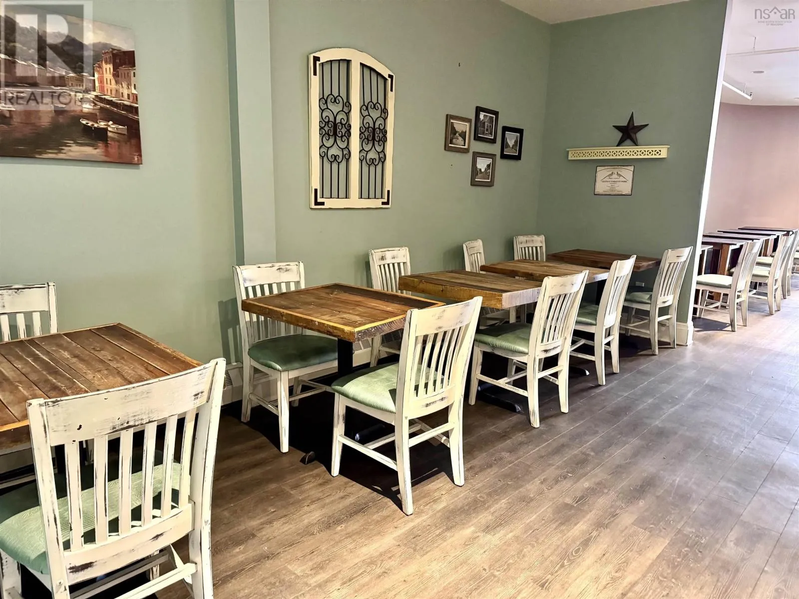 On Commercial St. From Sydney follow the hwy in and thru Reserve, turn left on Union St and right on Commercial Are you a doer or a dreamer? Opportunity is waiting for the right person or group to take the reins and bring this space to life. The space can lend itself to being a restaurant/cafe or maybe a music venue? Formerly a clothing store, then a restaurant -what will it be next! The main floor is wheelchair accessible at Commercial St and there are main floor bathrooms. Much of the inventory from the previous building still remains, ie. tables, chairs, plates etc.. Upstairs is a blank canvas and you could set up a separate entrance and rent out this space. There is a heat pump on the main floor and an oil furnace. Seller is also open to leasing discussions. (id:27476)