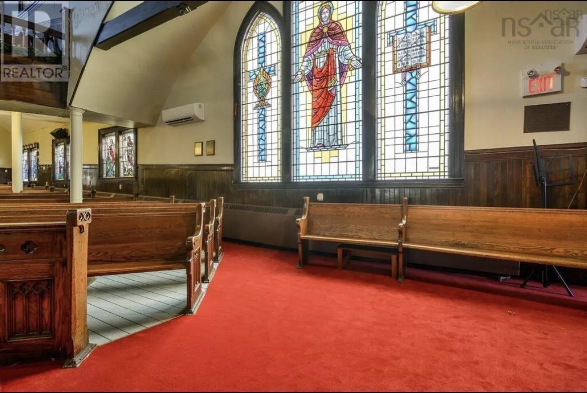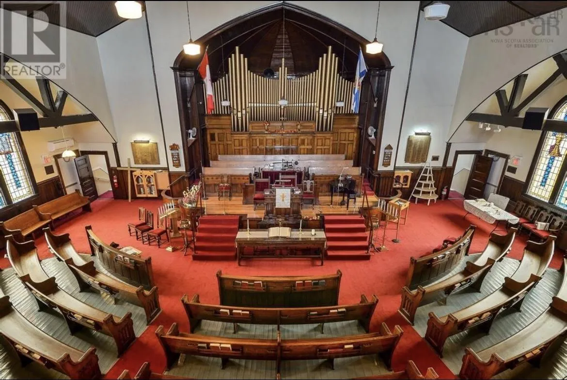 On the corner of Commercial Street and Upper MacLean Street. Stately building in the centre of downtown Glace Bay with many upgrades including a steam furnace that was installed in April 2024, electrical upgrades, steel roof installed in 2016, two heat pumps within the last five years, blown-in insulation in 2019 and carpeting in the upper level in 2017. The lower level has a 47' x 41' hall with a large kitchen, two washrooms and several office spaces. There is also a functioning pipe organ in the building. So many possibilities. (id:27476)