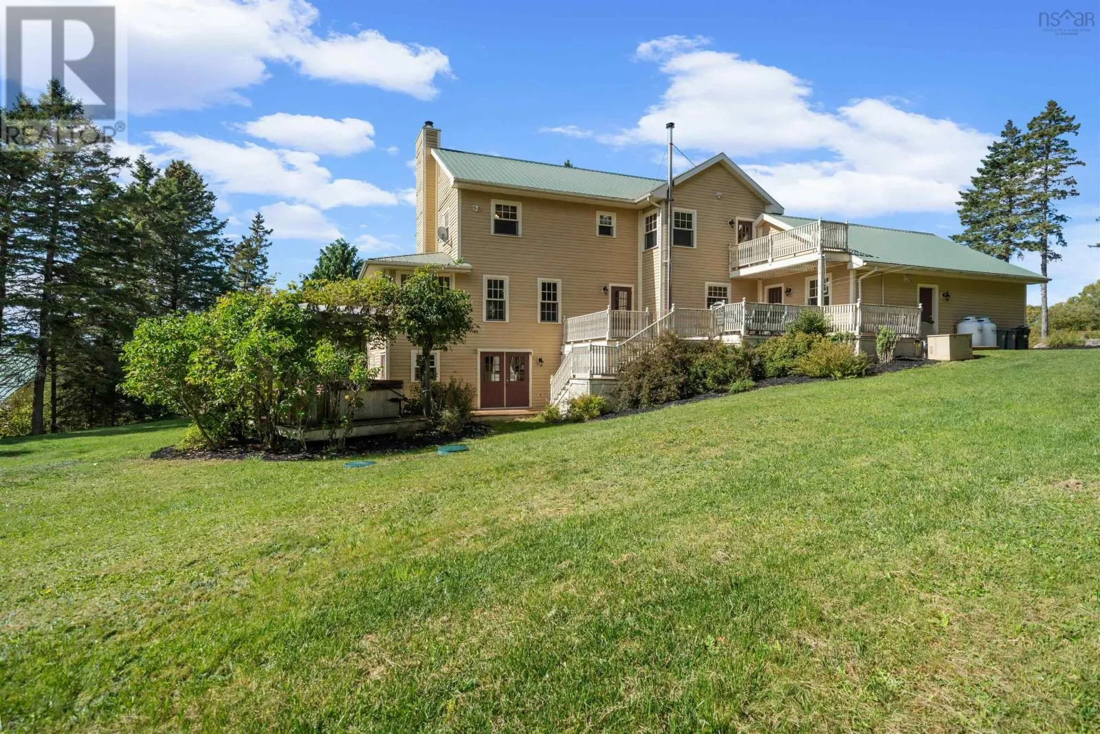 From Peggy's Cove Road, turn right onto Crouchers Point Rd, right again onto Foxberry Hill to civic # 19. Tucked away on over 35,000 square feet of land in the heart of Mariners Anchorage, this warm and welcoming two-level home offers a rare blend of rustic elegance, expansive space, and everyday comfort all just minutes from the waters edge in St. Margarets Bay. Step inside and feel the embrace of natural wood finishes, classic wainscoting, and a volume of space that invites both gathering and quiet retreat. With 3 spacious bedrooms, 3.5 bathrooms, and a flexible office space that easily converts into a 4th bedroom or a second garage bay, this home adapts effortlessly to the rhythm of family life whether you're just starting out, growing, or blending generations under one roof. At its heart is an oversized kitchen and dining area, the kind made for long, slow breakfasts and bustling holiday meals. A commercial-grade R/O water system, walk-in pantry, and propane generator add peace of mind, while thoughtful touches like a wood-burning fireplace in the main living room and a propane fireplace in the primary suite infuse the home with warmth, both literal and atmospheric. Unwind in the sun-drenched solarium, soak in the hot tub under the stars, or sip your morning coffee on the massive covered wraparound veranda, where views of St. Margarets Bay glimmer through the trees and salt air stirs gentle conversation. The ensuite bath and private balcony off the primary suite offer a sanctuary for rest, with ocean breezes as your morning alarm. The property includes a newer septic field, built-in shed, and enough land to let your dreams stretch their legs from a garden to a guest house, or perhaps even a mortgage-helper basement suite. Life in St. Margarets Bay is delightfully unhurried. Just down the road, youll find the St. Margarets Sailing Club, serene beaches, and the beloved Rails to Trails for weekend adventures. Grab a perfect latte at Labour Day Picnic or catch up with neighbors over scones at Bike and Bean this is a community to grow in (id:27476)