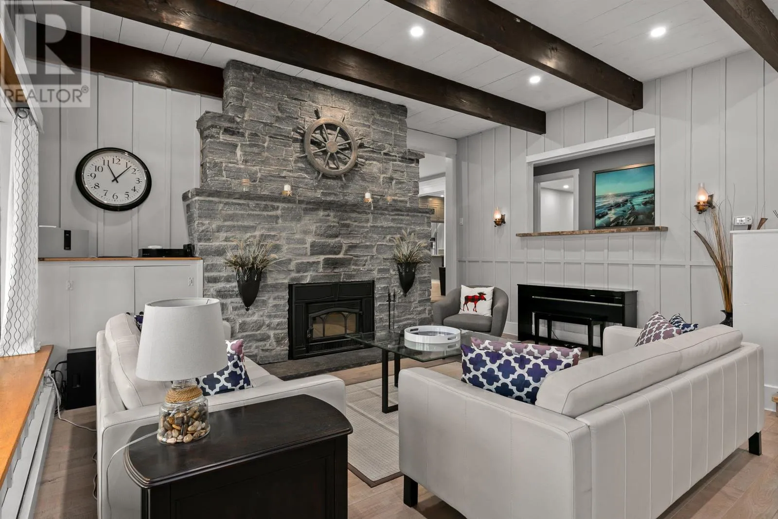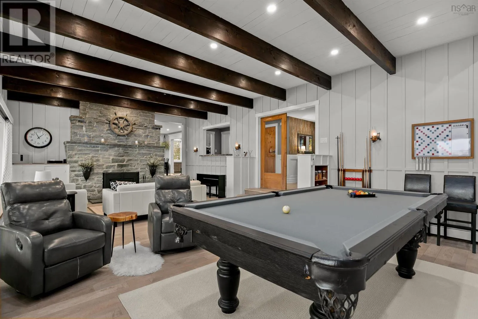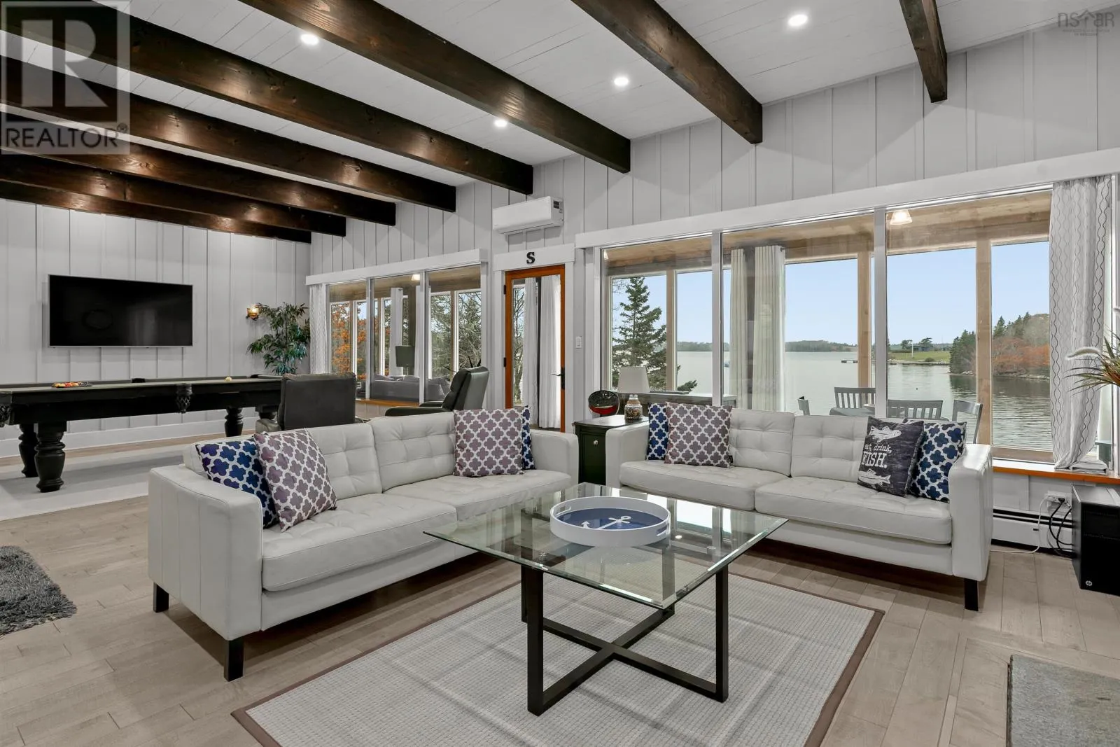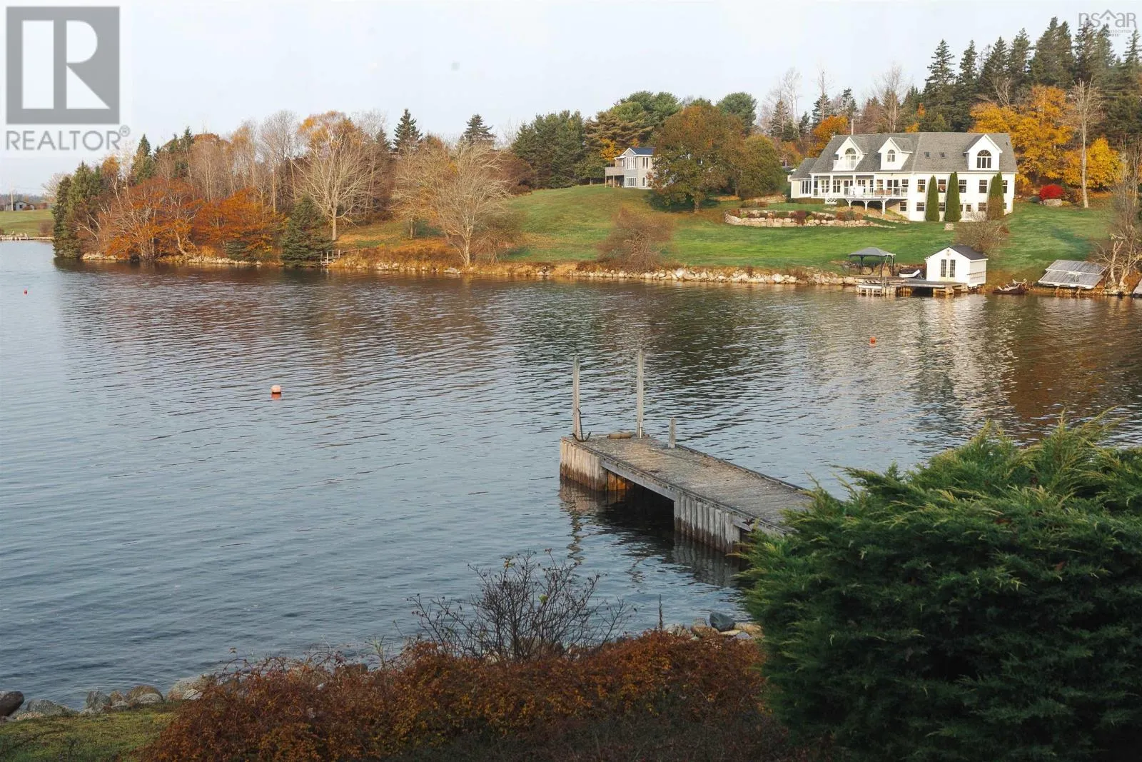 Peggy Cove Rd to Civic, through gated entrance, drive straight to civic address. Commanding 375 ft of protected deep-water frontage on St. Margarets Bay, this completely re-imagined oceanfront estate is a rare & exceptional offering. Privately set on approximately 2.3 acres behind a gated entrance, the property offers over 4,000 square feet of refined living, rebuilt with magazine-worthy finishes & high-end upgrades throughout.Perfectly positioned to the west, it captures sweeping ocean views & spectacular sunsets year-round.A rare blend of luxury, privacy, & authentic Atlantic coastal living.At the heart of the home, the Great Room features a dramatic stone fireplace & flows seamlessly into the sunroom, where a full wall of windows frames the water beyond. Designed for year-round enjoyment, the sunroom is equipped with dual heat pumps, extending the main living space.The chefs kitchen has been completely re-imagined for both entertaining & everyday living, featuring an AGA range, built-in wall oven with warming drawer, Miele coffee centre, quartz countertops, custom cabinetry, extensive pot lighting, & a walk-in pantry.The home offers four bedrooms & six baths, plus a separate guest house with its own bathroom, ideal for extended family or guests.Upgrades include hardwood flooring throughout the main level, over 100 pot lights, renovated baths, walk-in closets, a redesigned laundry & pantry, refined wainscoting & accent details, & significant exterior improvements including hand-brushed stain, landscaping, & view enhancement. Comfort & efficiency are supported by four heat pumps, in-floor heating, a hurricane-rated roof, & a wired generator panel.The waterfront is exceptional, featuring a deep-water wharf & mooring, an oceanside stone patio & firepit, & safe access for swimming & paddling.A detached double garage completes the offering, all just a short drive to Tantallon & within easy reach of Halifax amenities. This is a rare coastal legacy, an extraordinary opportunity to own one of St. Margarets Bays most special oceanfront sett (id:27476)