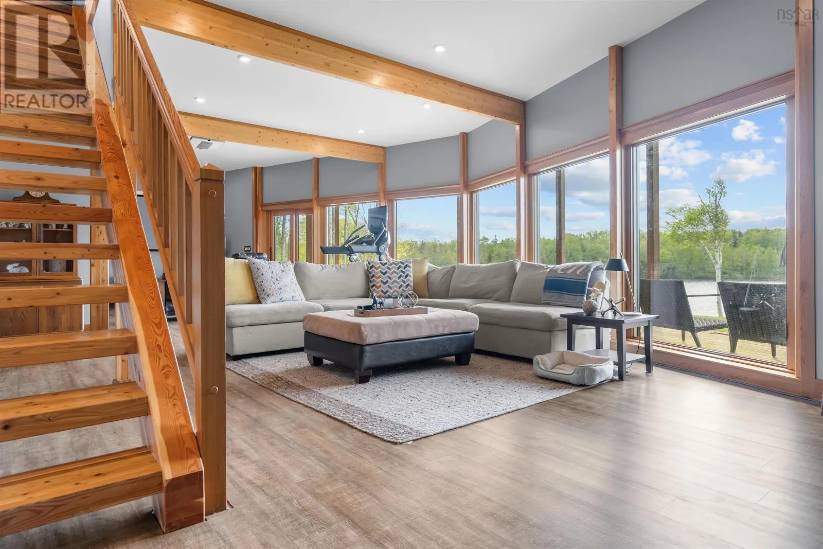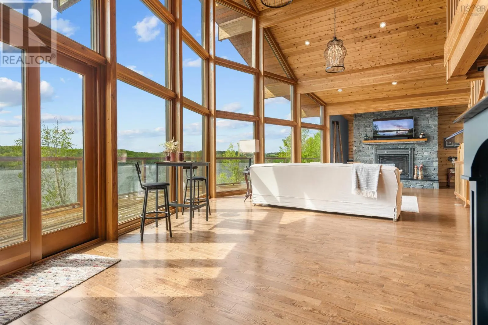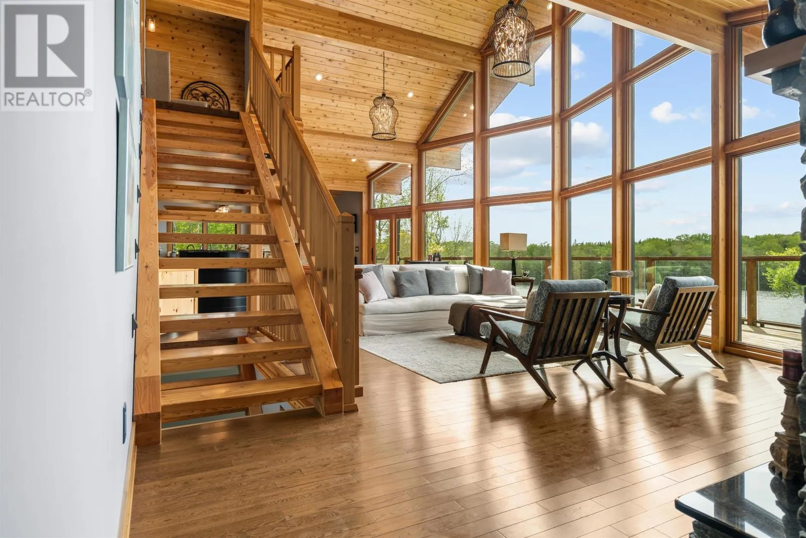 From Antigonish take HWY 7 South to Goshen, Turn left on the Goshen Lochaber Rd., continue on the 316 for 2.5KM's, left on Old Country Harbour Rd. Go to 191 Old Country Harbour Rd. (Lakeshore Drive, sign on the street). Drive in on Lakeshore & follow to the left (Sunset Lane). 1st Driveway on the right. Welcome to Sunset Lane; this stunning 4-bedroom, 3-bathroom lakefront retreat seamlessly blends modern elegance with rustic charm. The cedar exterior & interior provide a warm, inviting atmosphere, while the immaculate finishes & attention to detail ensure a luxurious living experience. The spacious, open-concept layout captures the breathtaking lake views of Pringle Lake. The gourmet kitchen is a chef's dream, featuring high-end appliances. The primary suite offers a peaceful retreat at the end of the day, & the additional bedrooms are generously sized, providing ample space for family & guests. Lrg windows throughout the home flood the space w/natural light, enhancing the stunning views & creating a bright, airy ambiance. The expansive outdoor space is perfect for alfresco dining, morning coffee, or simply soaking in the beauty of the surroundings. The property also features a private wharf, allowing easy access to the lake for boating, fishing, or swimming and comes fully furnished including the watercraft and maintenance equipment. Step into a world of elegance, luxury, & natural beauty. (id:27476)