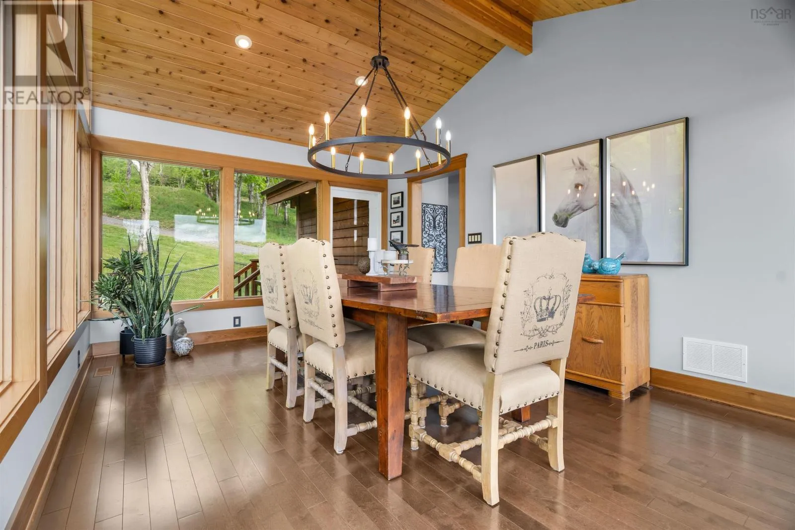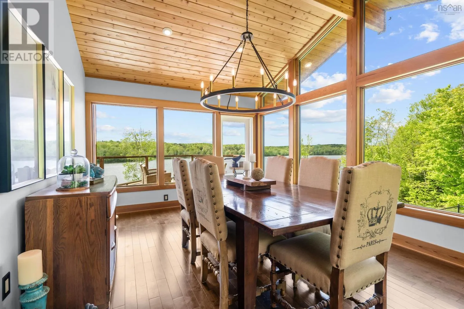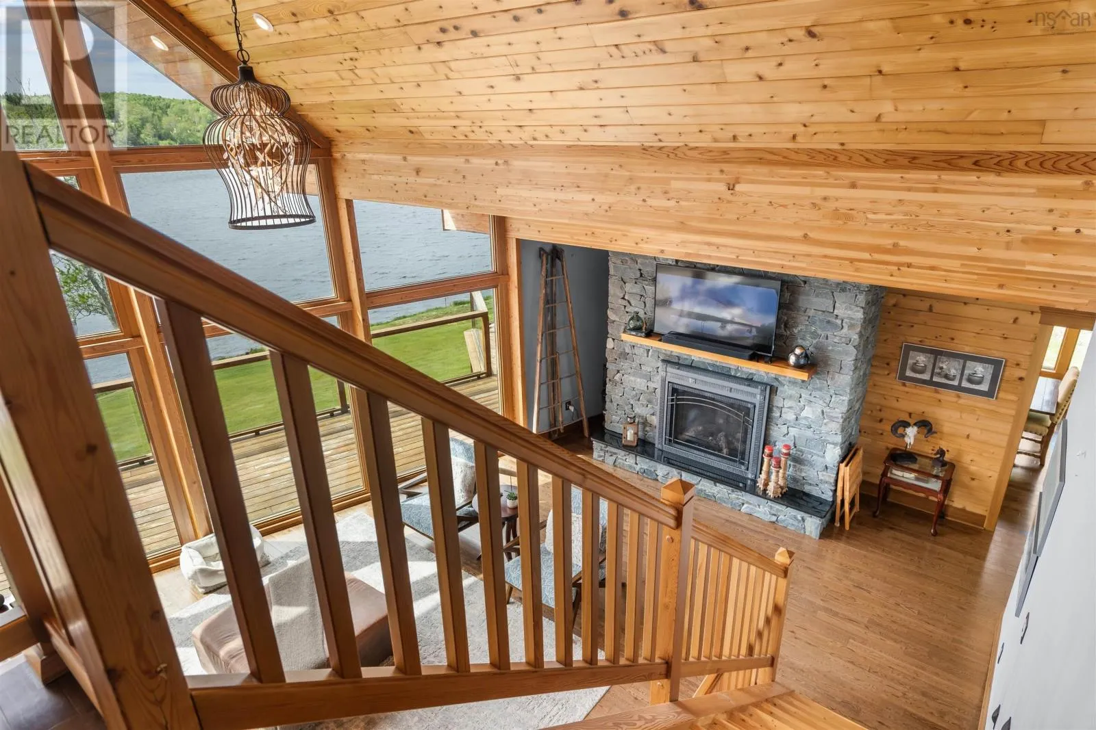 From Antigonish take HWY 7 South to Goshen, Turn left on the Goshen Lochaber Rd., continue on the 316 for 2.5KM's, left on Old Country Harbour Rd. Go to 191 Old Country Harbour Rd. (Lakeshore Drive, sign on the street). Drive in on Lakeshore & follow to the left (Sunset Lane). 1st Driveway on the right. Welcome to Sunset Lane; this stunning 4-bedroom, 3-bathroom lakefront retreat seamlessly blends modern elegance with rustic charm. The cedar exterior & interior provide a warm, inviting atmosphere, while the immaculate finishes & attention to detail ensure a luxurious living experience. The spacious, open-concept layout captures the breathtaking lake views of Pringle Lake. The gourmet kitchen is a chef's dream, featuring high-end appliances. The primary suite offers a peaceful retreat at the end of the day, & the additional bedrooms are generously sized, providing ample space for family & guests. Lrg windows throughout the home flood the space w/natural light, enhancing the stunning views & creating a bright, airy ambiance. The expansive outdoor space is perfect for alfresco dining, morning coffee, or simply soaking in the beauty of the surroundings. The property also features a private wharf, allowing easy access to the lake for boating, fishing, or swimming and comes fully furnished including the watercraft and maintenance equipment. Step into a world of elegance, luxury, & natural beauty. (id:27476)