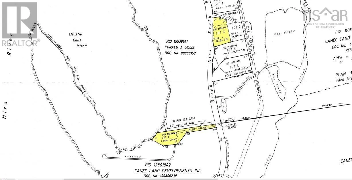 HWY #327 through Marion Bridge to Grand Mira South, watch to the sign, close to civic #3042 3 acre lot featuring a beautiful mix of wooded areas and open pasture. The property is surveyed, with 522 feet of road frontage. Power is available at the property line, and there is potential for high speed internet. With no restrictive covenants, you are free to use the land as you wish and build your dream home. Enjoy scenic views of the Mira River, just a short drive to Sydney private, peaceful, and priced below assessed value. Plus deeded ROW to use the boat launch across the public road PID 15869142 (id:27476)
