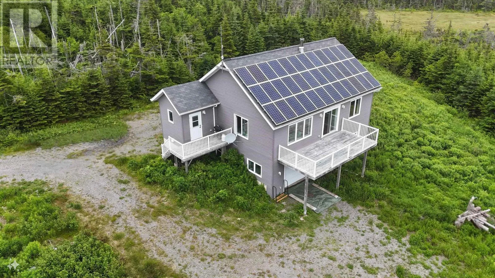 Follow the St Peter's Fourchu Rd to St. Esprit. Home is located across from Ferguson Road II Discover your dream home in this stunning 2-bedroom, 2-bath residence nestled on over 20 acres of pristine land near the ocean. Designed with energy efficiency in mind, this property features solar panels on the roof, blending luxury with eco-friendly living. Inside, an open-concept layout creates a welcoming and spacious atmosphere, perfect for relaxing or entertaining guests. The generous living room seamlessly extends to a large deck, offering breathtaking views and an easy indoor-outdoor lifestyle. A cozy wood stove adds warmth and charm to the living space. The spacious primary bedroom includes a walk-in closet, providing plenty of storage. The entryway is notably large and equipped with ample storage space, enhancing the home's practicality. Additional highlights include a built-in garage and a walk-out basement, ready for your personal customizationwhether you envision extra bedrooms, a home office, or a recreational area. Just a short stroll away, enjoy a beautiful sandy beach where you can soak up the sun, surf, and unwind. Dont miss this rare opportunity to own your slice of paradise. Call an agent to schedule a viewing today and experience the unmatched charm of coastal living! (id:27476)