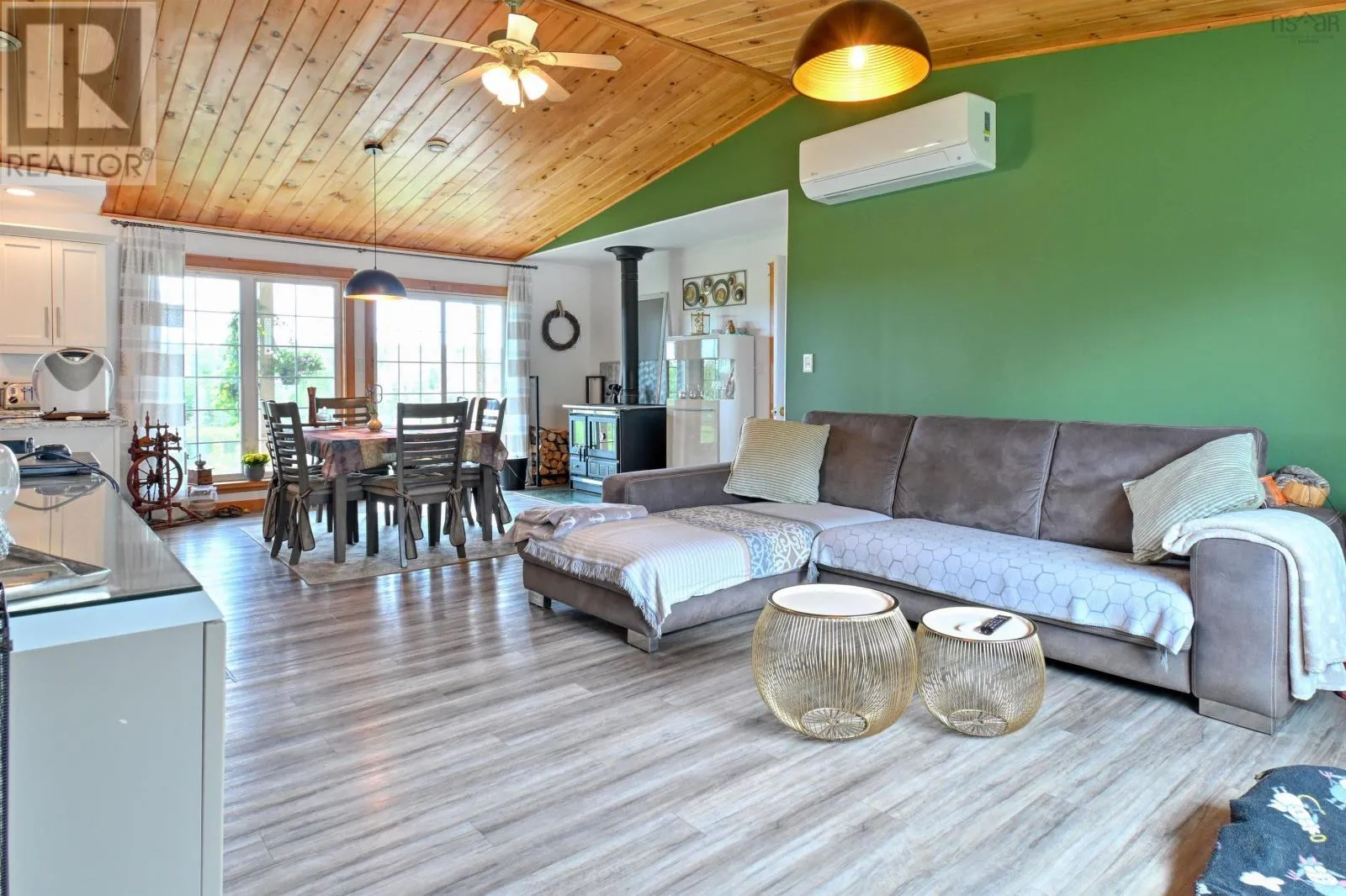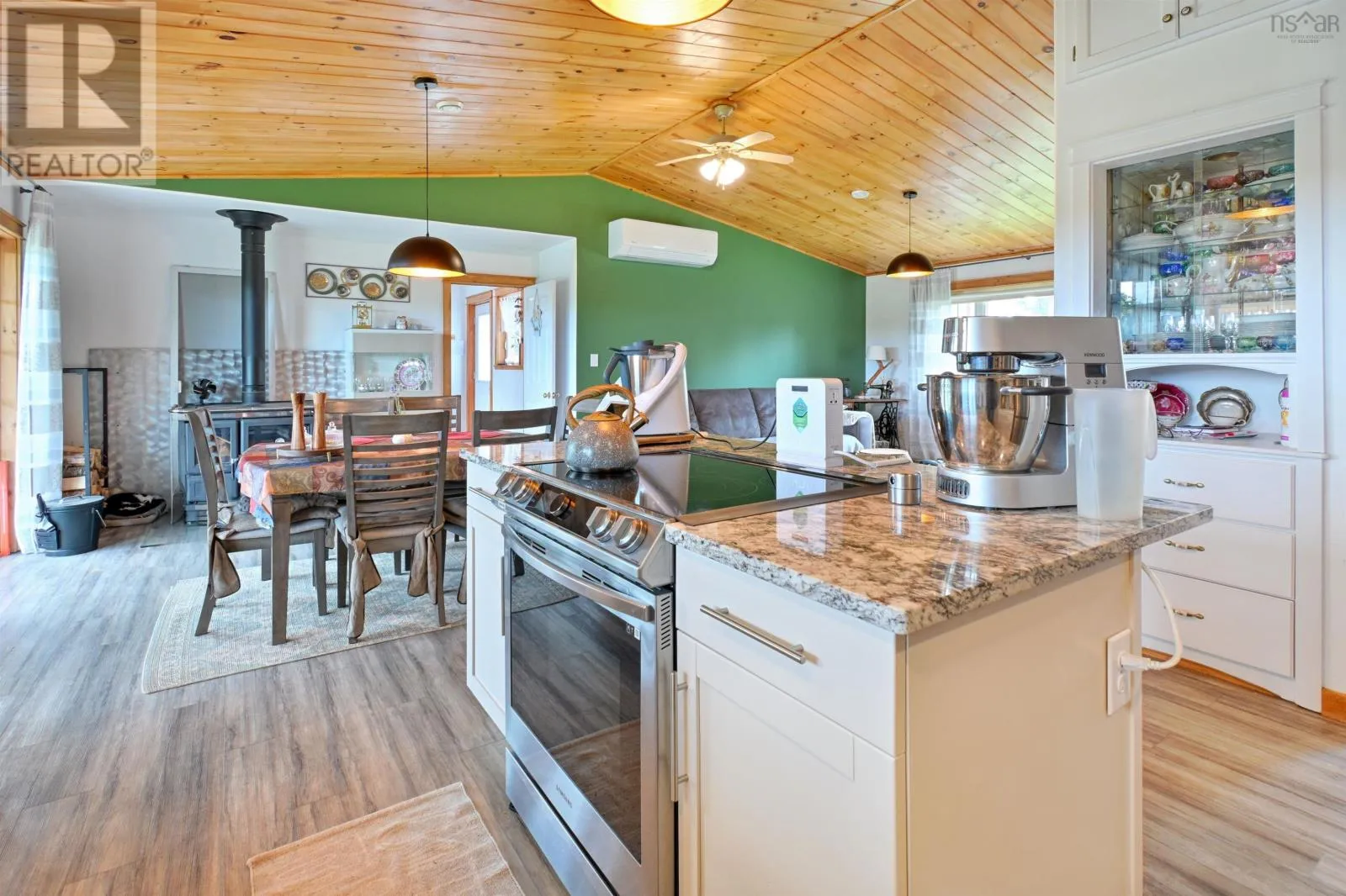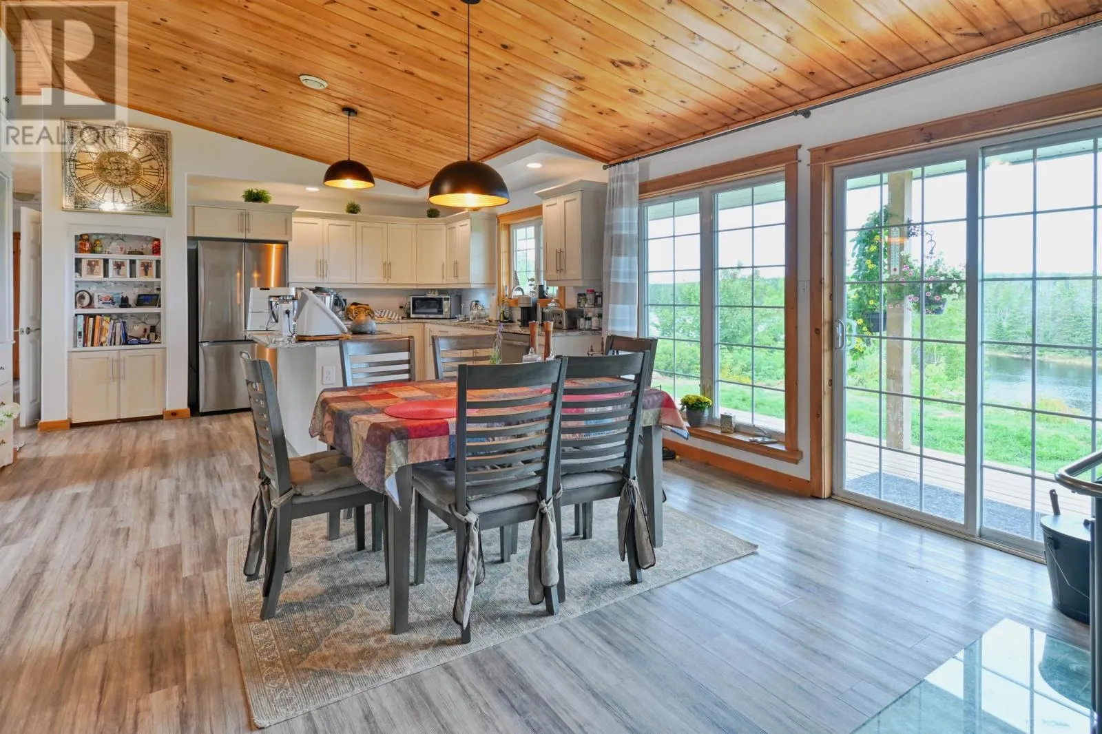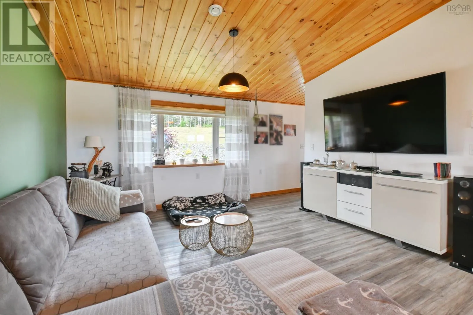 From St. Peter's, turn right onto NS-247, turn left onto Fleur-de-lis Trail/St Peters Fourchu Rd. Follow for about 9 km. Continue on Soldiers Cove Rd, property is on your left. A rare and remarkable find! 75 acres of pristine land with two peninsulas and approx. 4,900 feet of water frontage on Black River Pond, with access to the Grand River. Once part of a silviculture program, the property has been selectively and professionally thinned, now showcasing a beautiful mixed forest. Tucked into this natural setting is a cozy home with an open-concept kitchen and living area offering stunning views of the water. A large, two-story barn-style garage serves as a workshop and storage space, with potential to convert the upper level into a guest suite. The building is wired and heated for year-round use. Perfect for anglers, hunters, and nature lovers, this property offers total privacy just 20 minutes from the lovely town of St. Peter's. The town has all daily essentials, local dining, and popular summer festivals. Just a short drive away is the mouth of the River, on the ocean, the Bras d'Or and Point Michaud Beach, famous for its waves and ideal for long walks. (id:27476)