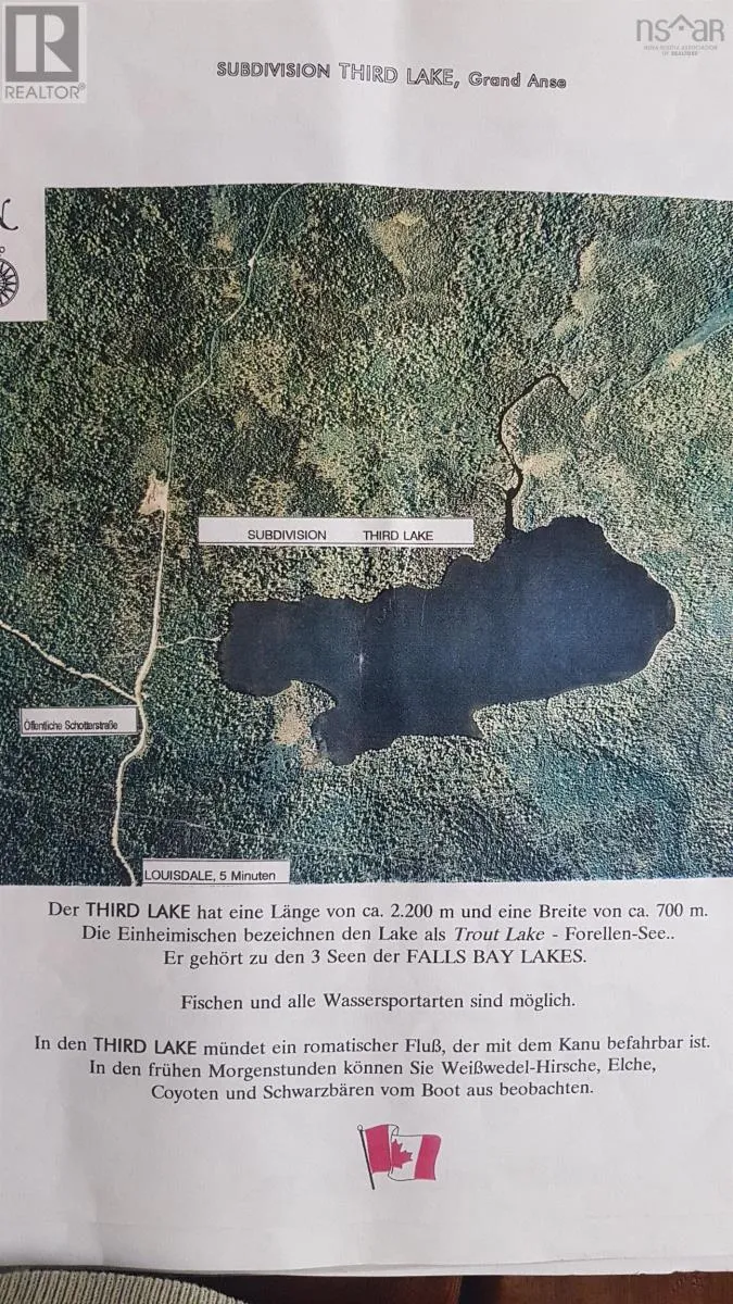 HIGHWAY 4 TO GRANDE ANSE, JUST PASSED THE ROYAL CANADIAN LEGION TAKE THE BACK ROUTE RD, TURN ONTO TROUT LAKE ROAD, PROPERTY IS AT THE END ON THE RIGHT HAND SIDE, WATCH FOR SIGNAGE Waterfront lot situated on a fresh water lake in Cape Breton Island. Lot 9 is located on Trout Lake Drive in Grande Anse, Richmond County. This 2.90 Acre lot is surveyed and has 279 FT of frontage on Third Lake . Ideal for kayaking and fishing. Located 10 minutes to the village of Louisdale, 20 minutes to the town of Port Hawkesbury and 15 minutes to the village of St Peters. Ideal location to build your year round home or seasonal getaway, offering privacy and nature. There is a boat launch next to the lot. Power is offered at the road. The land gently slopes towards the lake, with partial clearing already completed. (id:27476)