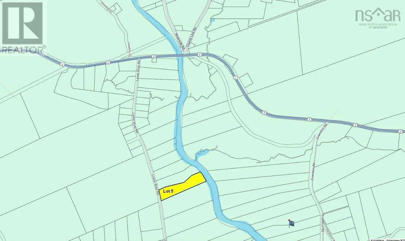 Coming from Port Hawkesbury take NS-104 to Cleveland,turn left onto Lower River Road. Destination is on your right. This beautiful 5.5 acres water front lot is located is a popular residential area between St. Peters and Port Hawkesbury. The generous sized lot offers Lots of privacy with approx. 77 m of waterfrontage. Bordering Lower River Road, a government-maintained road, the lot is easily accessible year around. Port Hawkesbury with all amenities, such as post office, schools, grocery stores, banks, restaurants, fitness center etc. is about a 10-minute drive away. The well-known Dundee Golf Resort can be reached in 20 minutes, the Straight Richmond Hospital in approx. 5 Minutes. Power and Telephone are on Lower River Road. The lot is newly surveyed and migrated. The area is well known and frequented by anglers and the river is ideal for long canoe or kayak trips. The Lot is surveyed and migrated. There are no restrictive covenants. (id:27476)