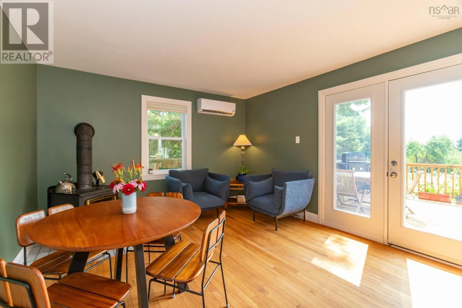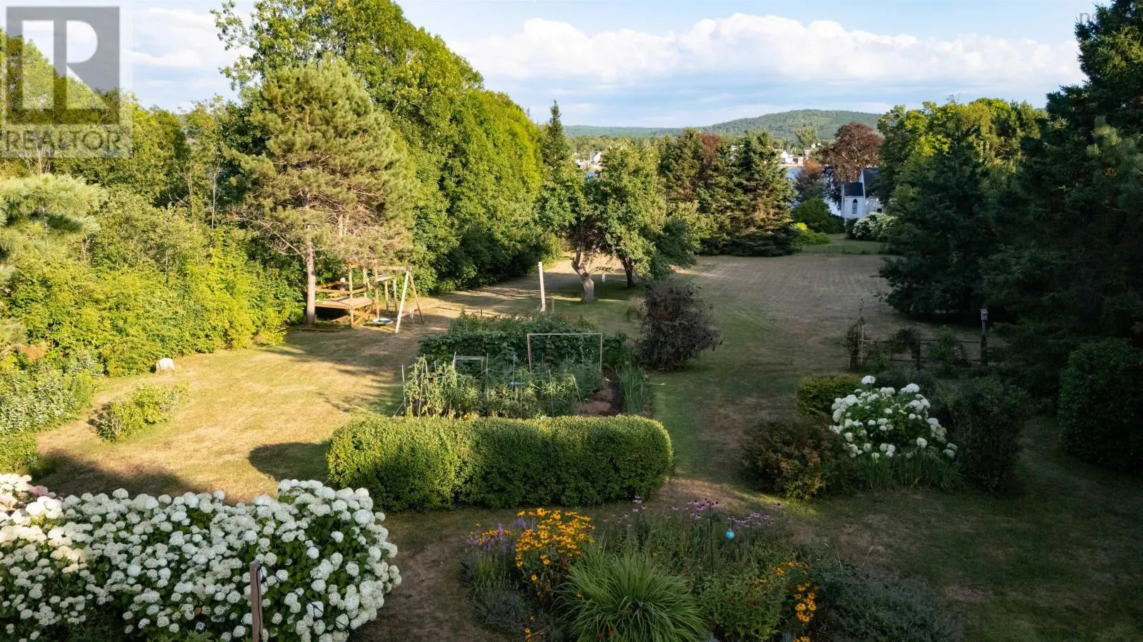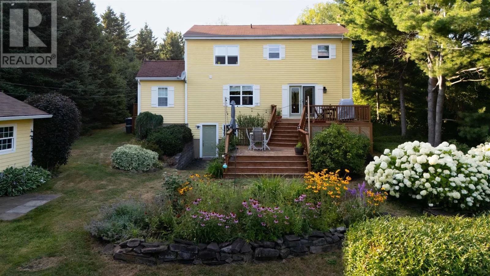 Hwy 1 in to Granville Road, to North Street - house is on South side of street Set well back from the road on an exceptionally private 1.8-acre lot with picturesque views of the Annapolis Basin, this custom Cape offers both a quiet refuge and the connection of village life. Invisible from the street yet served by municipal utilities, the property is located in sought-after Granville Ferry, just minutes from Annapolis Royal and within walking distance of the elementary school. Built in 1990 by a respected local builder, the home is solidly constructed and thoughtfully updated. The main level features refinished hardwood floors and a generous layout with formal living and dining rooms, a full bath, a pantry with wash station, and a large kitchen fitted with DeCoste cherry cabinetry, quartz countertops, and custom tile. The kitchen opens to a cozy family room with wood stove and patio doors leading to a two-level deck that extends the living space outdoors. Heat pumps provide efficient year-round comfort. Upstairs, the primary bedroom has been enhanced with a new picture window that draws in natural light and frames the water view. Floors here have also been refinished. A dedicated walk-in closet room offers ample storage for the household. Two additional bedrooms and a full family bath complete the upper level. The lower level includes a walkout to the garden, a laundry area, workshop, and a finished room suited for a home office or studio. Outdoors, the lot is larger than typical for the area and remarkably private, bordered by mature trees and landscaped with perennial gardens, foundation plantings, and a productive vegetable patch. Peaceful and green, the property feels tucked away yet lies just minutes from the shops, markets, and galleries of Annapolis Royal. (id:27476)